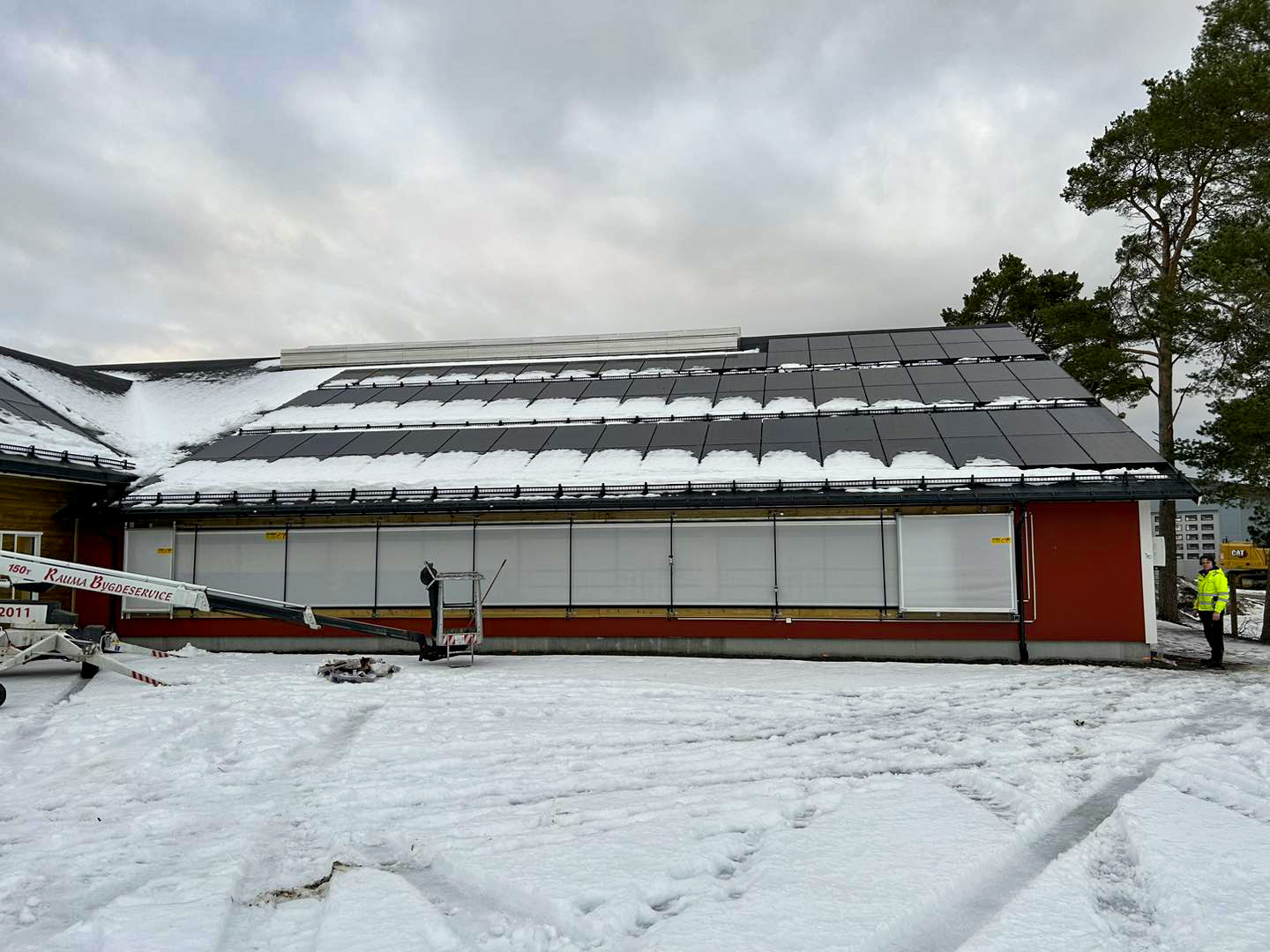 75 panels solcelleanlegg med 30 kW effekt, montert på låvetak.