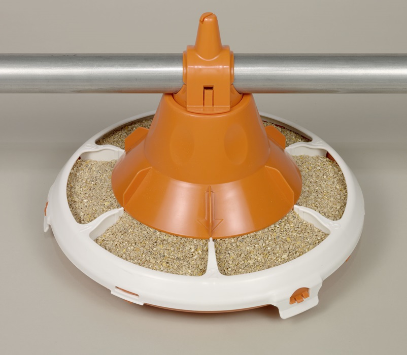 Vi leverer komplette fôringsanlegg til kylling enten som enkeltstående linjer eller som rundløp. Fôrrekkene leveres med oppheng og elektrisk takvinsj for enkel og kjapp høydejustering.