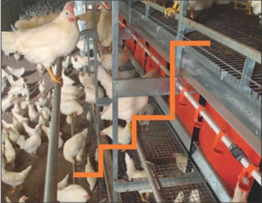 Aviaret Natura Step skiller seg fra øvrige modeller med redeoppsettet. Systemet kan settes opp i individuelle rader, siden høna kan bevege seg fritt mellom nivåene, særlig redenivået, på grunn av trinndesignet.