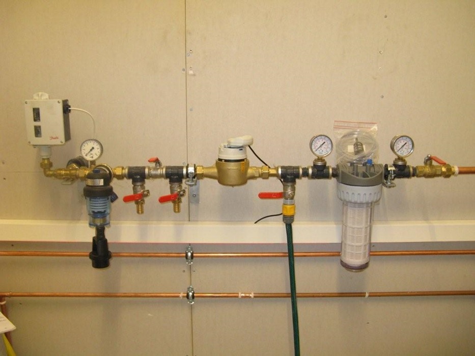 Vi leverer også vannarrangement til kyllinghus. Med et vannarrangement levert av oss har du mulighet til å filtrerer bort fremmedlegemer som kan komme til å blokkere låsingen på drikkeniplene. Vannarrangementet leveres også med vannmåler som kobles opp mot produksjonskomputeren. Dette gir muligheten til å nøyaktig overvåke vannforbruket gjennom innsettet. Vannarrangement leveres standard med uttak for medisinblander og trykkreduksjon for å hindre svingninger og for høyt trykk ut på vannrekkene.