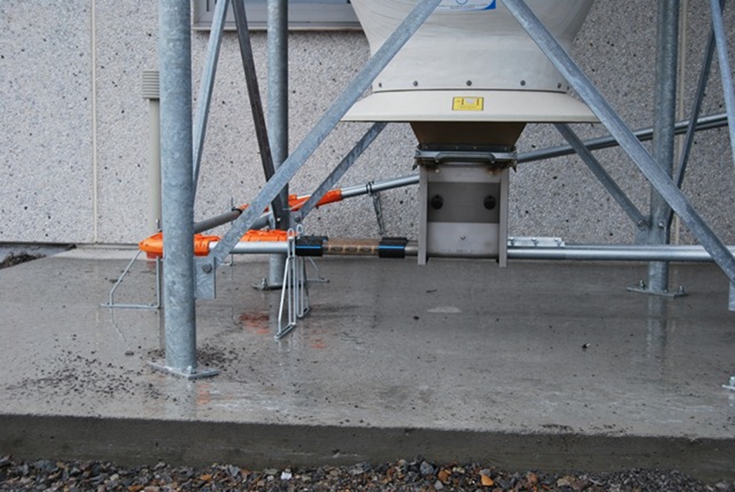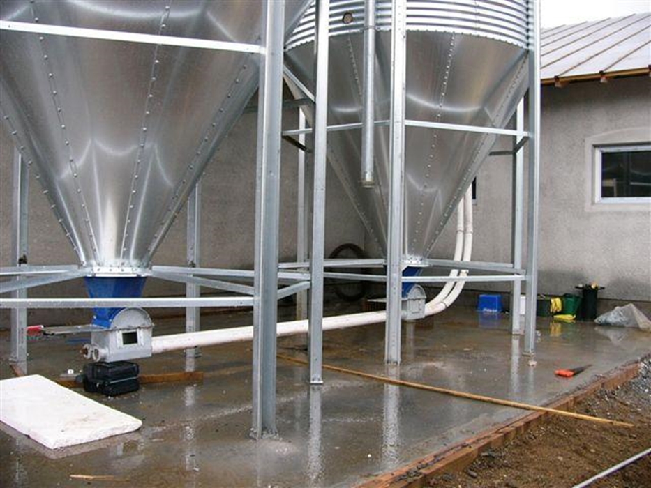Opptagerstasjonen er i rustfritt stål, og kan plasseres enten i husdyrrom med flekssnegl fra silo, eller direkte under kraftfôrsilo. Den leveres enten for en eller to rørgater.