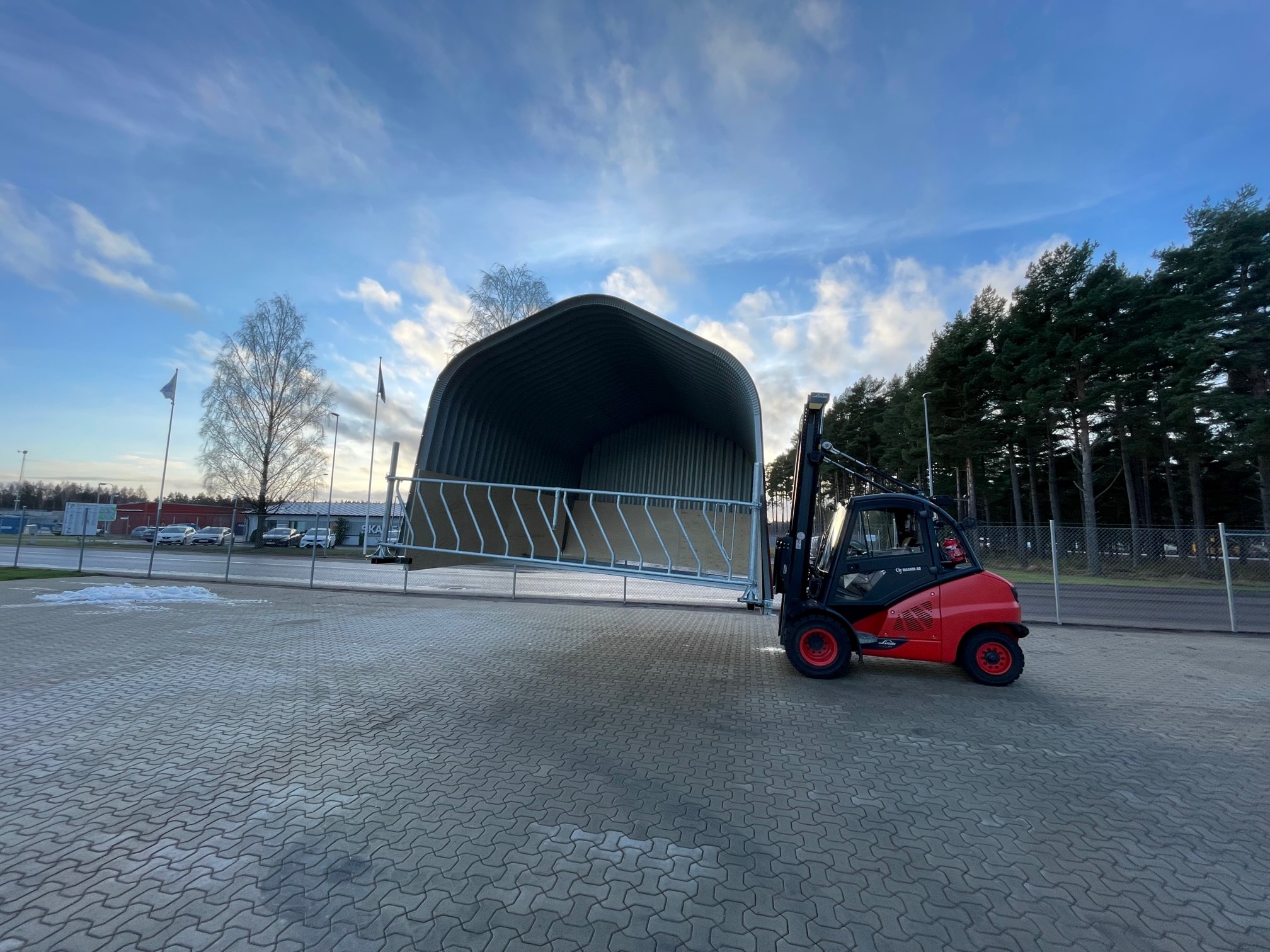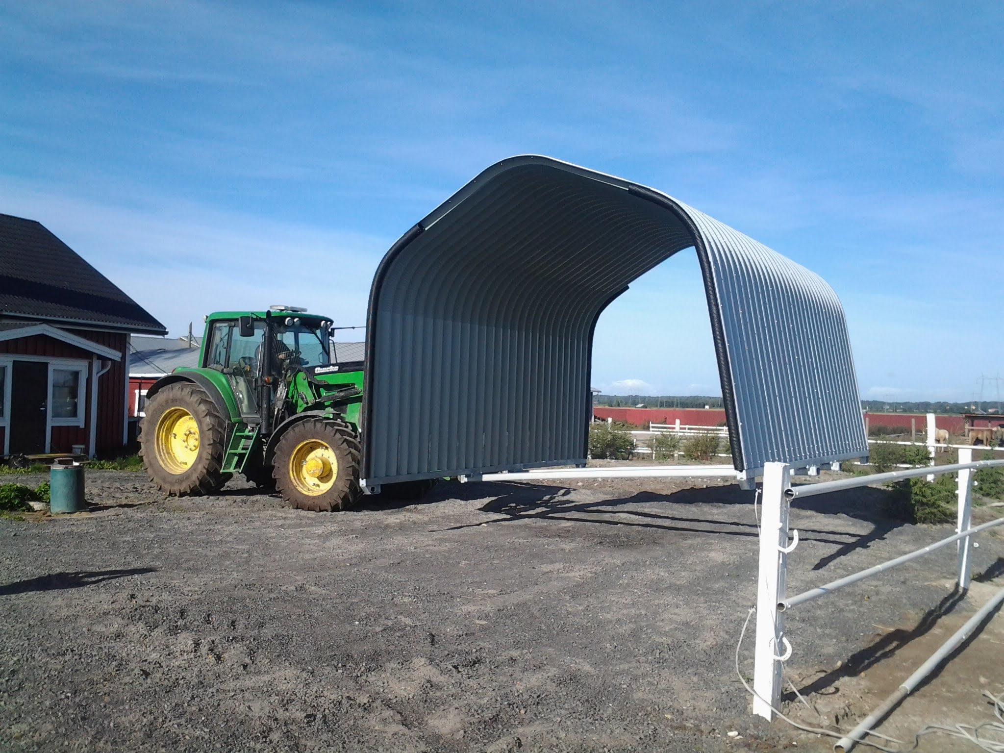 Buehall XL er en stasjonær modell og bruksområde utvides med muligheter for å parkere både traktor, bobil eller andre ting som krever tak over hodet.