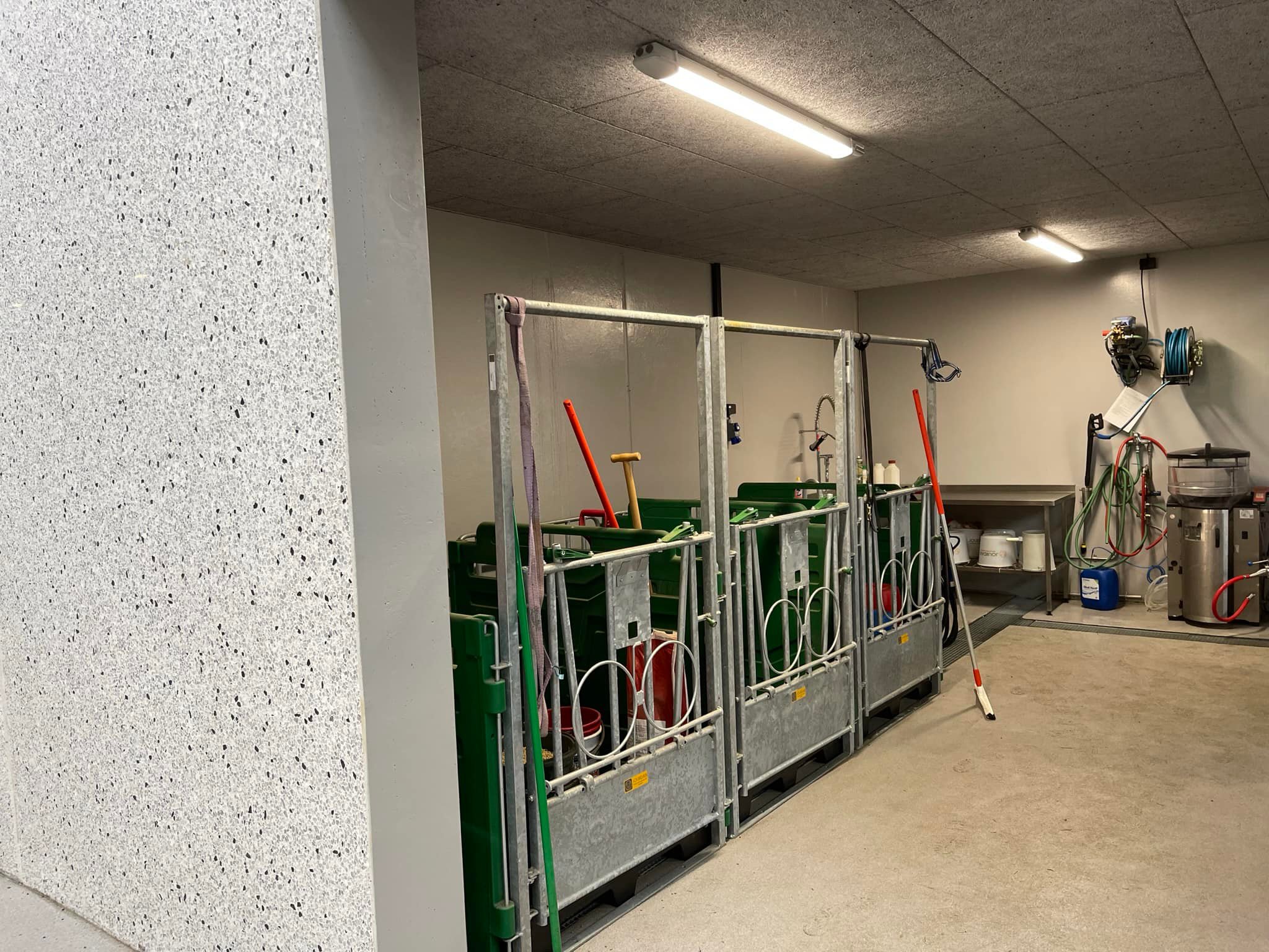 Fjøssystemer Vest: Secco naturlig ventilasjon, Agrilight belysning, DairyPower Slurry-anlegg, Lely Astrounaut A5 melkerobot, Lely Vector automatisk fôringsanlegg inkludert fôrkjøkken med traverskran, Lely Cosmix kraftfôrstasjon med bakport, Lely Grazeway beiteport, Lely Calm kalvedrikkautomat, Lely Discovery SW90 skraperobot, Suding betongspaltegulv, Agricow kubørste, Easyfix fleksibel liggebåsinnredning og madrasser og Big Dutchman kraftfôrskrue. Øvrig innredning fra Jourdain.