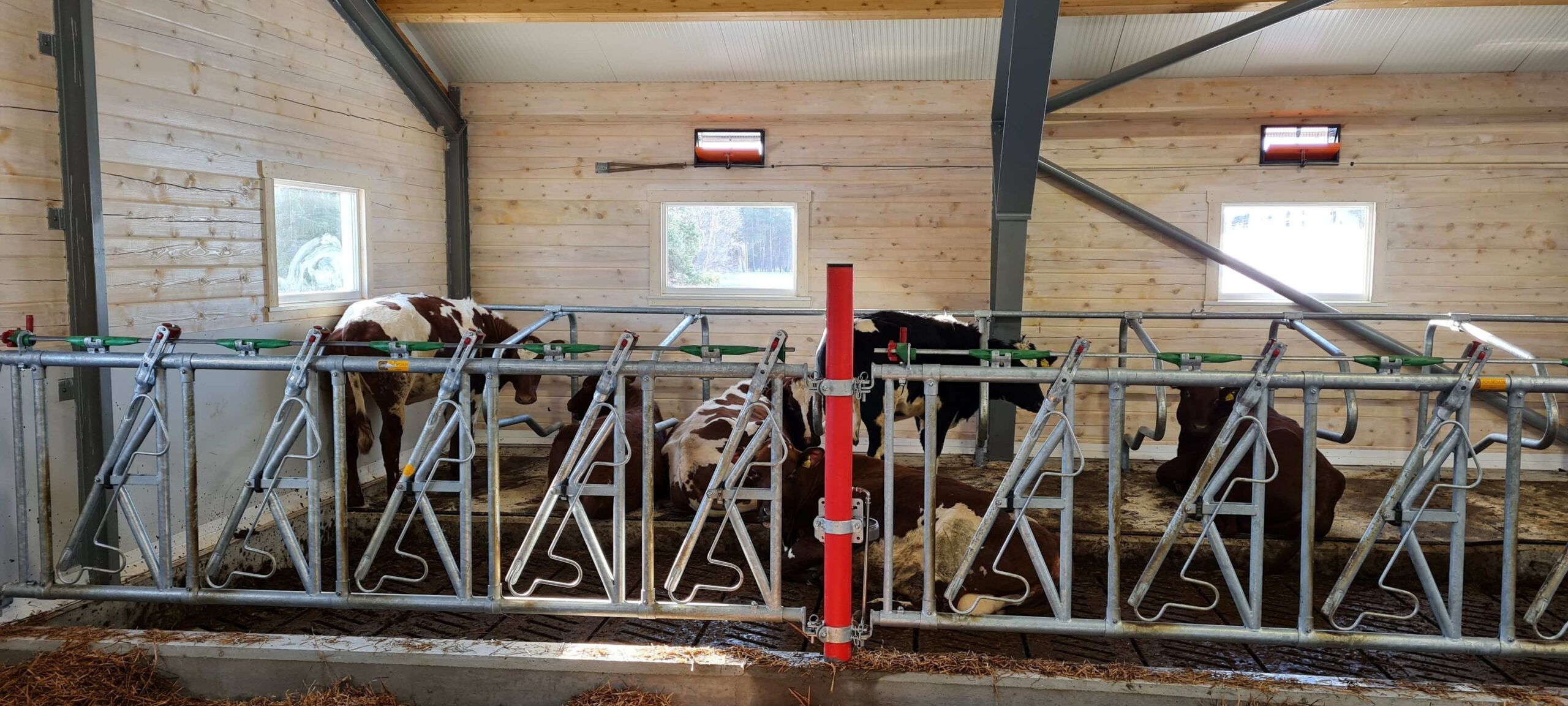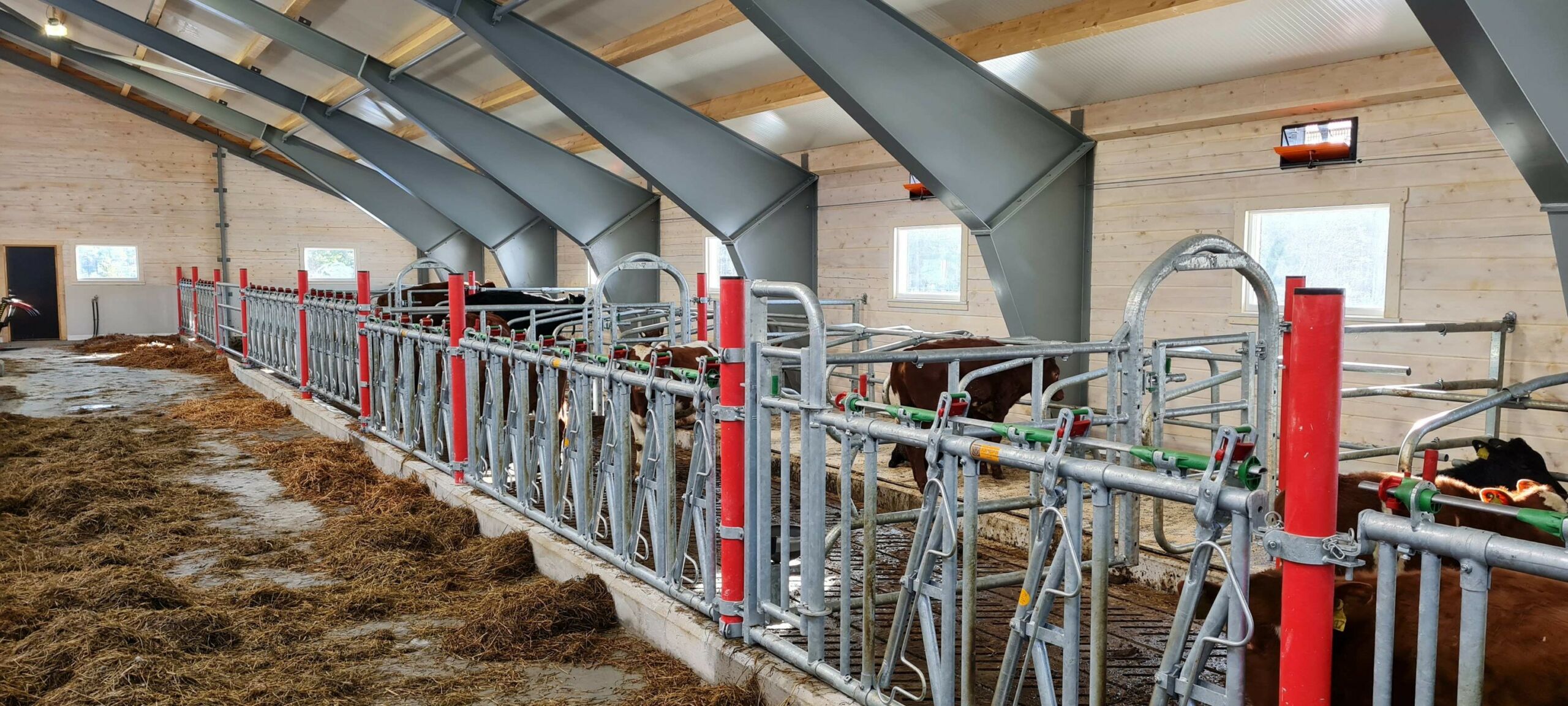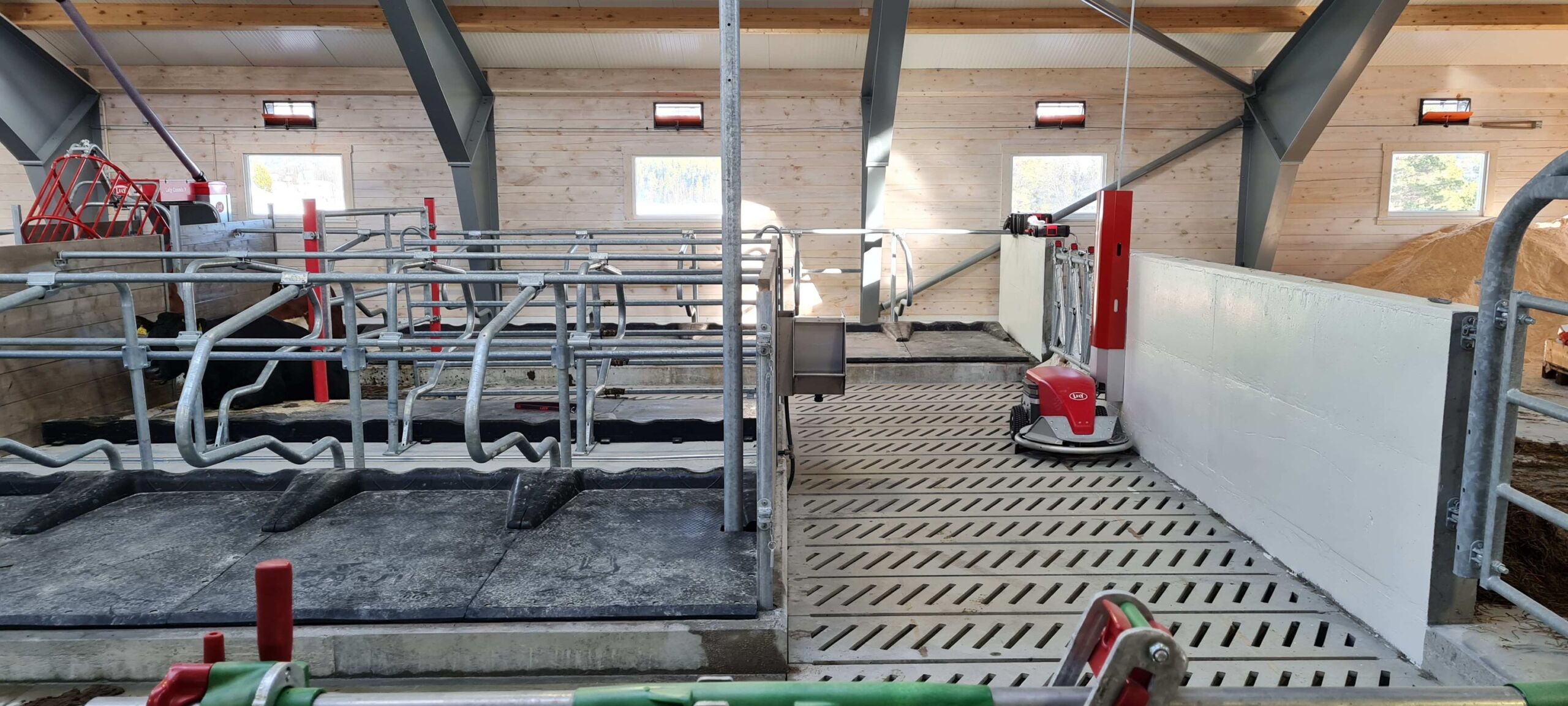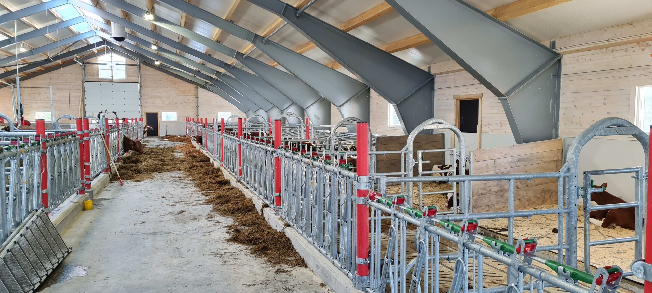 Vi leverte Lely A5 melkerobot, Lely Discovery skraperobot, Lely Calm kalvedrikkeautomat, Lely Luna kubørste, Jourdain innredning, Big Dutchman ventilasjon, Easyfix Jupiter F liggebåsmatter, Kraiburg Calma liggebåsmatter, Agrilight Led belysning og Suding spalter. Bygget er levert av Fjøssystemer Bygg og oppført i stålkonstruksjon med 140 mm laftevegger. Sandwich-tak med lysmøne.