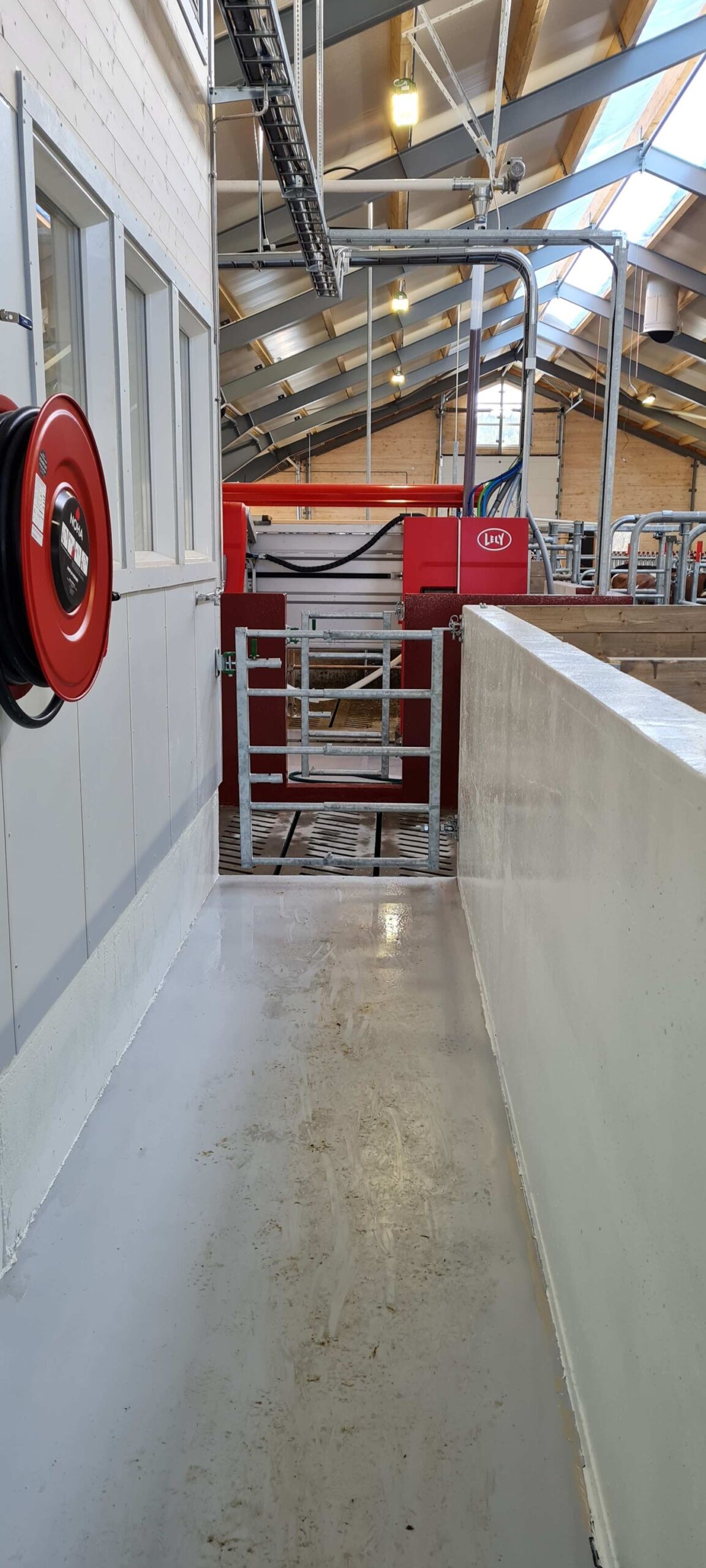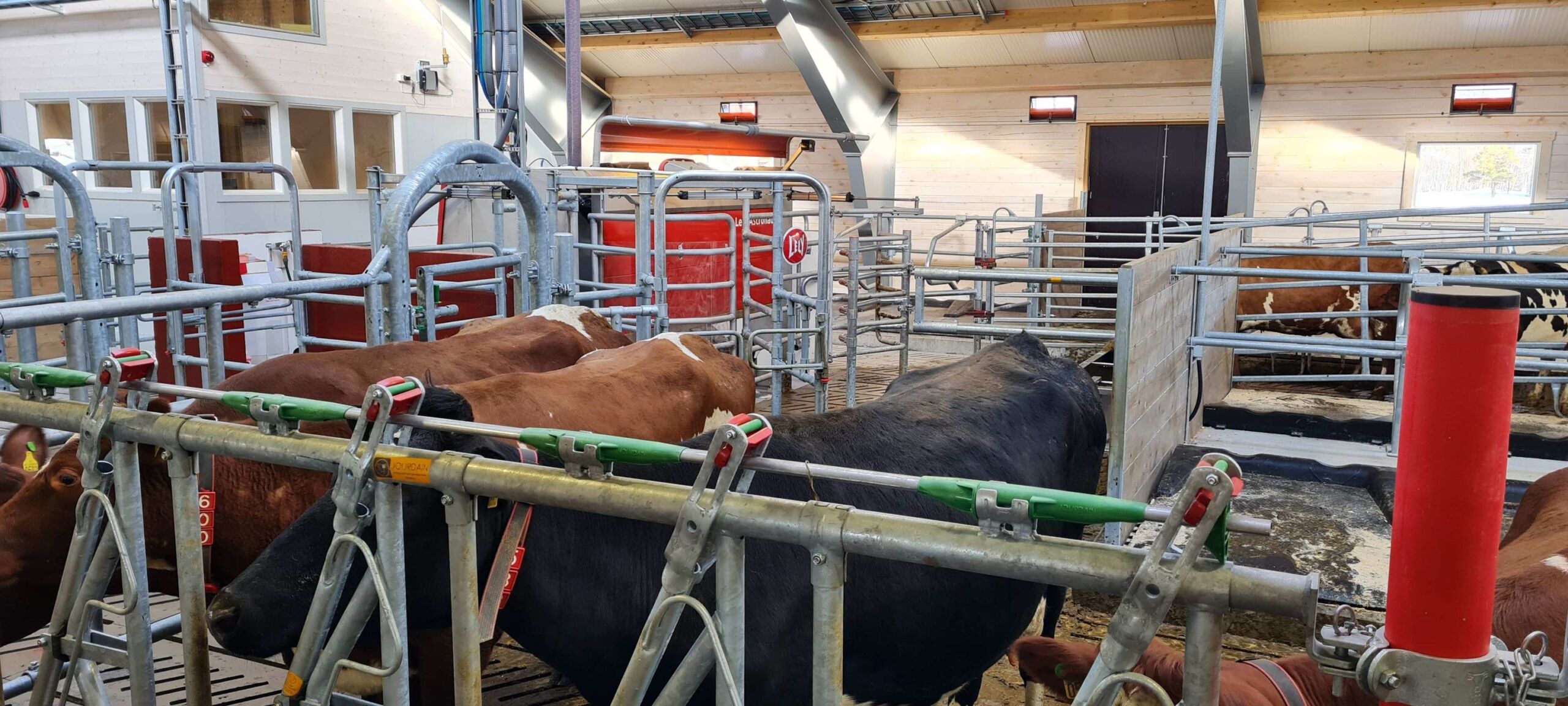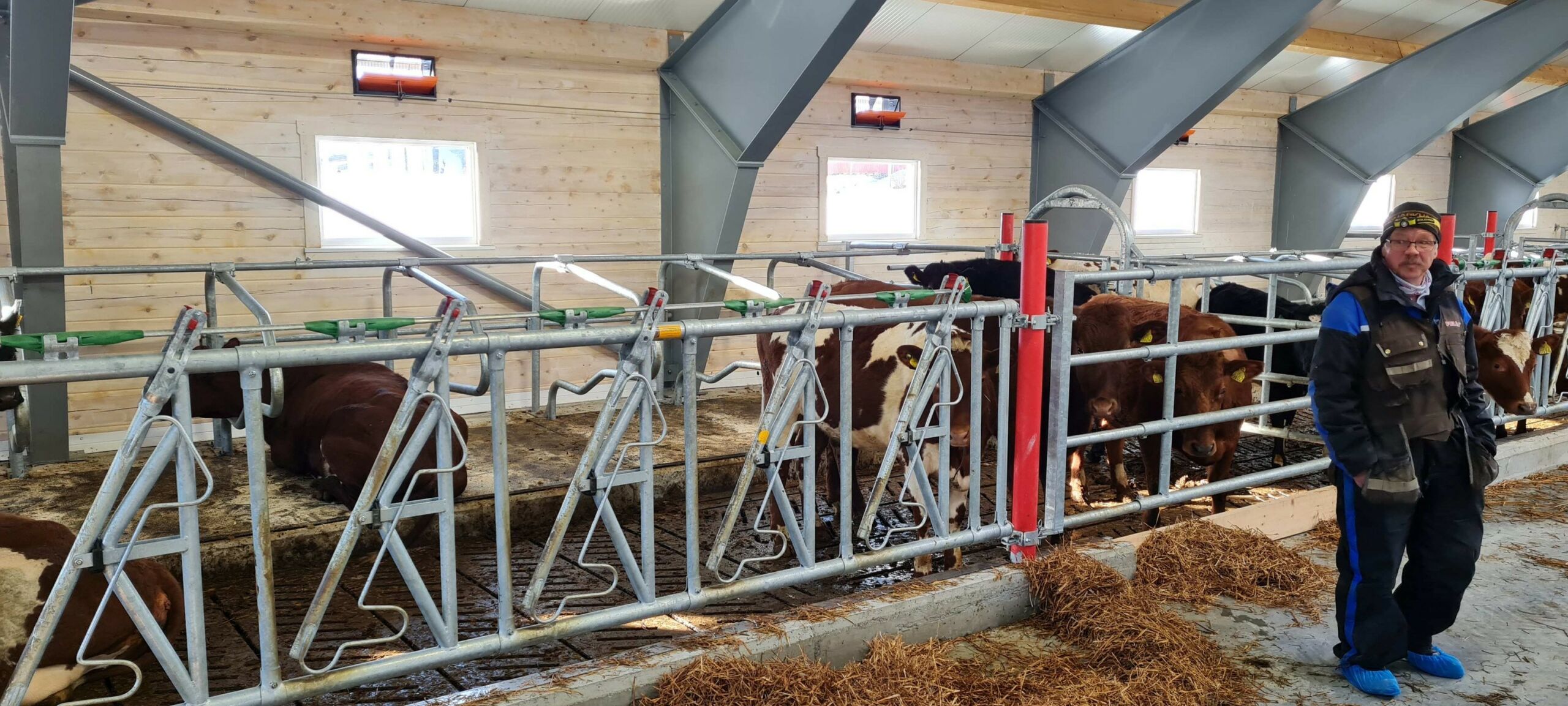 Med høyt under tak, stålbuer, et sandwichtak som slipper inn rikelig med dagslys, og et effektivt ventilasjonssystem, er det nye fjøset et optimalt arbeidsmiljø for både kuene og bonden selv. Som så mange andre melkeprodusenter i dag, jobber Steinar stort sett alene i fjøset og er avhengig av smarte løsninger som sikrer en god flyt i arbeidet. Bli med inn i Steinar nye arbeidsplass og hør ham fortelle om hvordan det er å drive melkeproduksjon på denne måten.