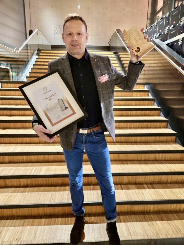 For vår hemmelige nyhet under Agroteknikk 2024, så fikk vi utdelt den høyeste valør, Gullakset.