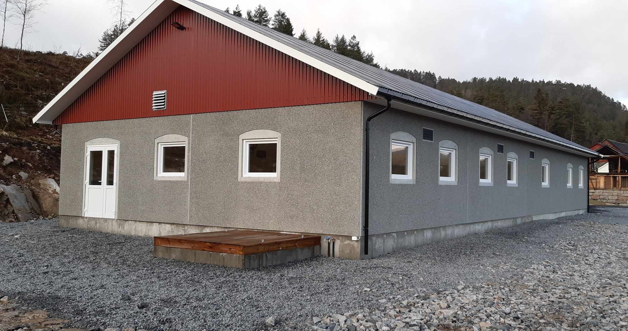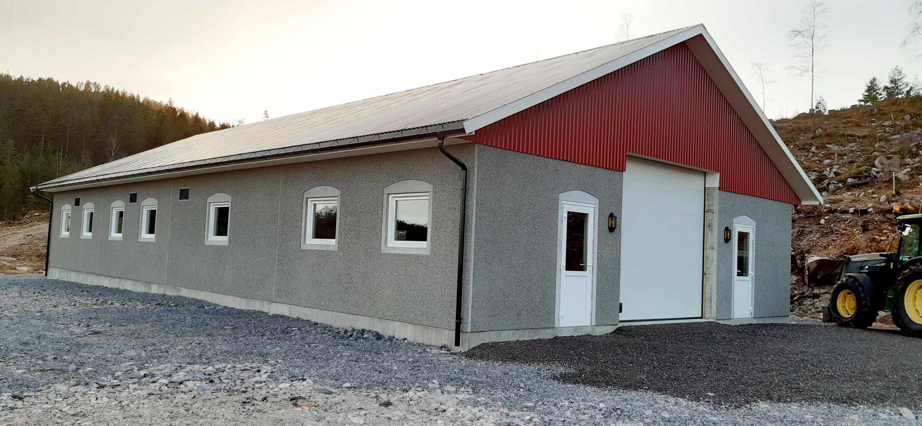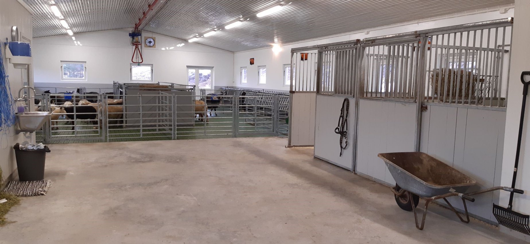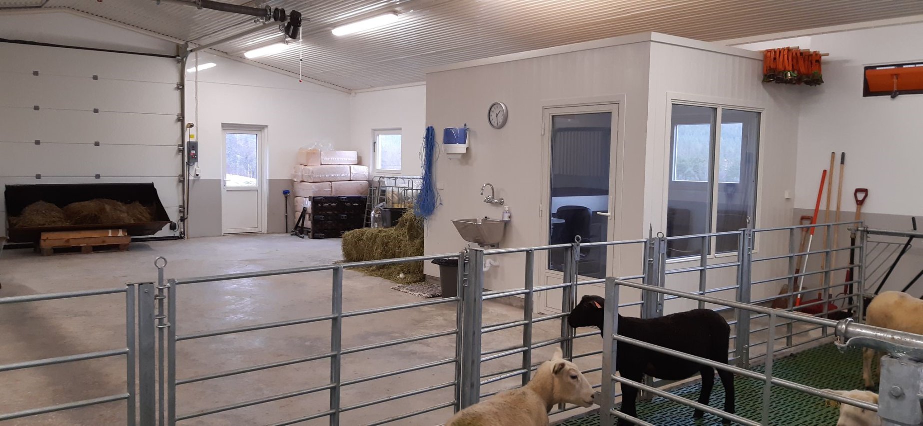 Vi har blant annet levert Mik Stepper gulv og lammesikkerfront og fôrkasse fra Jyden. Lokal leverandør har levert bygget, Per Pytten AS med elementer fra Hårr.
