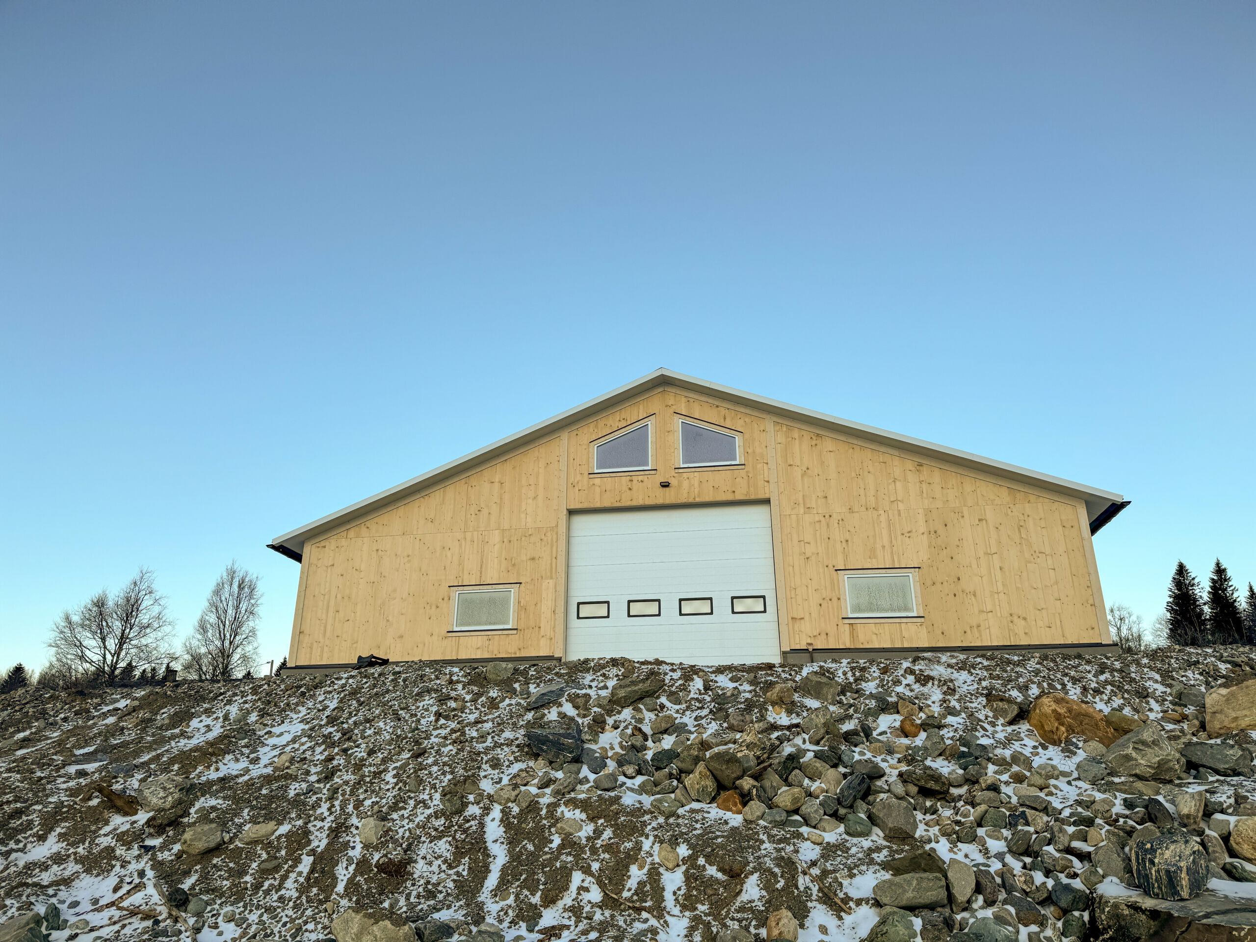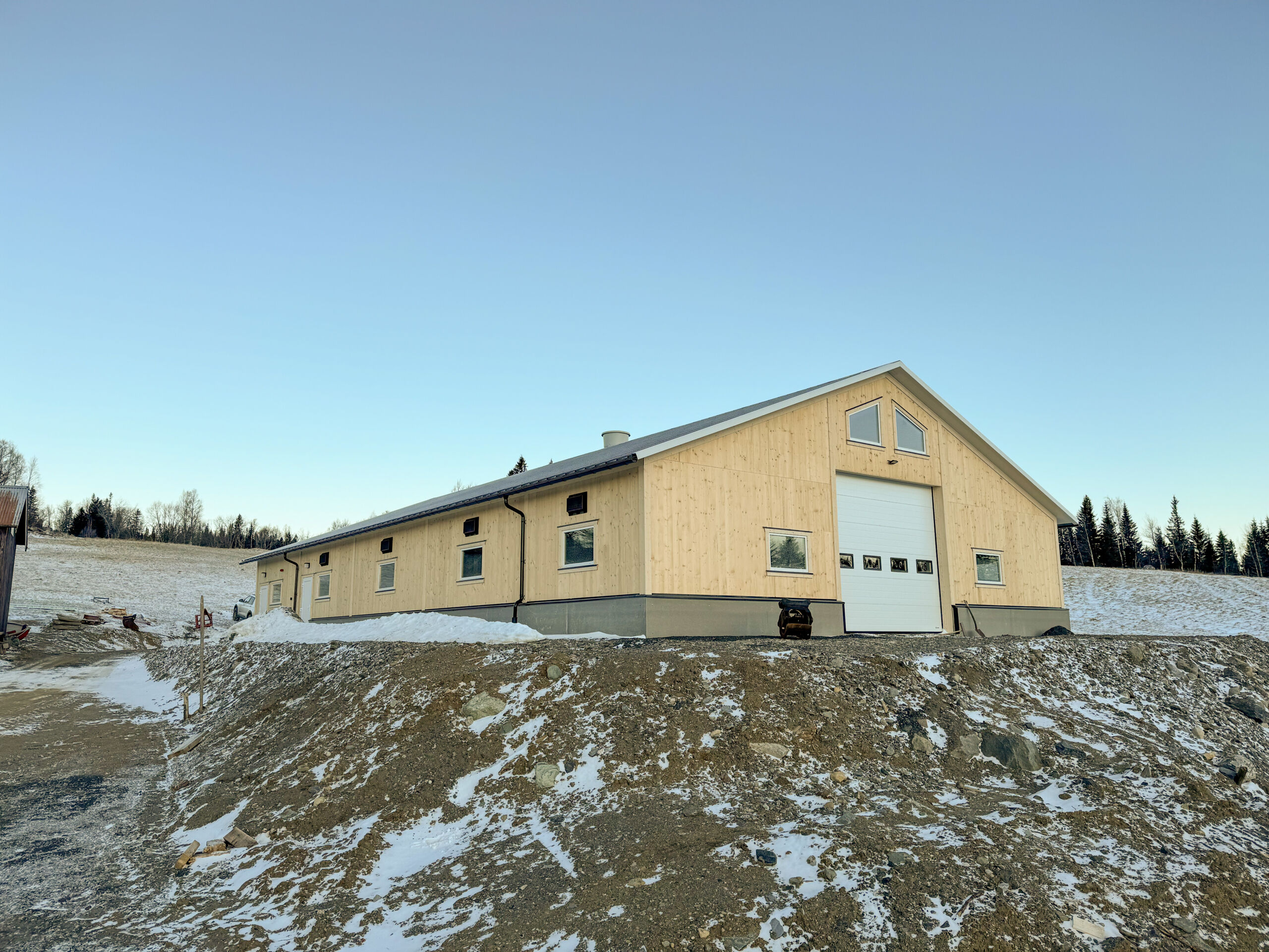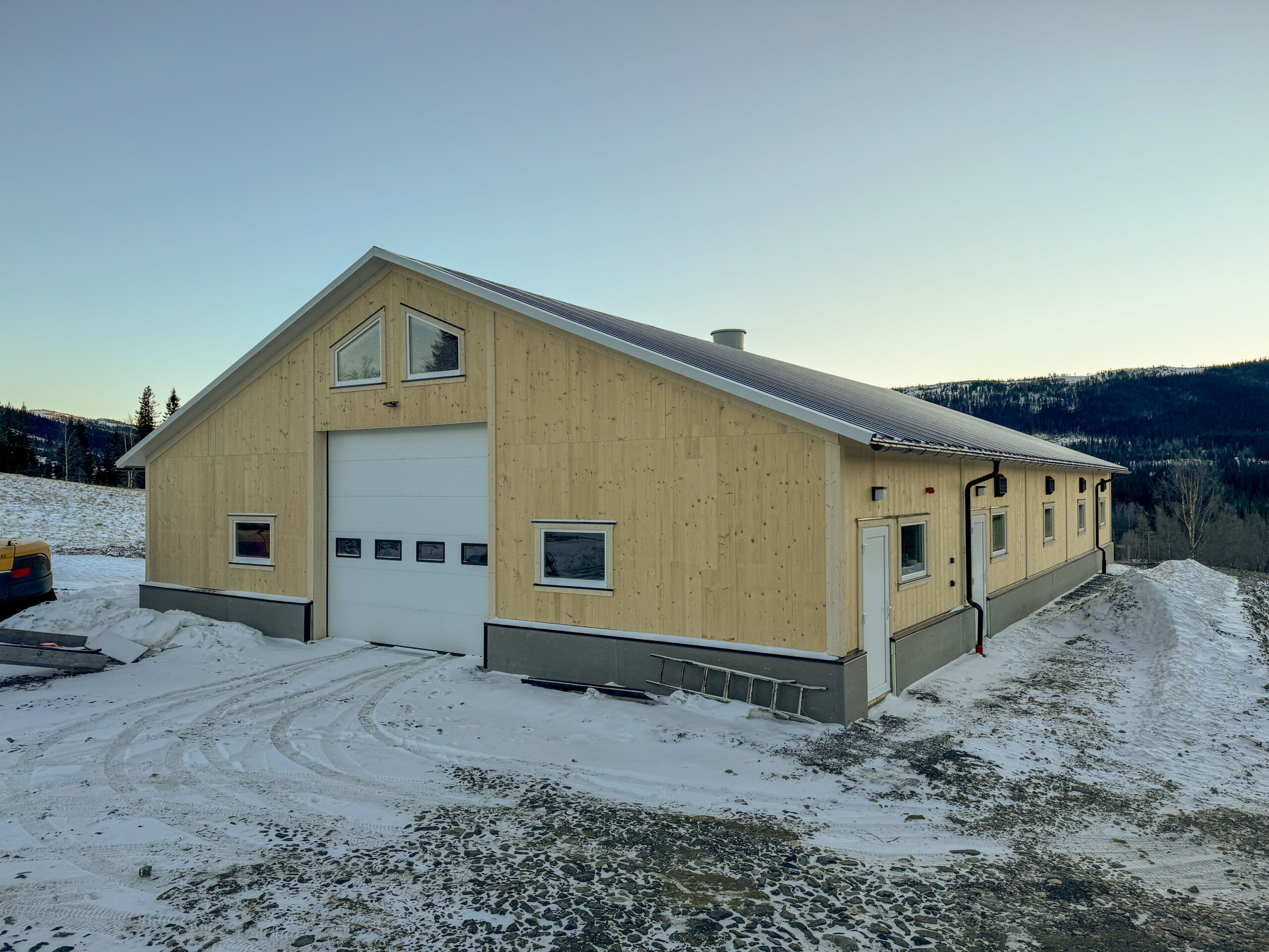 Vi er midt i landet for å se på et nyoppført sauefjøs. Fjøssystemer Bygg har levert det flotte bygget. Selger Stein Kristian Røset viser oss bygget som har stålkonstruksjon, massivtrevegger og sandwichelementer i taket.