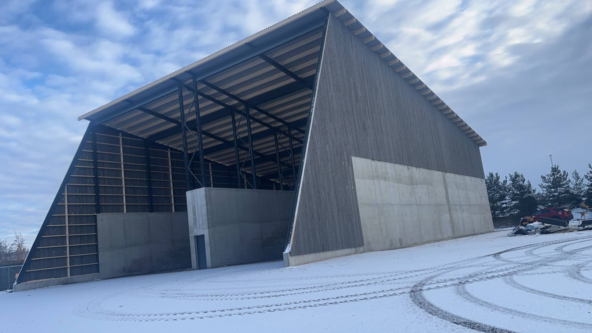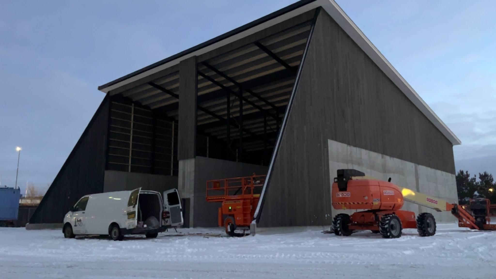 Bygget er totalt 575 m² og det er støpt med viftekanal i midten, med 5 meters høye betongvegger. Det er montert en solid stålkonstruksjon med limtre og stålplater på tak og Bergene Holm Nord kledning på vegg. Bygget strekker seg 13 meter opp i luften.
