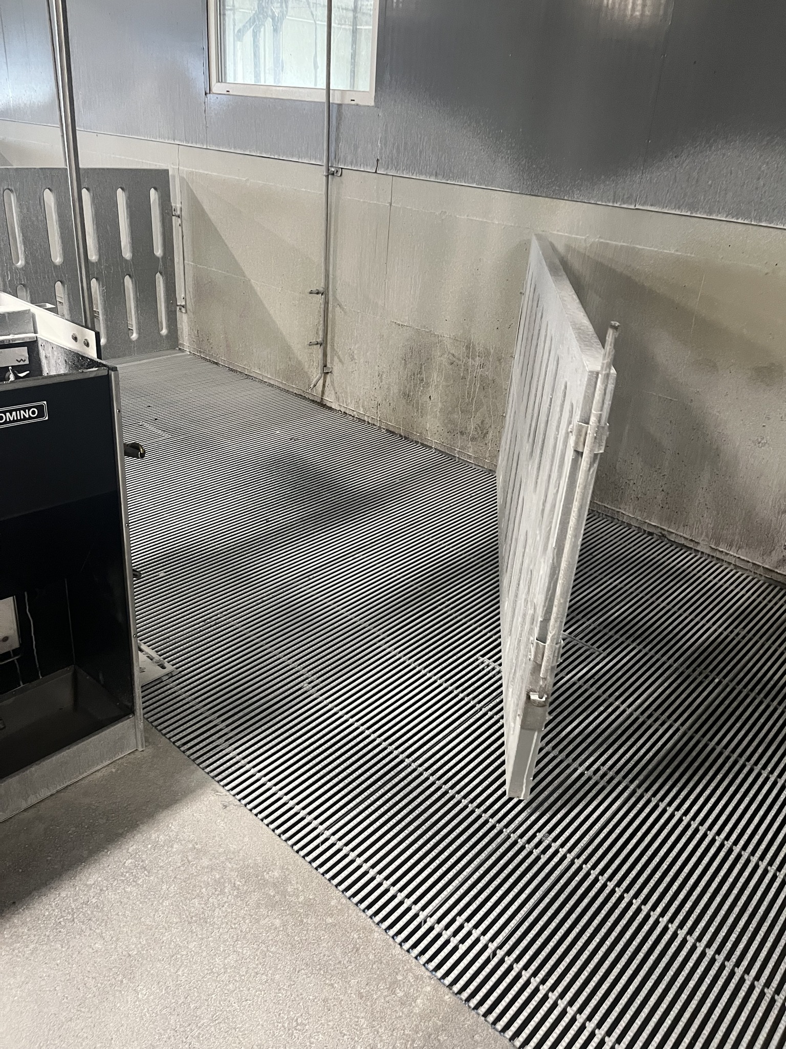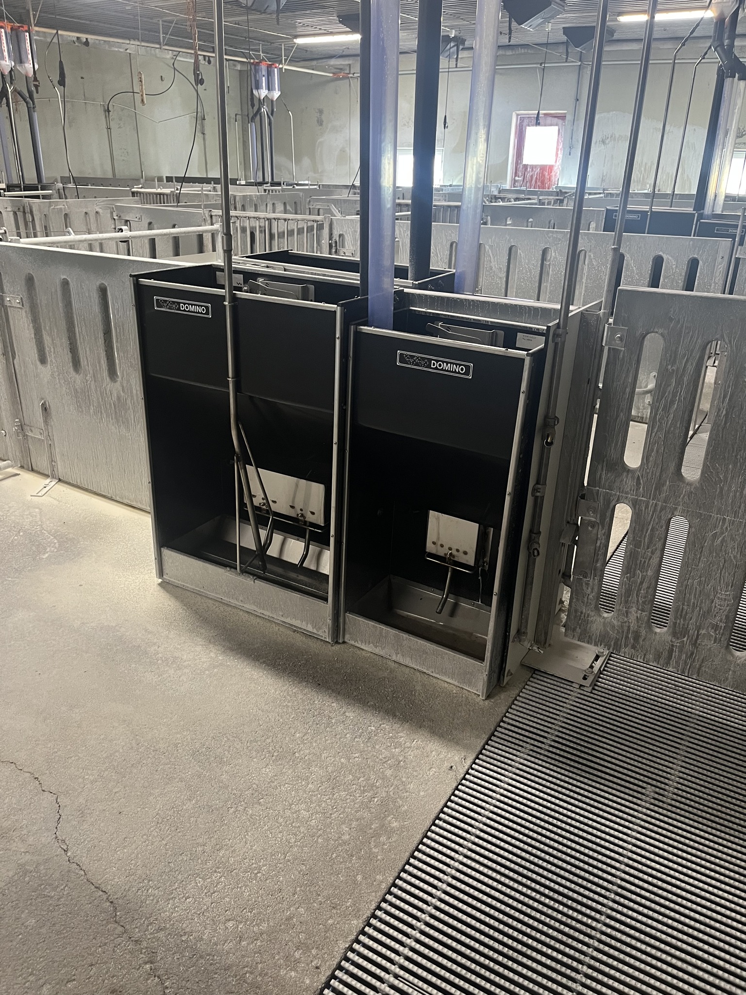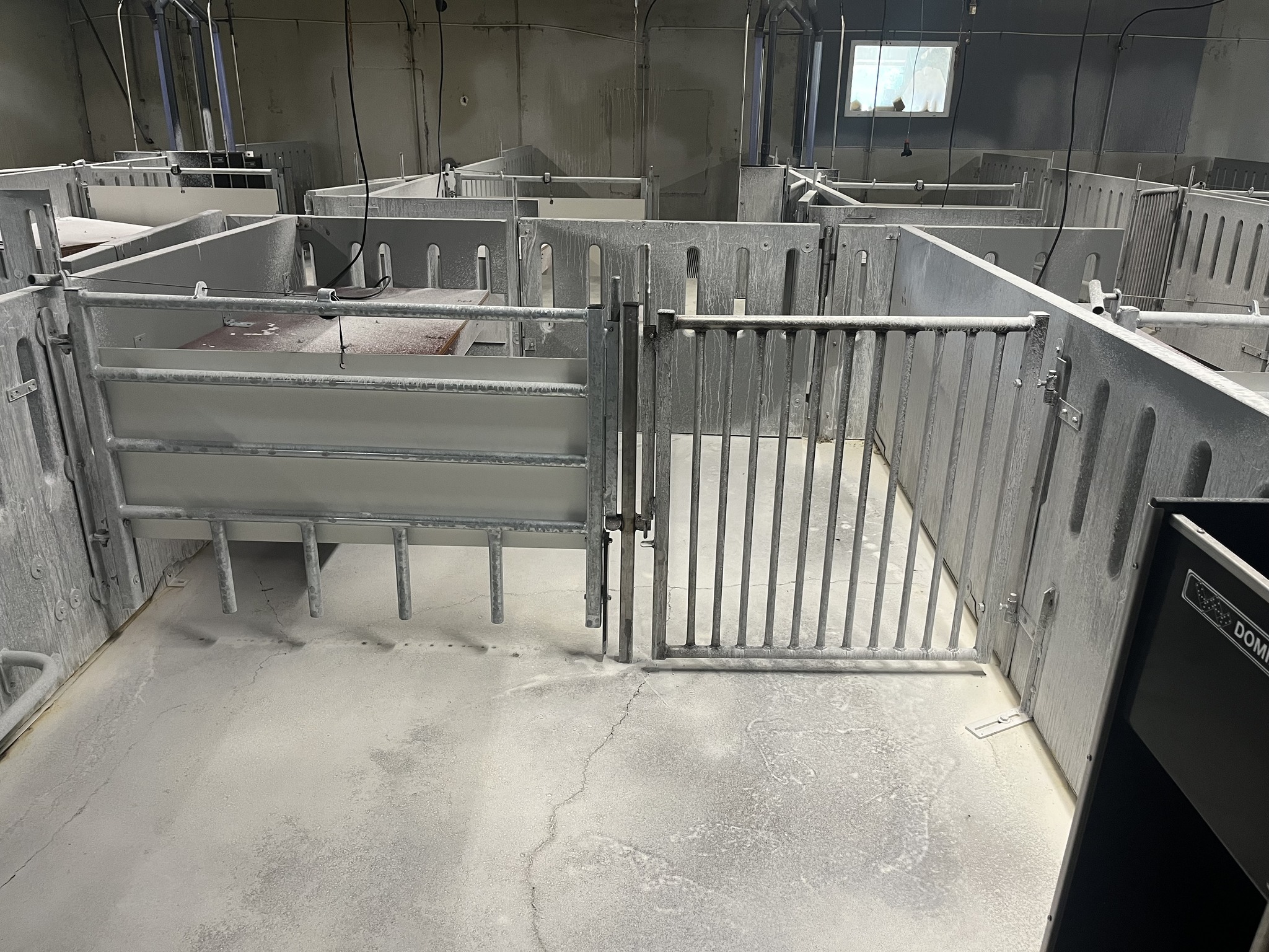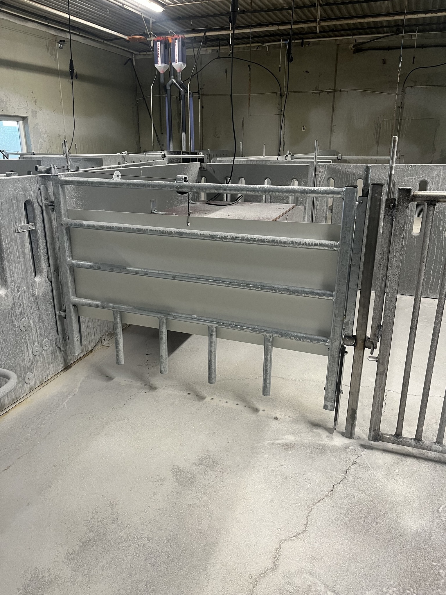 Grisehuset er på 16 binger x 3 avdelinger. Nå er 2 avdelinger FTS binger og 1 avdeling til purker, råne og bli frisk. Dette er store binger som måtte deles opp, så bingen kan passe til purke i fødsel, spegrishule, avvendt gris, og slaktegris i en og samme binge.