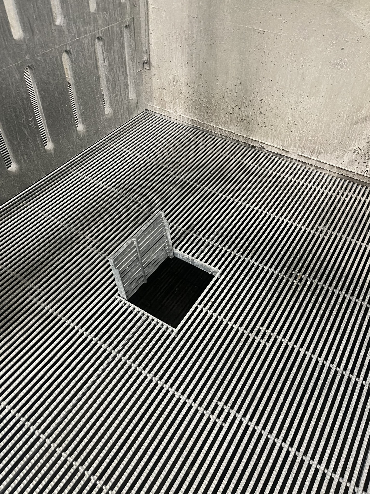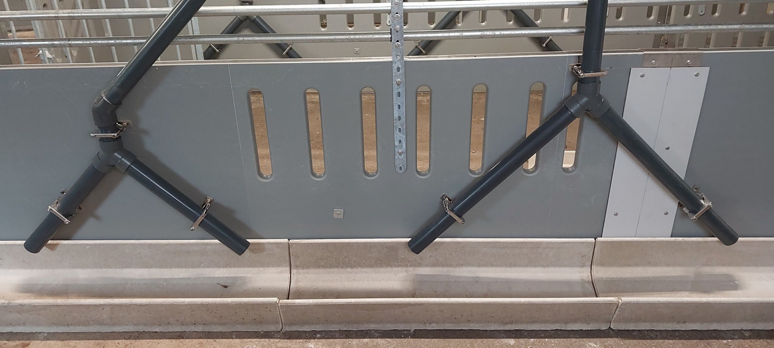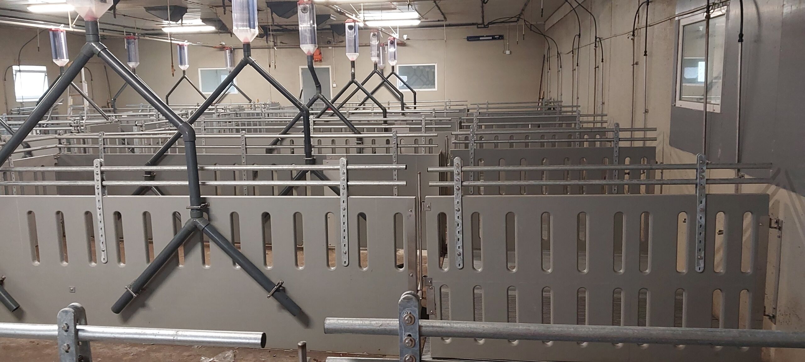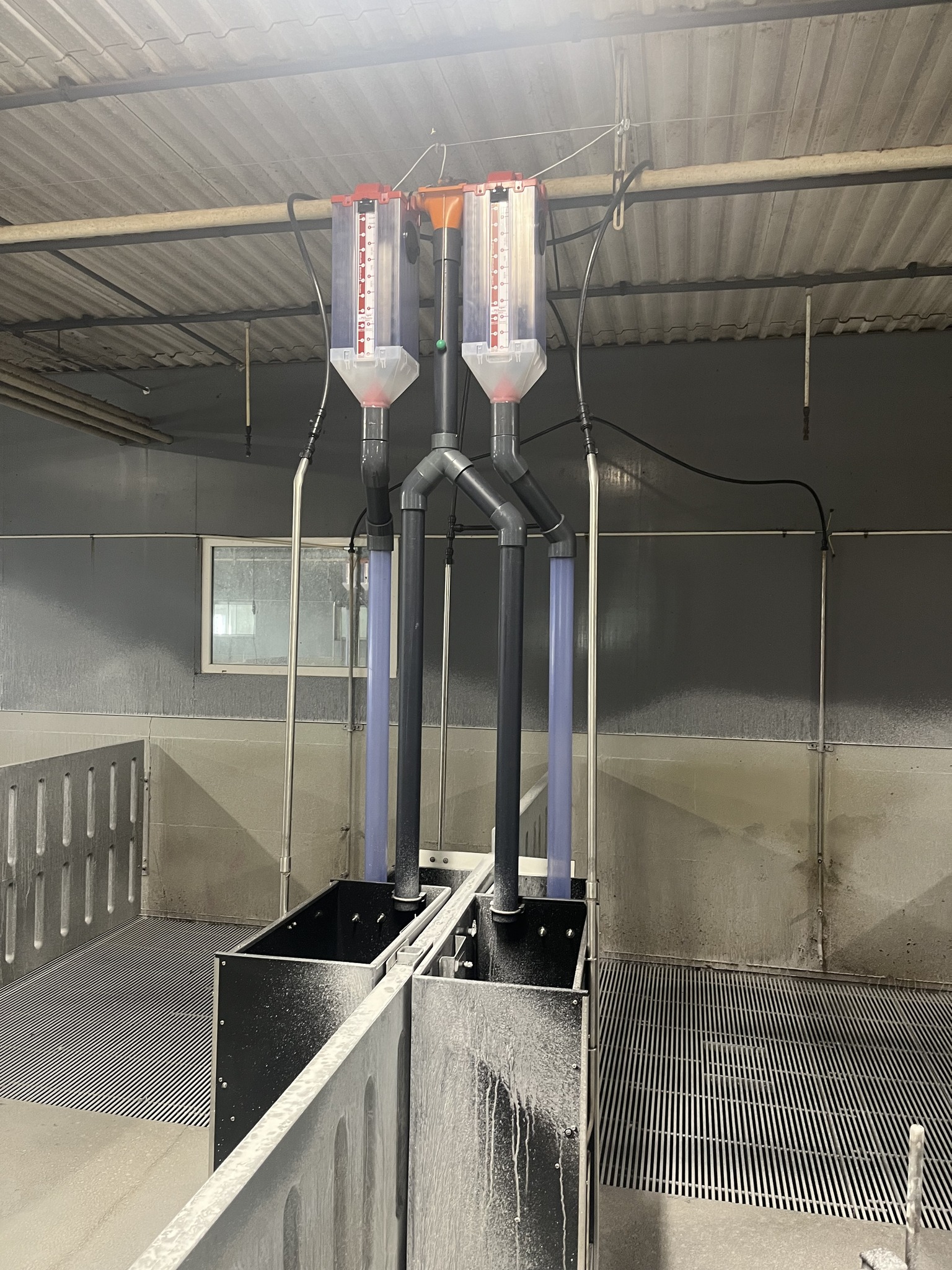Grisehuset er på 16 binger x 3 avdelinger. Nå er 2 avdelinger FTS binger og 1 avdeling til purker, råne og bli frisk. Dette er store binger som måtte deles opp, så bingen kan passe til purke i fødsel, spegrishule, avvendt gris, og slaktegris i en og samme binge.