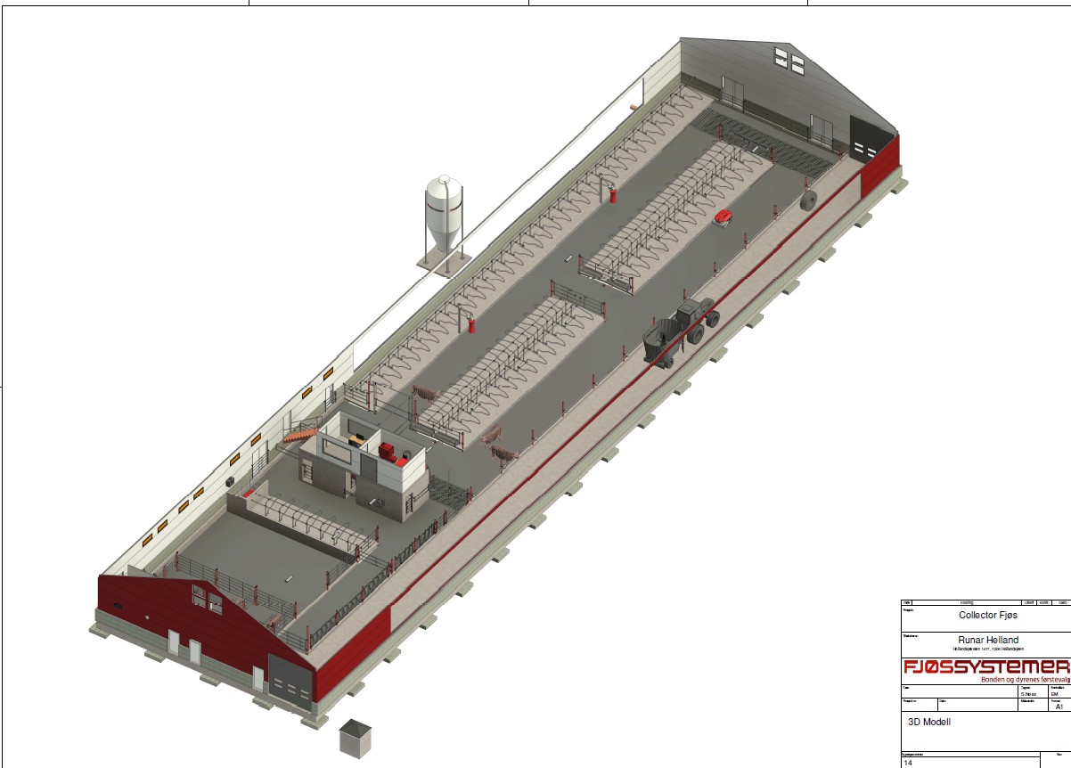 I august startet vi med det nye fjøsbygget til Runar Helland på 1525 m² i Trøndelag. Nytt fjøs med kapasitet til å produsere 900 tonn med melk. Fokus på god dyrevelferd gjennom gode mål og løsninger i fjøset. Kalvings- og sykebinger på dypstrø. Velferdsavdeling bak robotareal med større areal pr ku.