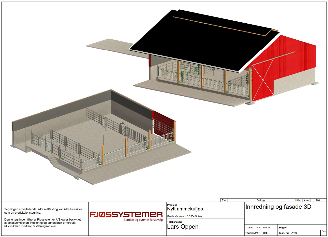 Fjøset har hatt forskjellige former og plasseringer i løpet av planleggingsprosessen, men vi er alle enige at dette ble en meget god løsning.