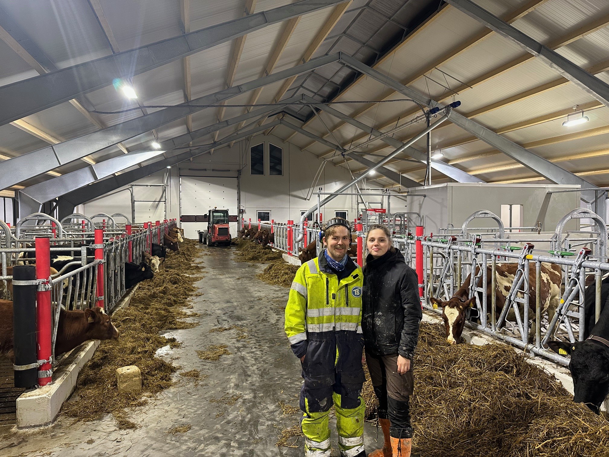 Vi vil gratulere Tiril Hansen Jervidalo og Ole Rasmus Auestad fra Sandnes med flott nytt fjøs. Roboten ble startet 14. januar 2025. Jammen ble det ikke en forlovelse også i forbindelsen med innflytting i nytt fjøs – gratulerer!