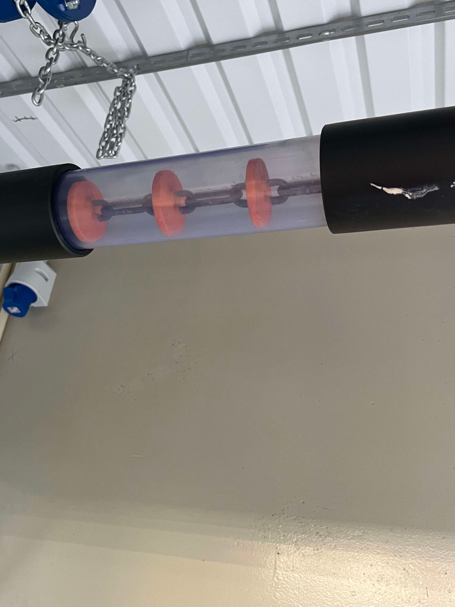 Inventaret er i Fiber-materiale. Rustfritt mot gulv og galvanisert i topp.