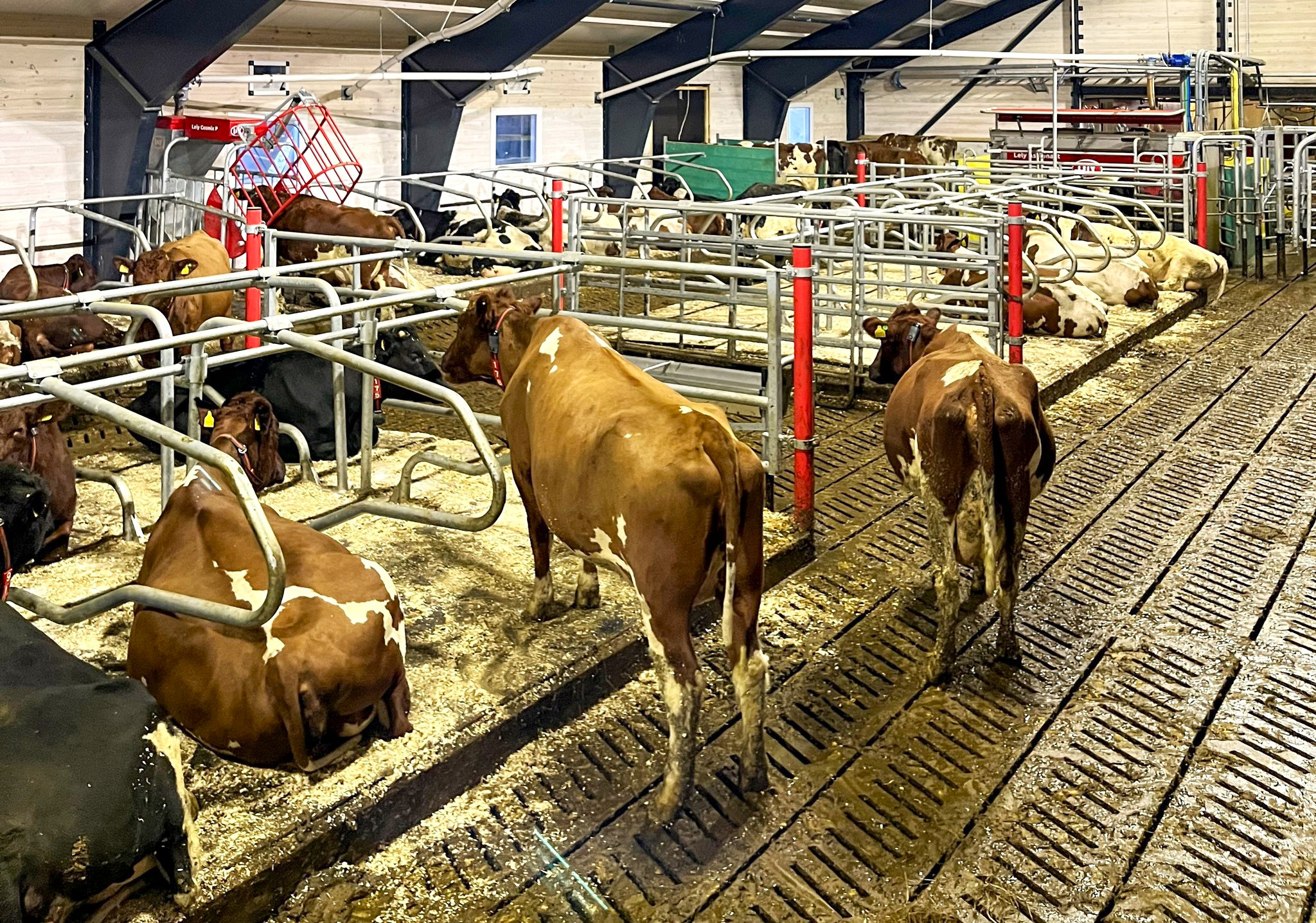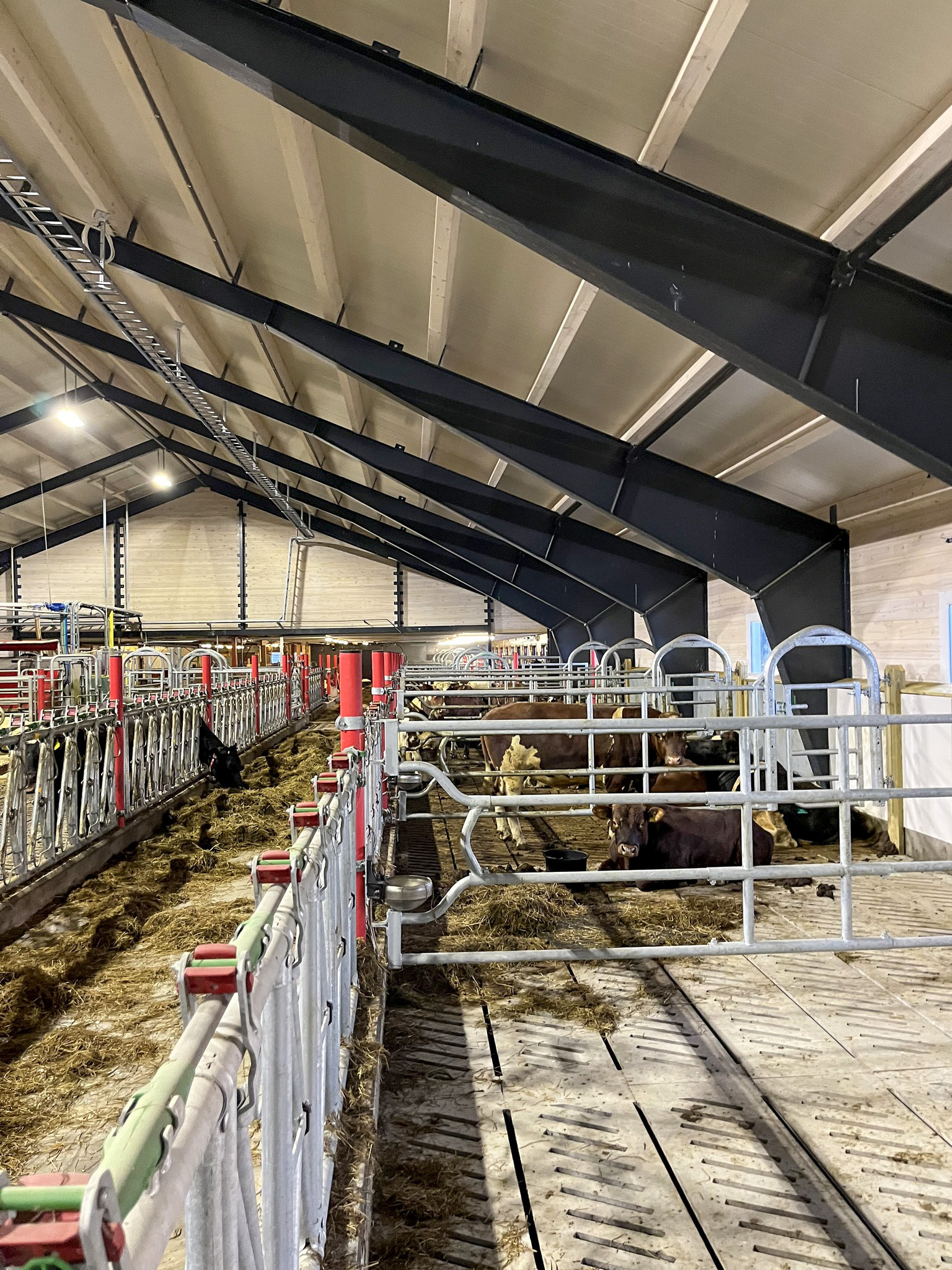 Påbygget er i lafteelementer med stålbuer fra Fjøssystemer Bygg og Østerdal Tre. Her er det også valgt Discovery skraperobot og Cosmix kraftfôrstasjon.
