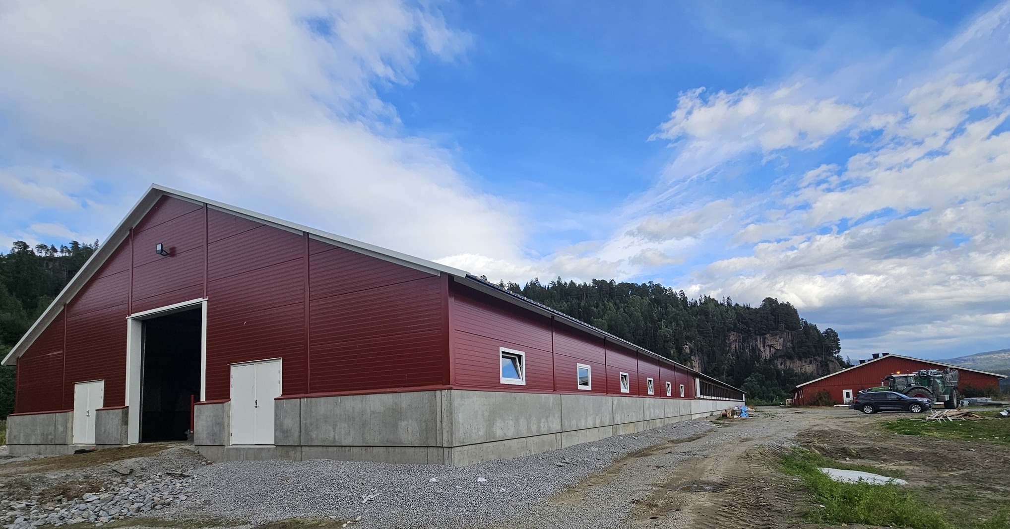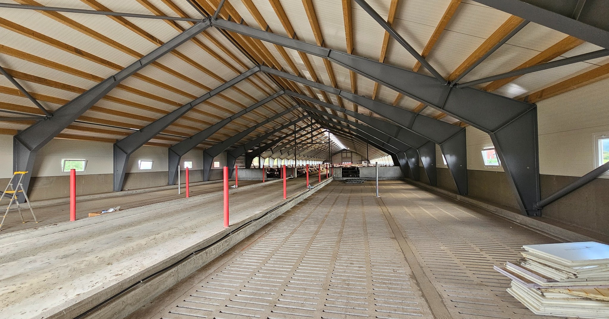 Fjøssystemer Bygg bygde eksisterende fjøs i 2021 og den totale størrelsen på bygget er nå 21,2 x 110 m og skal huse ca. 700 okser.