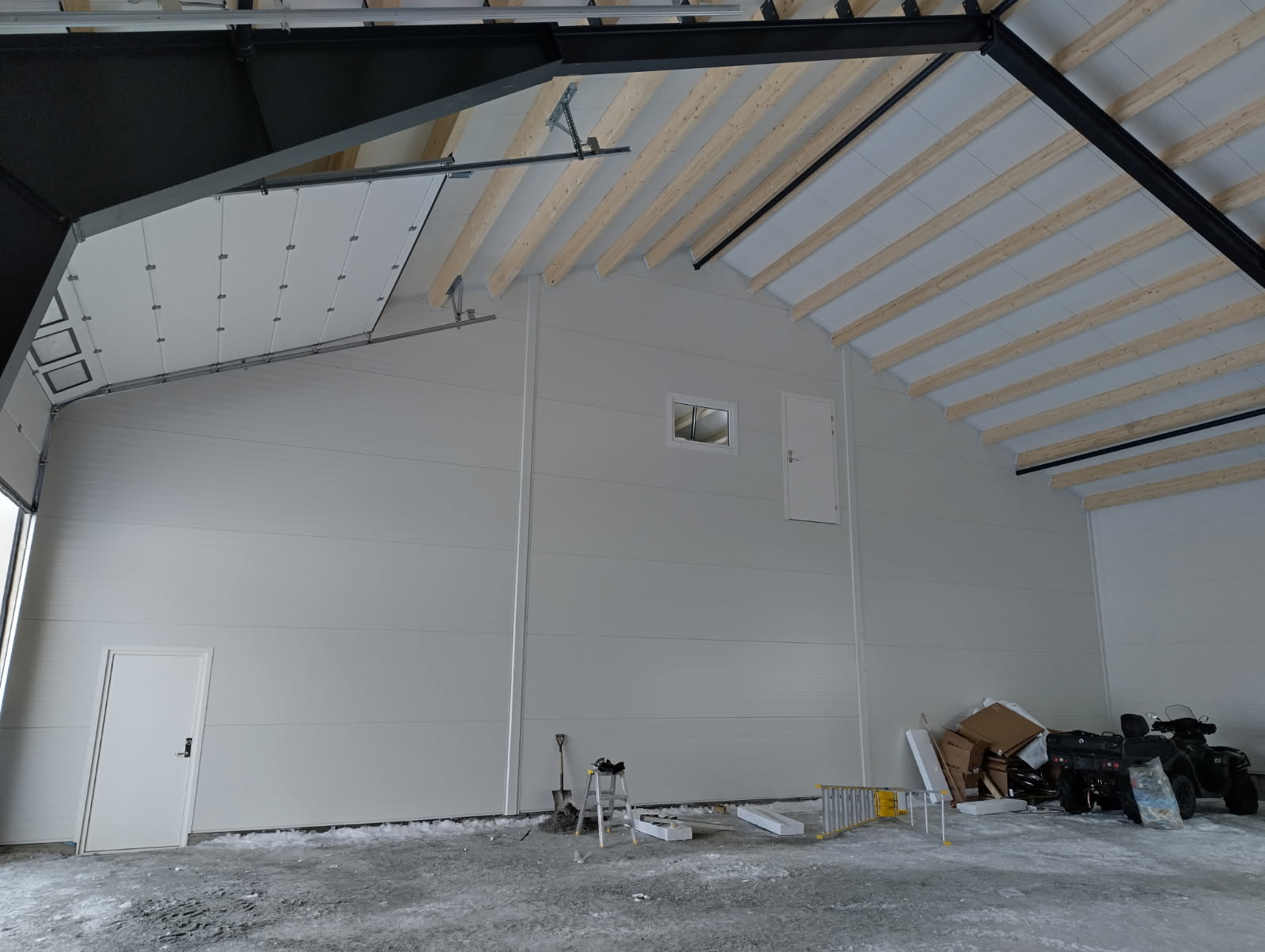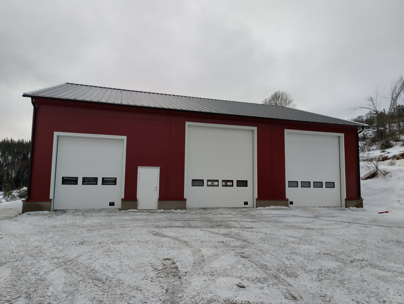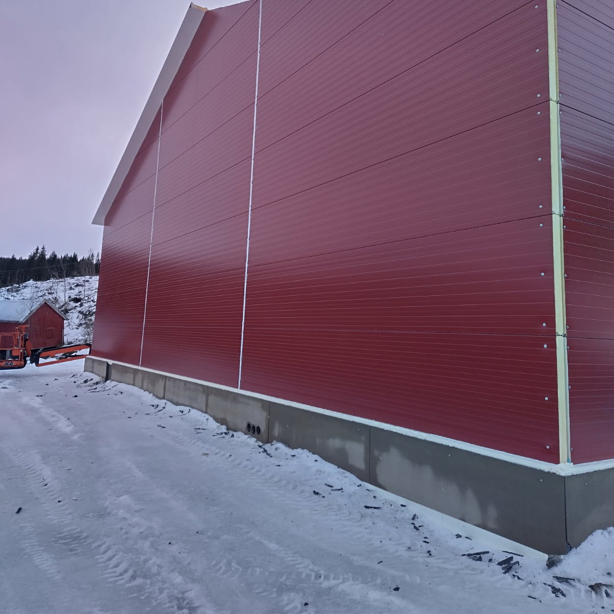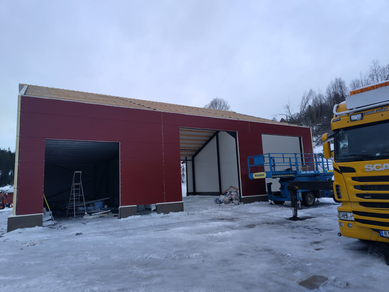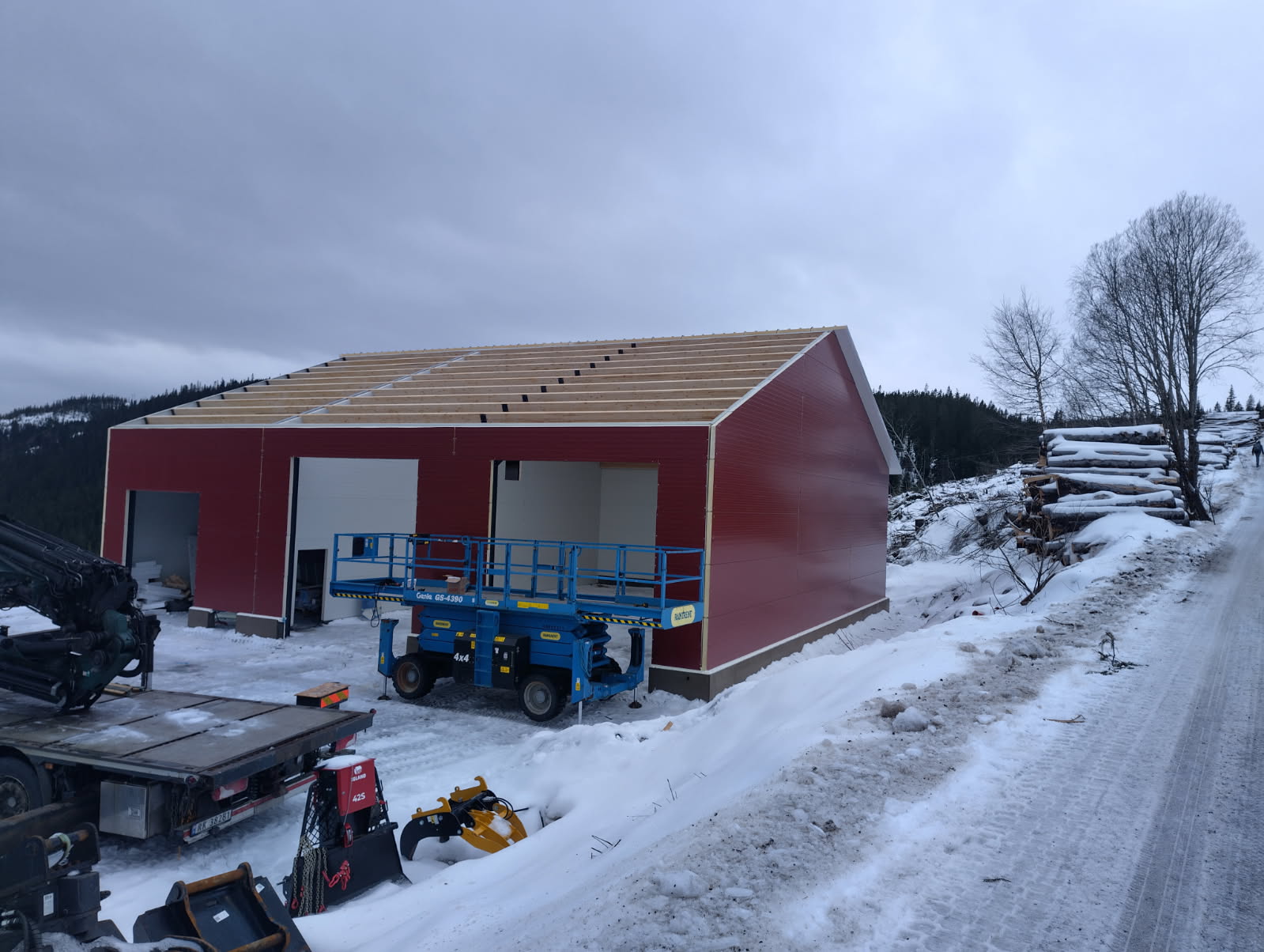 Lageret er på 17×18 meter med 300 m² grunnflate med 5 meter vegghøyde. I ene delen har vi montert mesanin på 100 m² som kan brukes til lagring etc.
