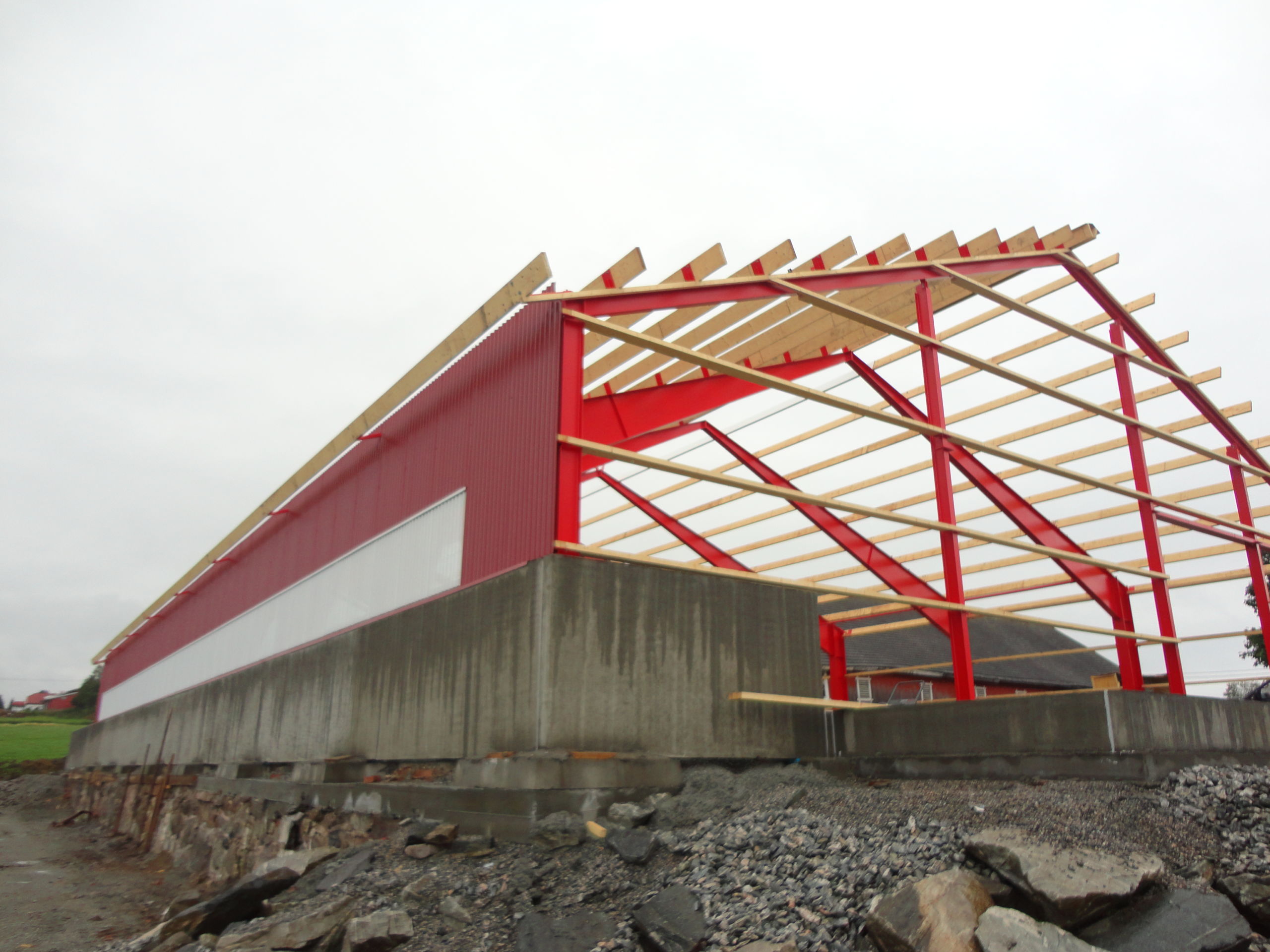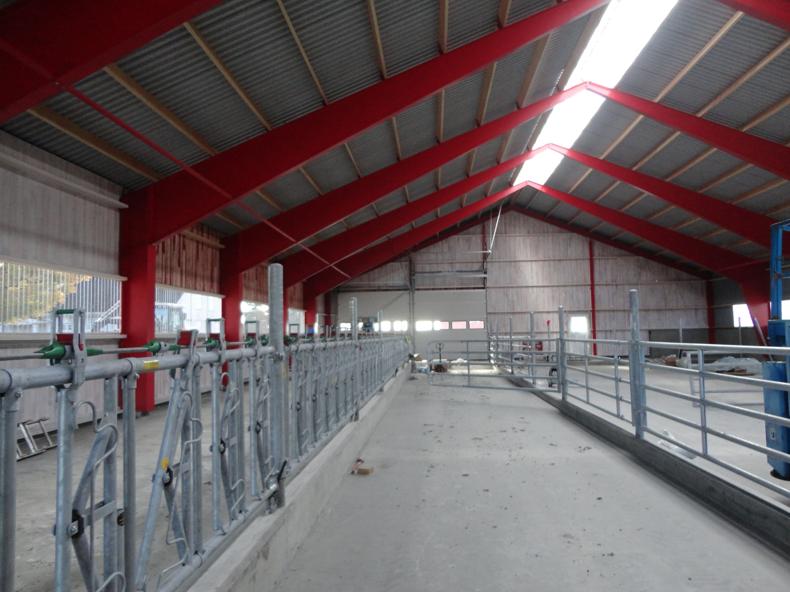Det nye fjøset er oppført med stålkonstruksjon, og har panel på to vegger, og betongbrystning og stålplater på to vegger. Stålplater på taket.. Fjøset er uisolert, og har naturlig ventilasjon med luftinnslipp gjennom perforerte stålplater. Bygget måler 40×20 meter, og har plass til 72 ammekyr på talle.