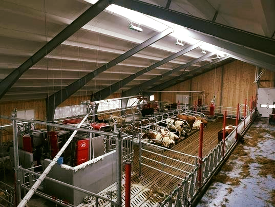 Fjøssystemer Bygg har levert stålkonstruksjon med kompakttrevegger og Møre-royal kledning. Fjøssystemer Nordvest har levert I-mek med Lely A5 mjølkerobot og Lely Discovery skraperobot. Jourdain innreiing, Wopas innreiingsstolper, Easyfix båsmatter, Suding spalt, naturleg ventilasjon og Agrilight belysning.
