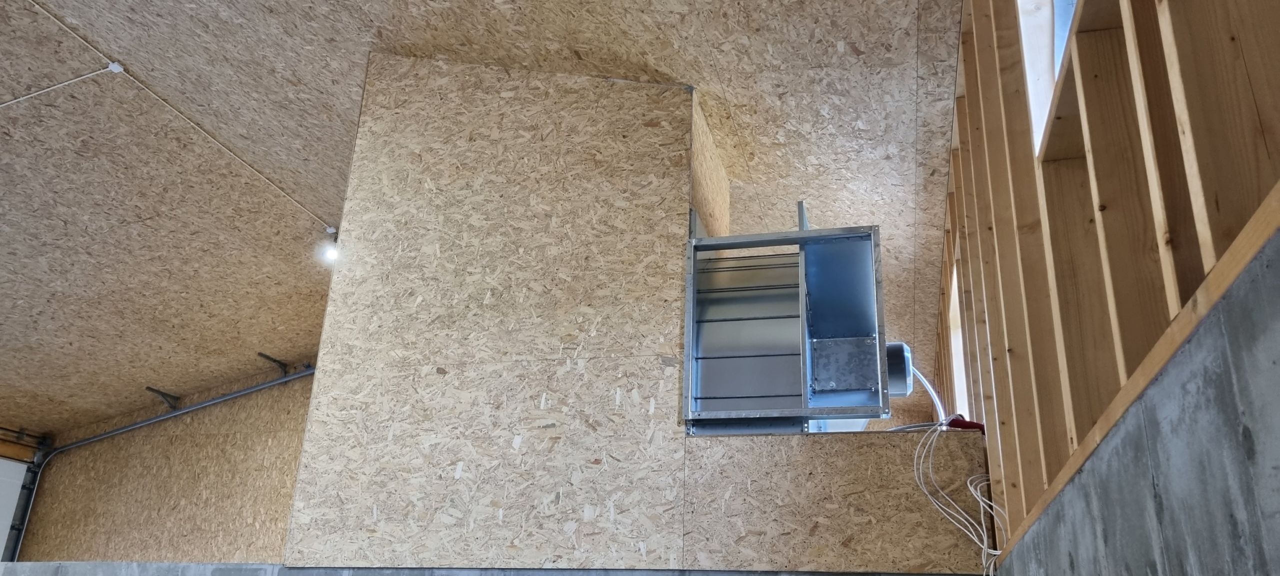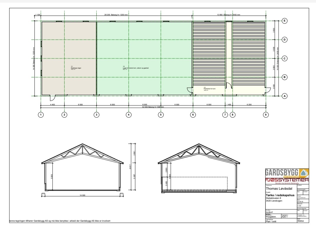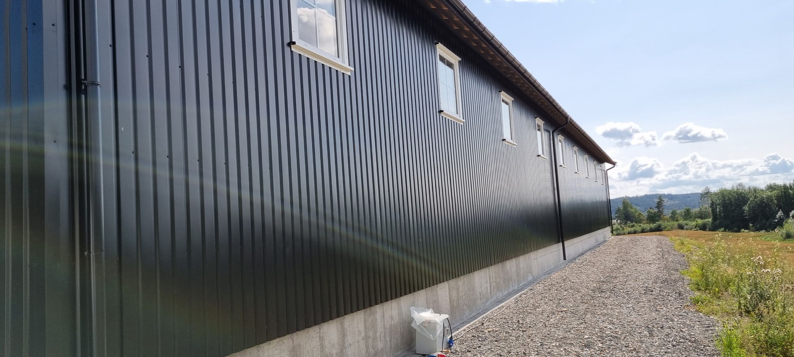 Kunden er kjempefornøyd, og gleder seg til årets skurtresking. Korntørka består av to plantørker på tilsammen 185 m2. Det er støpte vegger opp i 2.4 m, så det er plass til 450 m3 korn.