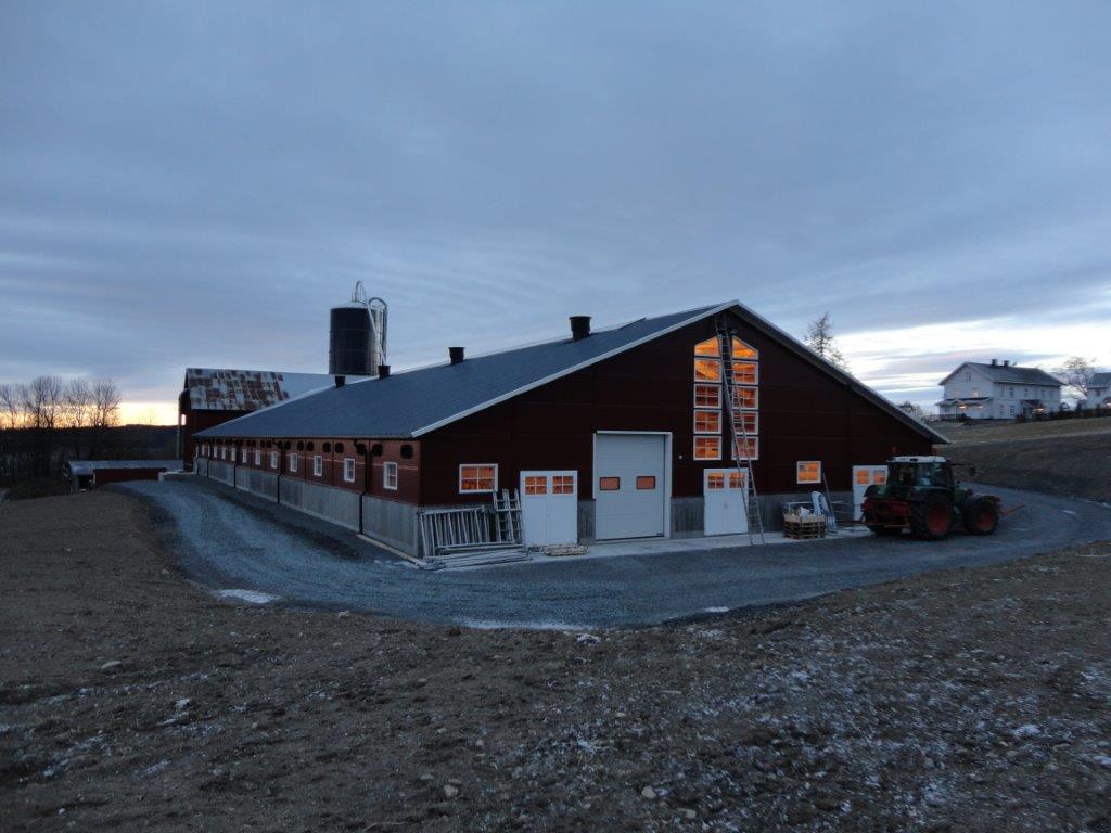 Det nye fjøset har stål som bærekonstruksjon. Veggene har betongbrystning og sandwichpaneler, og på taket er det sandwich.