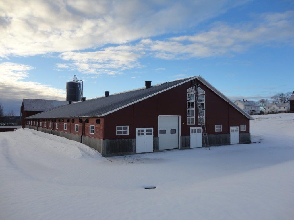 Bygget er 60×22,6m, og er bygget inntil eksisterende fjøs.