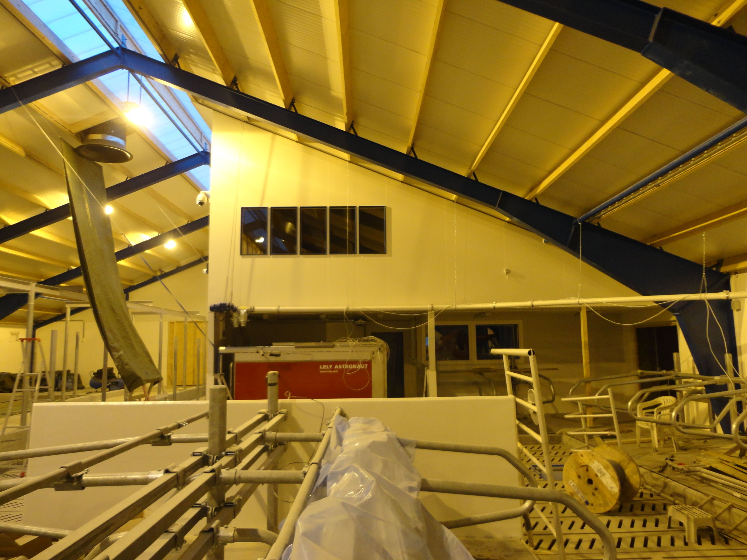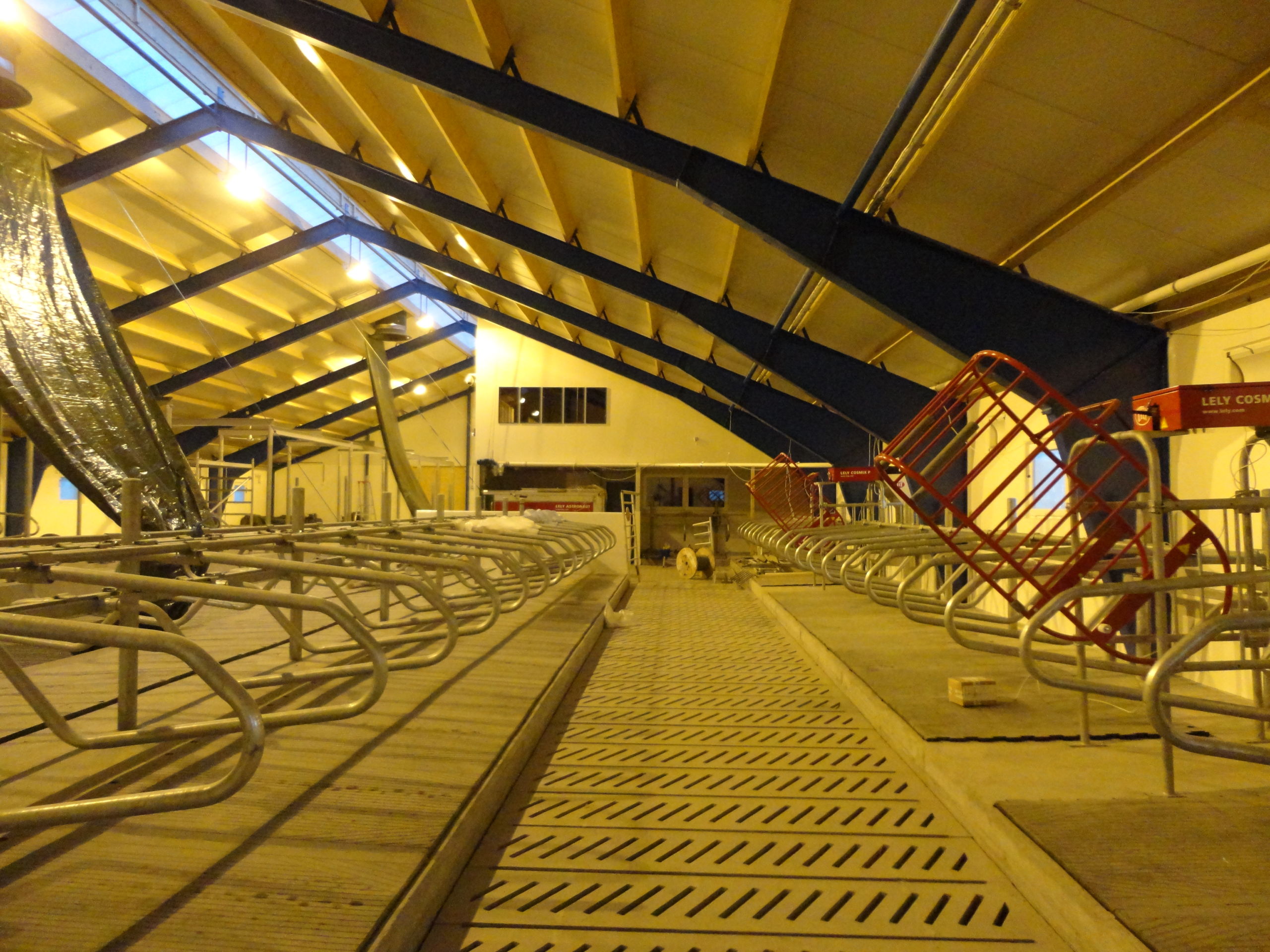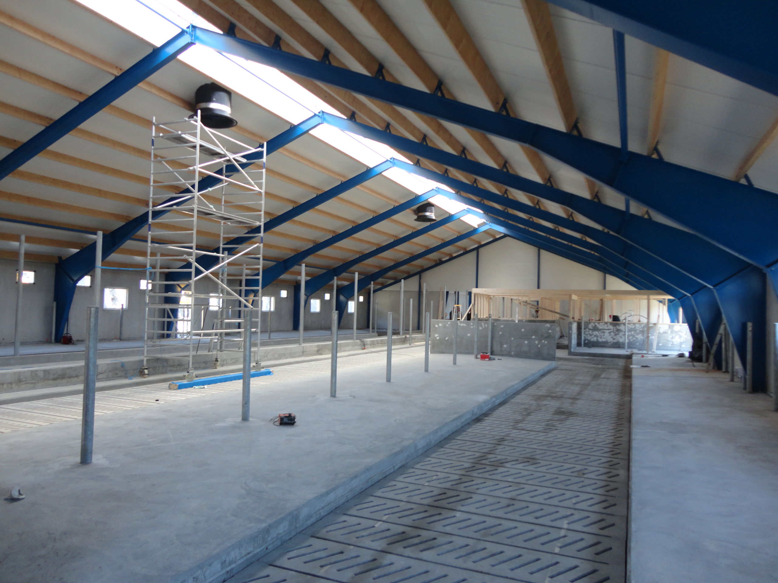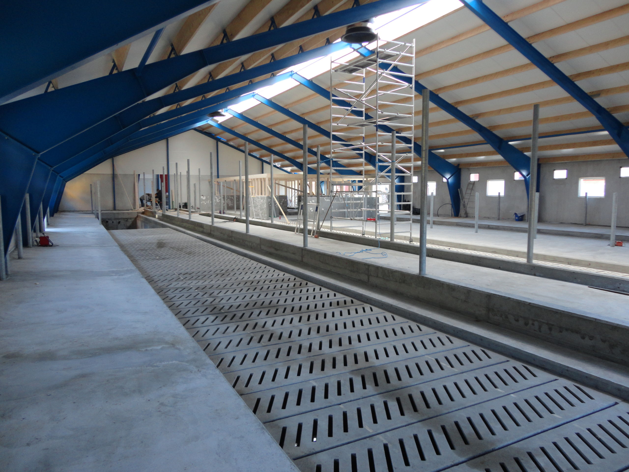 Det nye fjøset er bygget inntil eksisterende fjøs, og har et husdyrrom på 41,85×21,7m inkl. sosiale og tekniske rom. I tillegg er det en uisolert fôrsentral på 12×15,25m.