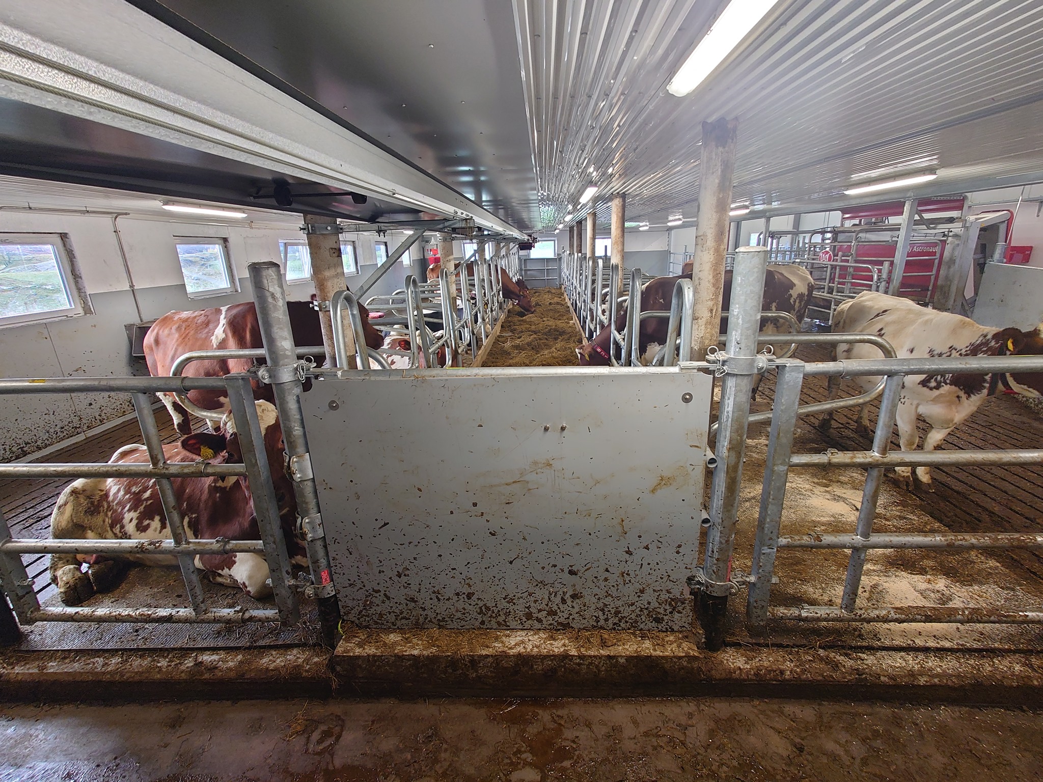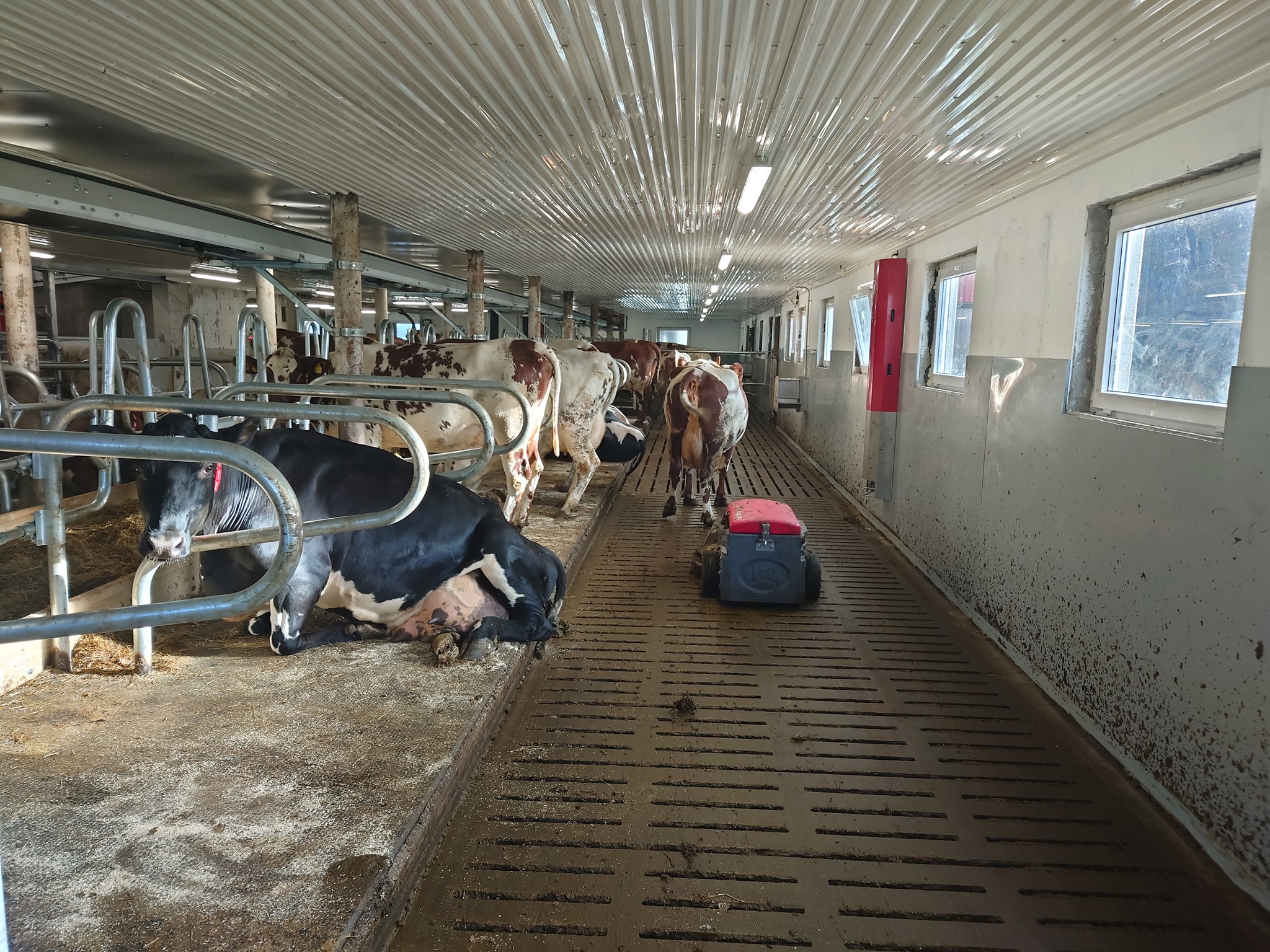 Her har Fjøssystemer Vest levert følgende utstyr: Lely A5 melkerobot med celletallsmåler, aktivitetsmåler og melkeledning 2 i tillegg til Lely Discovery S90 skrapetrobot.