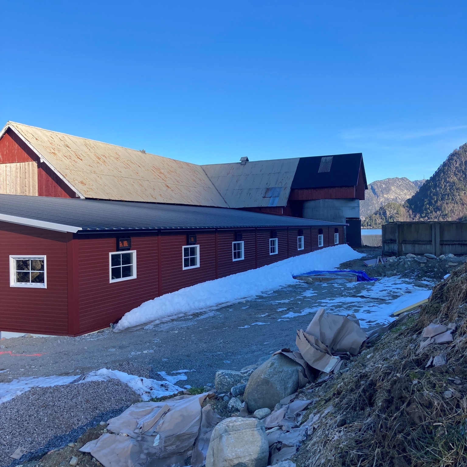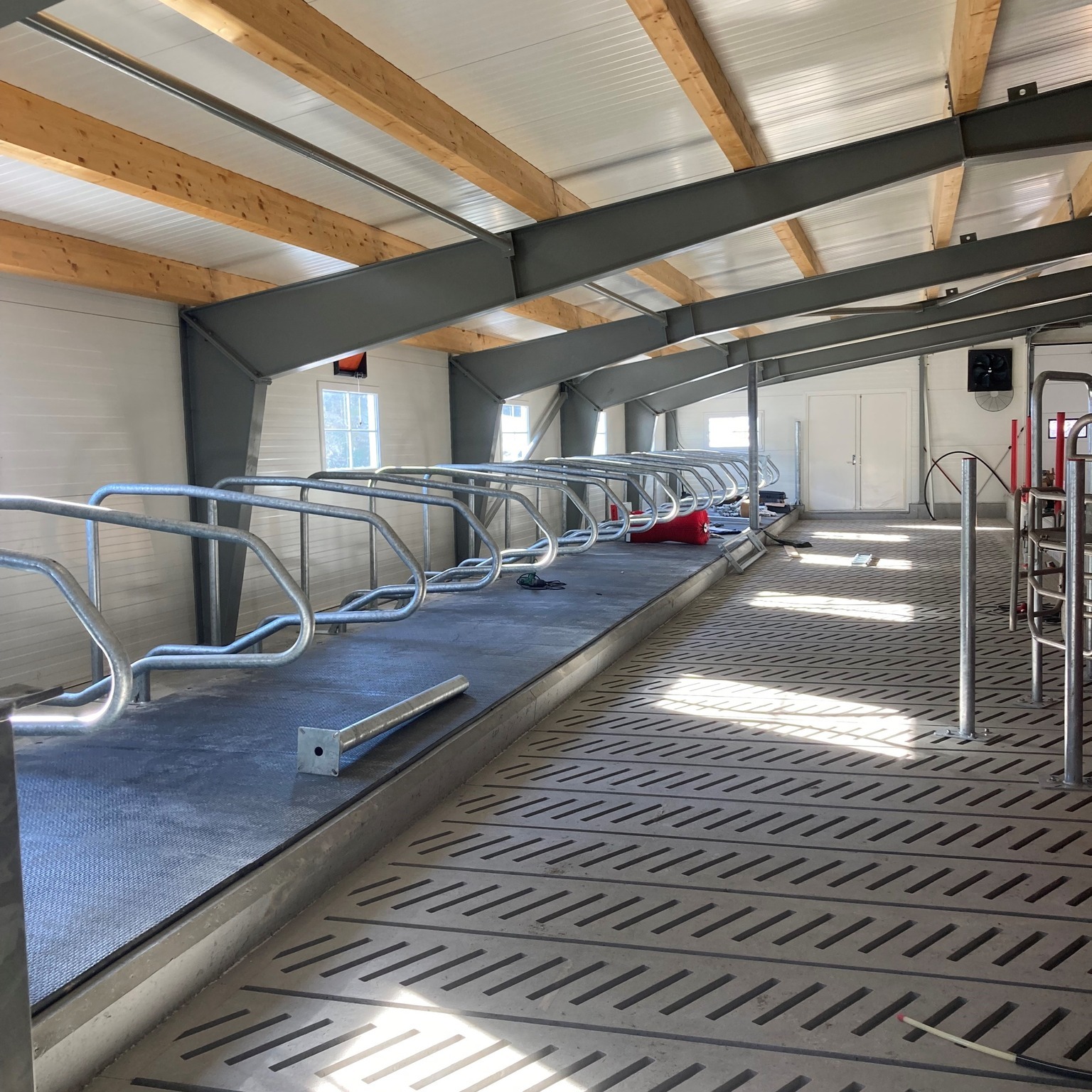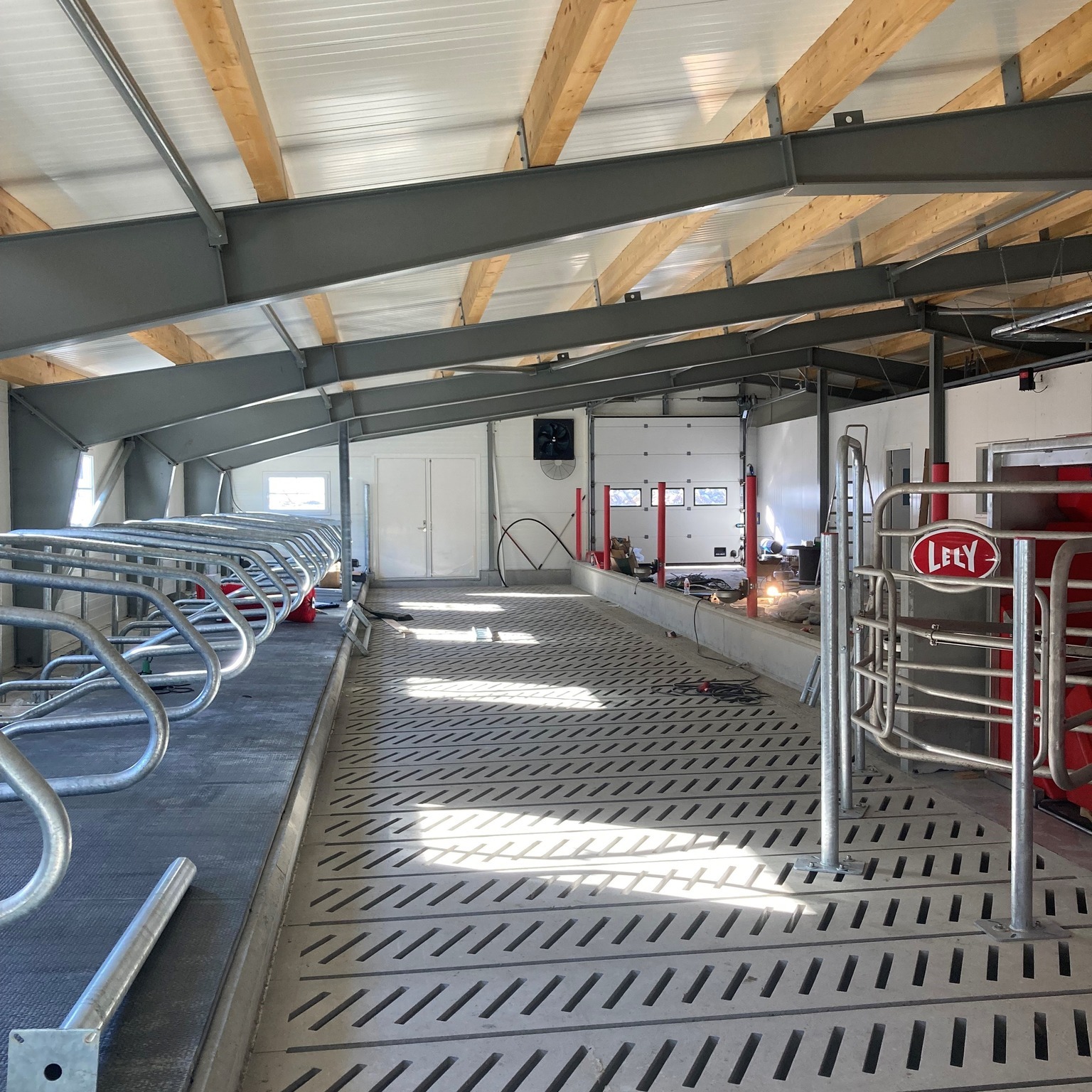 Vi har nå overlevert påbygg på eksisterende fjøs i stål og sandwich, med gjødselskjeller under til Arnt Olav Haukeberg, Måndalen. Påbygget er til melkeku og sosiale rom.