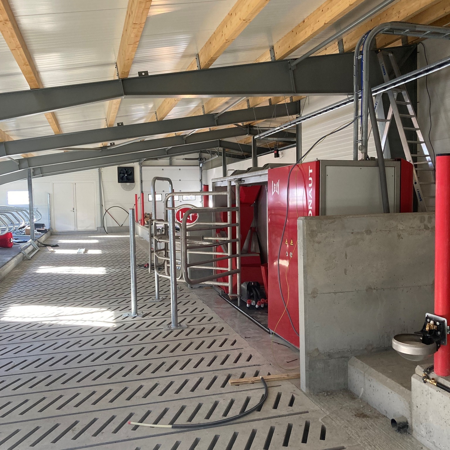 Fjøset har Kraiburg matter, Suding spalt, Jourdain innredning og BigDutchman ventilasjon. Kua skal melkes av en Lely A3 melkerobot.