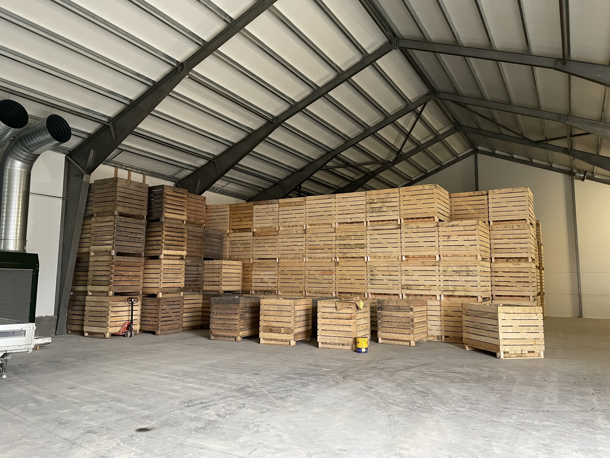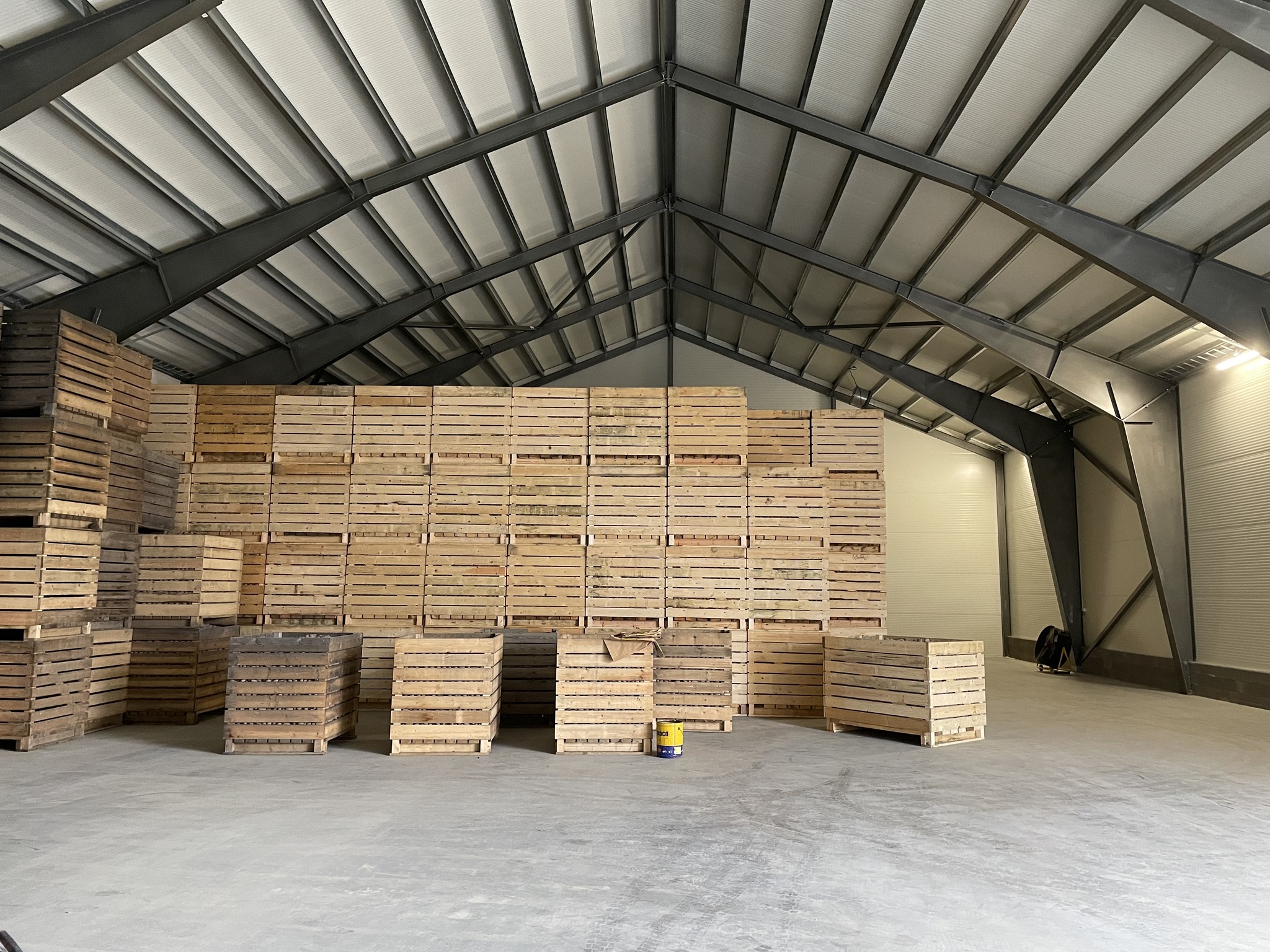 Bygget er på 1600 m² og er satt opp med stålbuer og isolerte sandwich-elementer på vegg og tak. Det har vært fokus på at bygget skulle være godt isolert, derfor er det benyttet 12 cm sandwich paneler på vegg og tak. Det er også viktig med nok høyde for lagring av potet kassene, det ble da benyttet en vegghøyde på 6 m.