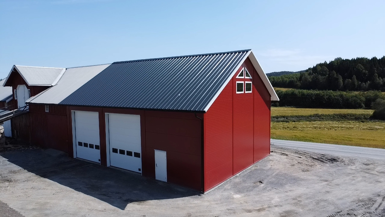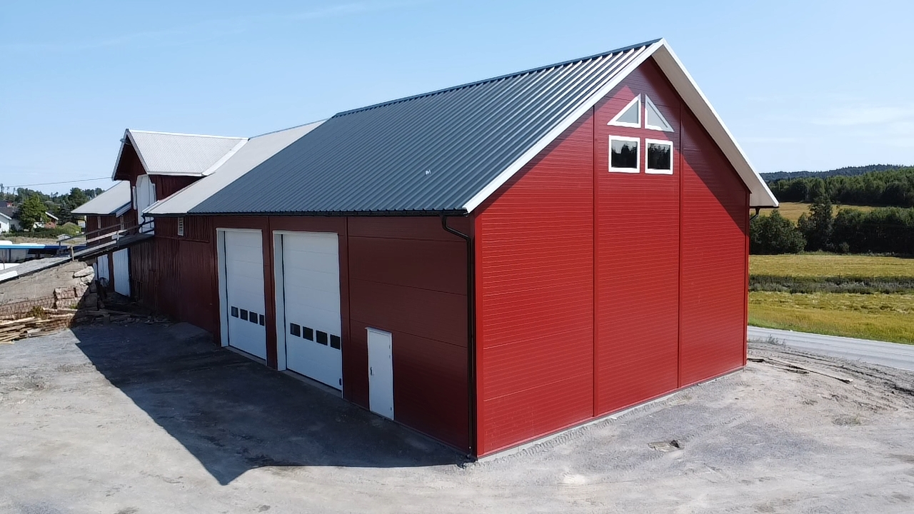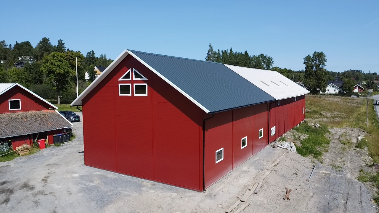 I Hobøl trengte Nils Burum mer lagerplass i et eksisterende bygg. Det er bygd med stålkonstruksjoner og sandwich elementer.