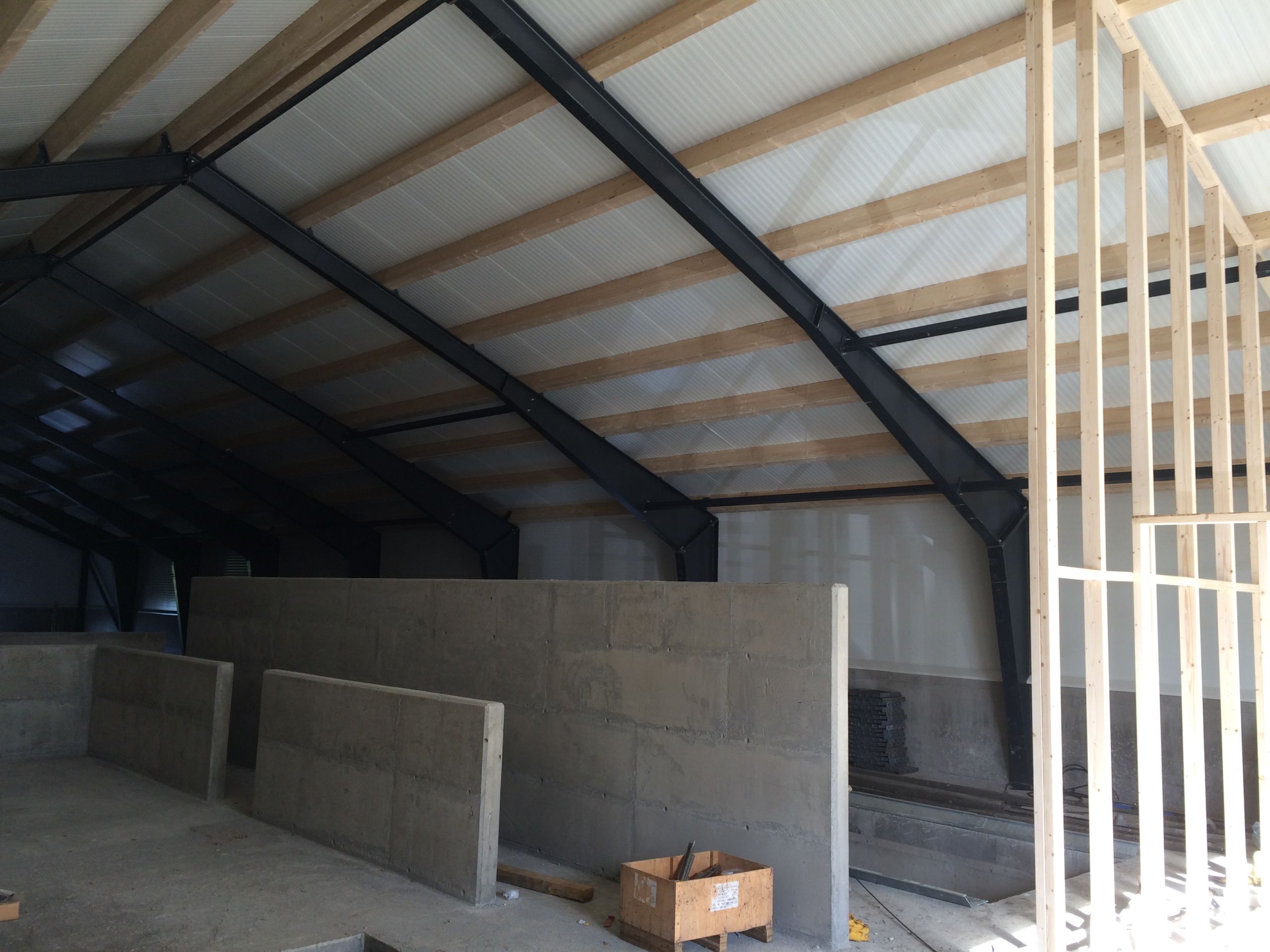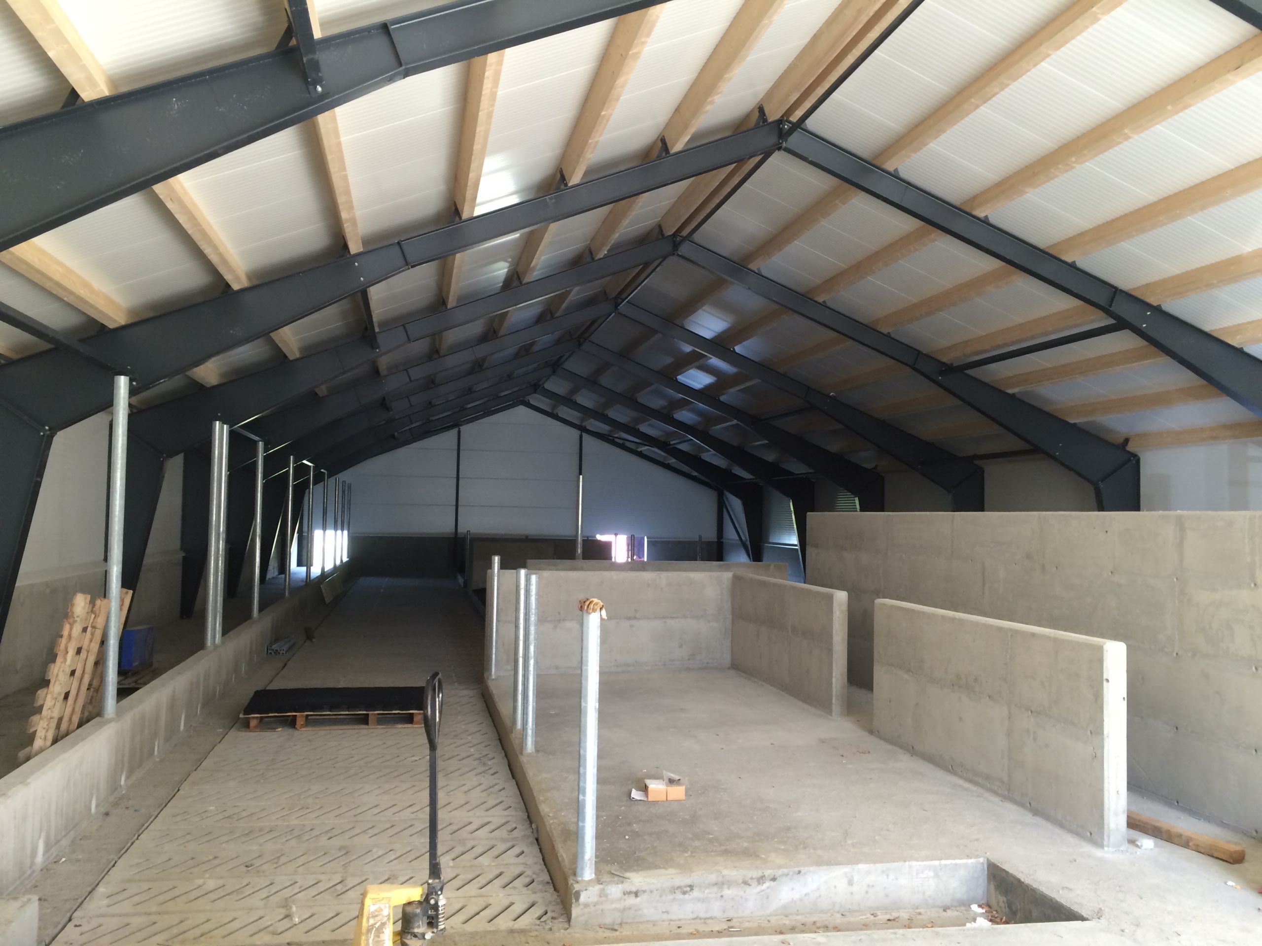 Det nye fjøset er et rent melkekufjøs, og settes opp med stål som bærende konstruksjon, betongbrystning og sandwichelementer på vegg og tak.