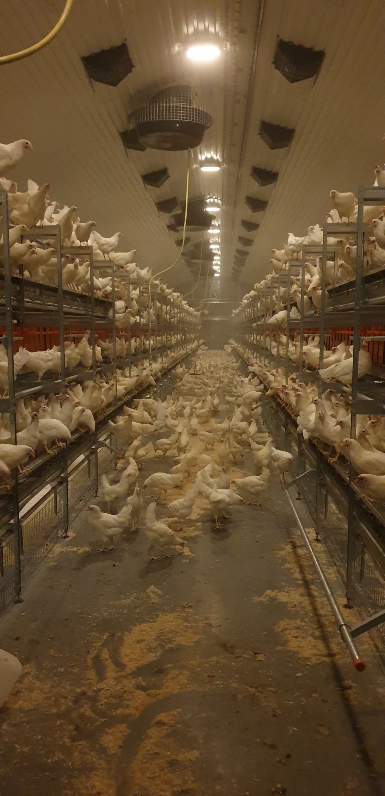 Fjøssystemer Midt Norge har levert Natura Step aviar, Zeus og FlexLED belysning, ventilasjon med takventiler/takvifter, elektronisk fôrvekt, Viper styring med applikasjon på mobil og AC Touch alarmsentral – alt levert fra Big Dutchman.