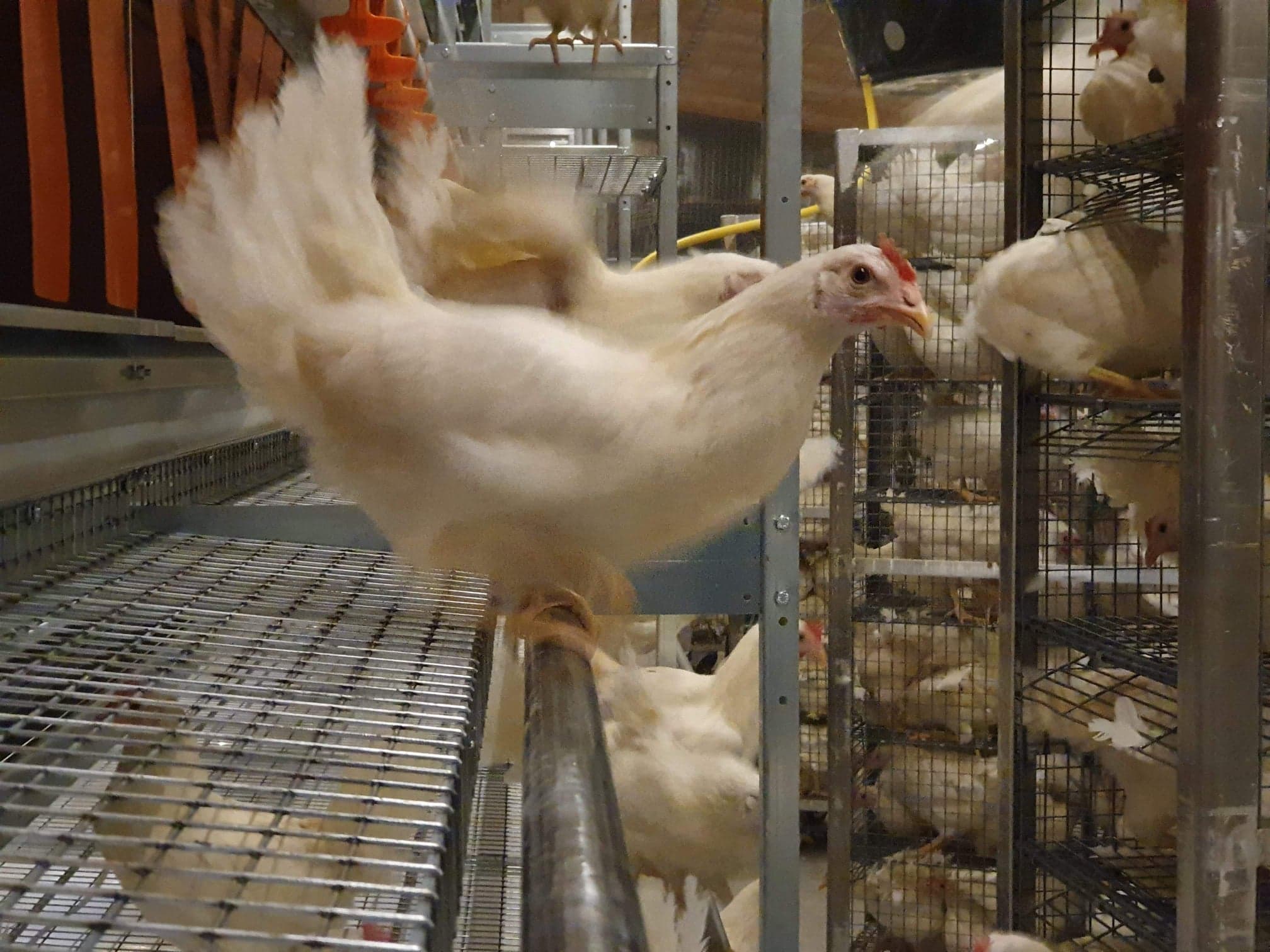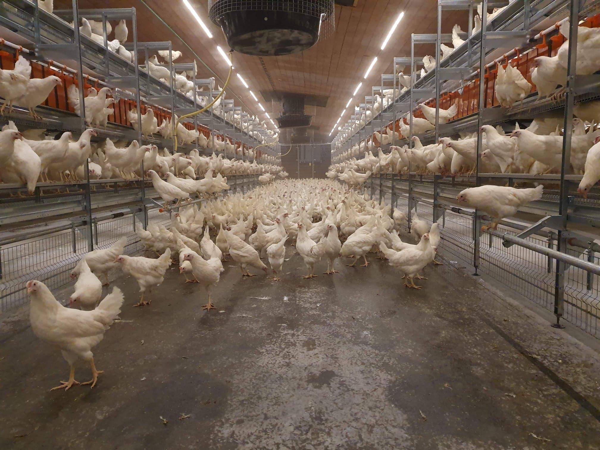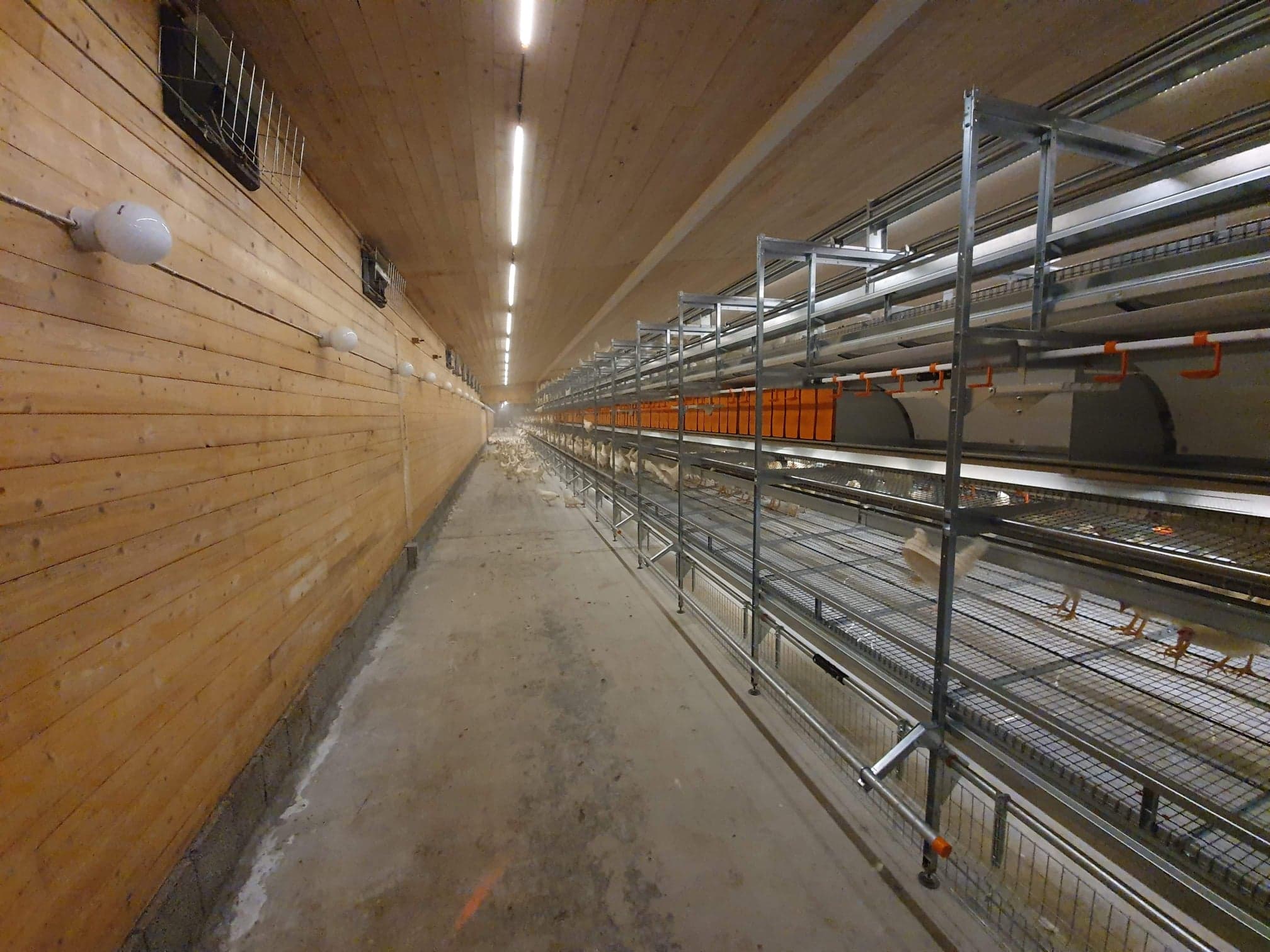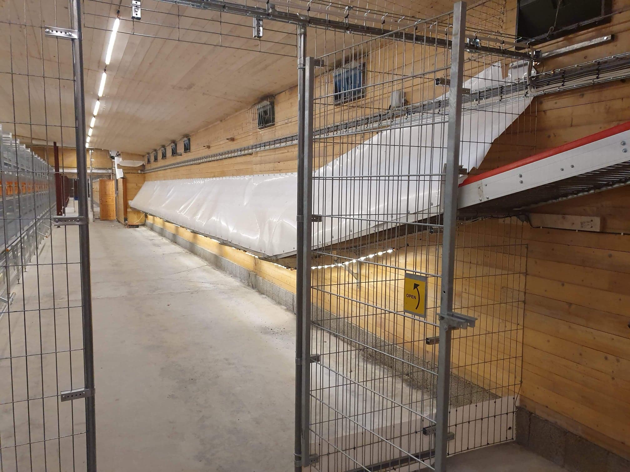 Fjøssystemer har levert to rekker Natura Step aviar, tilpasset variert takhøyde i eksisterende fjøs.