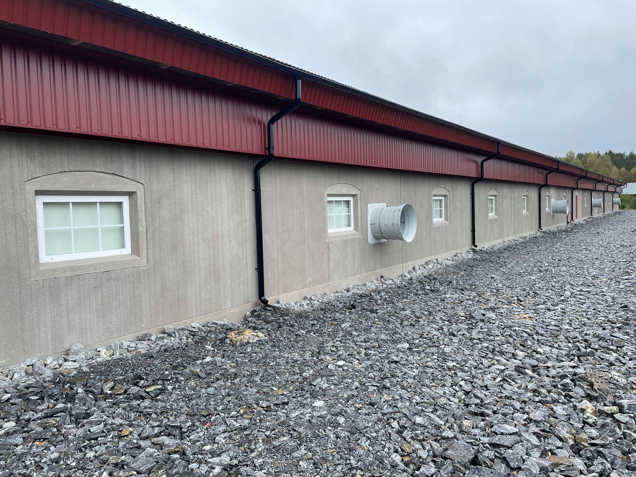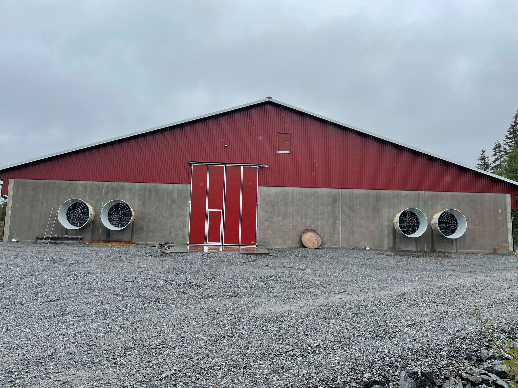 Hege Alice Gjerberg og Anders Degnes har bygd nytt hus til slaktekylling. Dyrerommet er på 30x90m. Vi har levert ventilasjon til dette prosjektet.