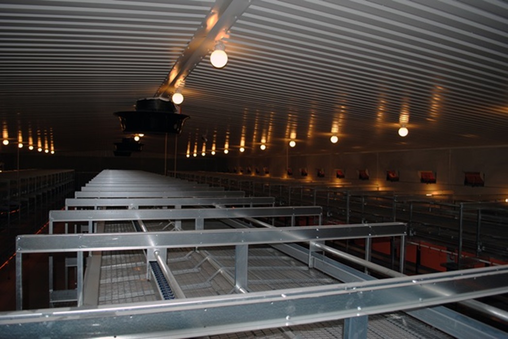 Arne Olav Keiserås har bygget nytt verpehønsfjøs for 7500 frittgående høner. Vi har levert Big Dutchman Natura Step 24-18 aviar, Big Dutchman ventilasjon, stålsiloer, Prinzen PSPC30 pakkemaskin med forlenget innløpsbånd og stabler, og Viper Touch klima- og produksjonskomputer med BigFarmNet dataprogram for overvåkning og fjernstyring av produksjonen.