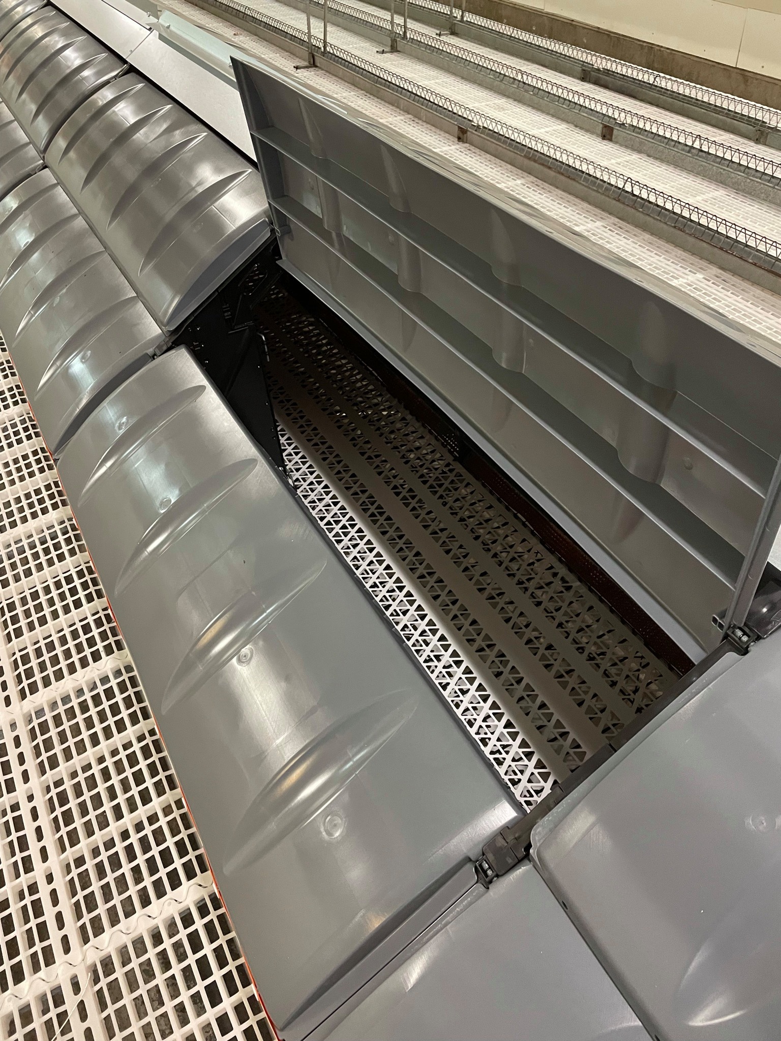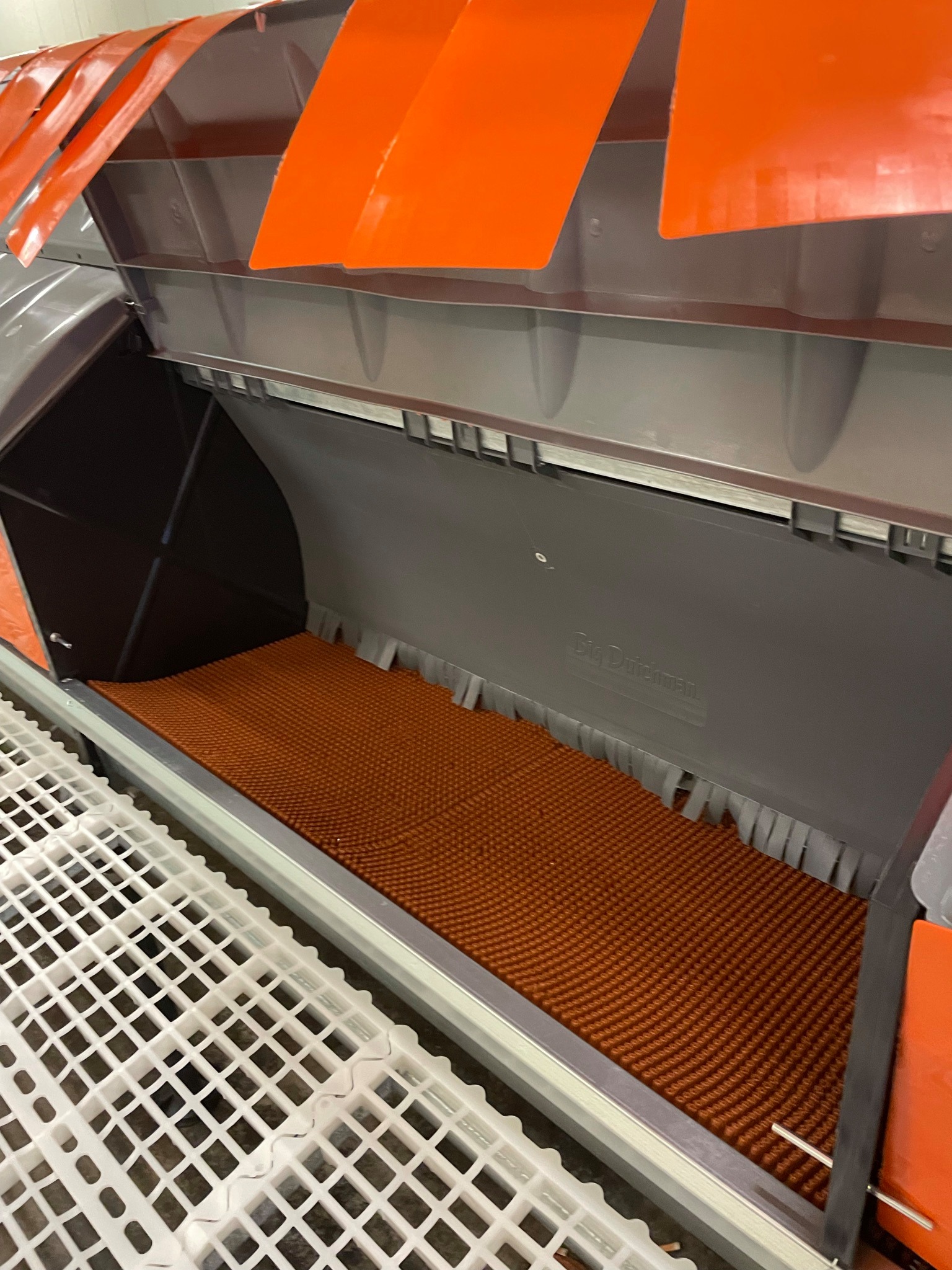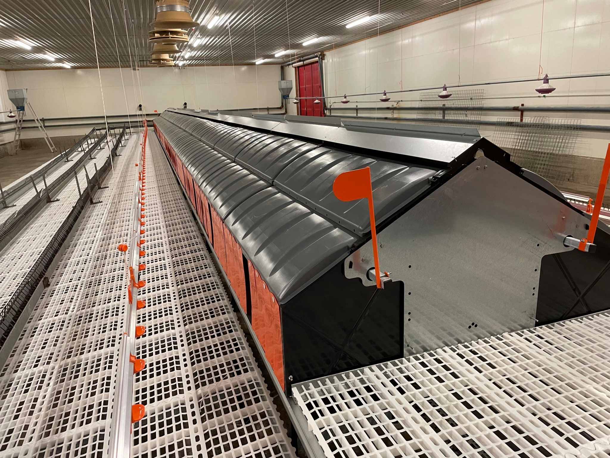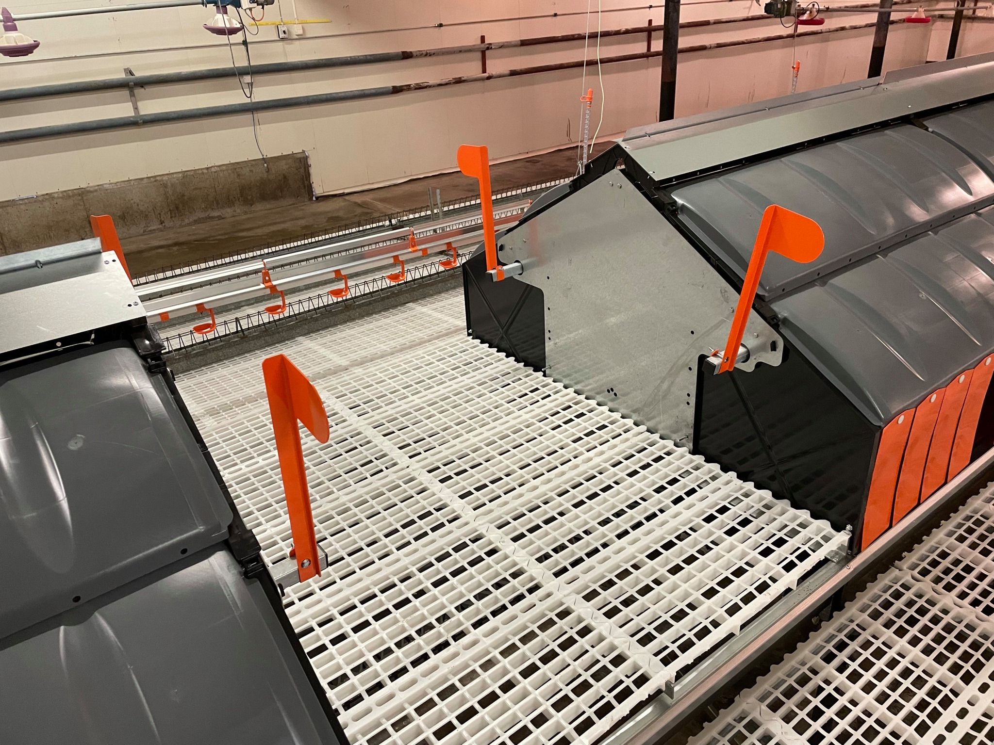 Redet er enklere å rengjøre, hønene har enkel og god redetilgang og har god redekapasitet. Ristene er 3 m brede og er av plast, med frontpanel av plast.