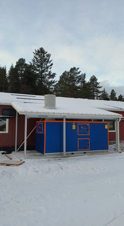- Oppvarming med gass er erstattet med vannbåren varme i gulv og rom. Vannet varmes av en fyrkjel fra ETA som fyres med trepellets.