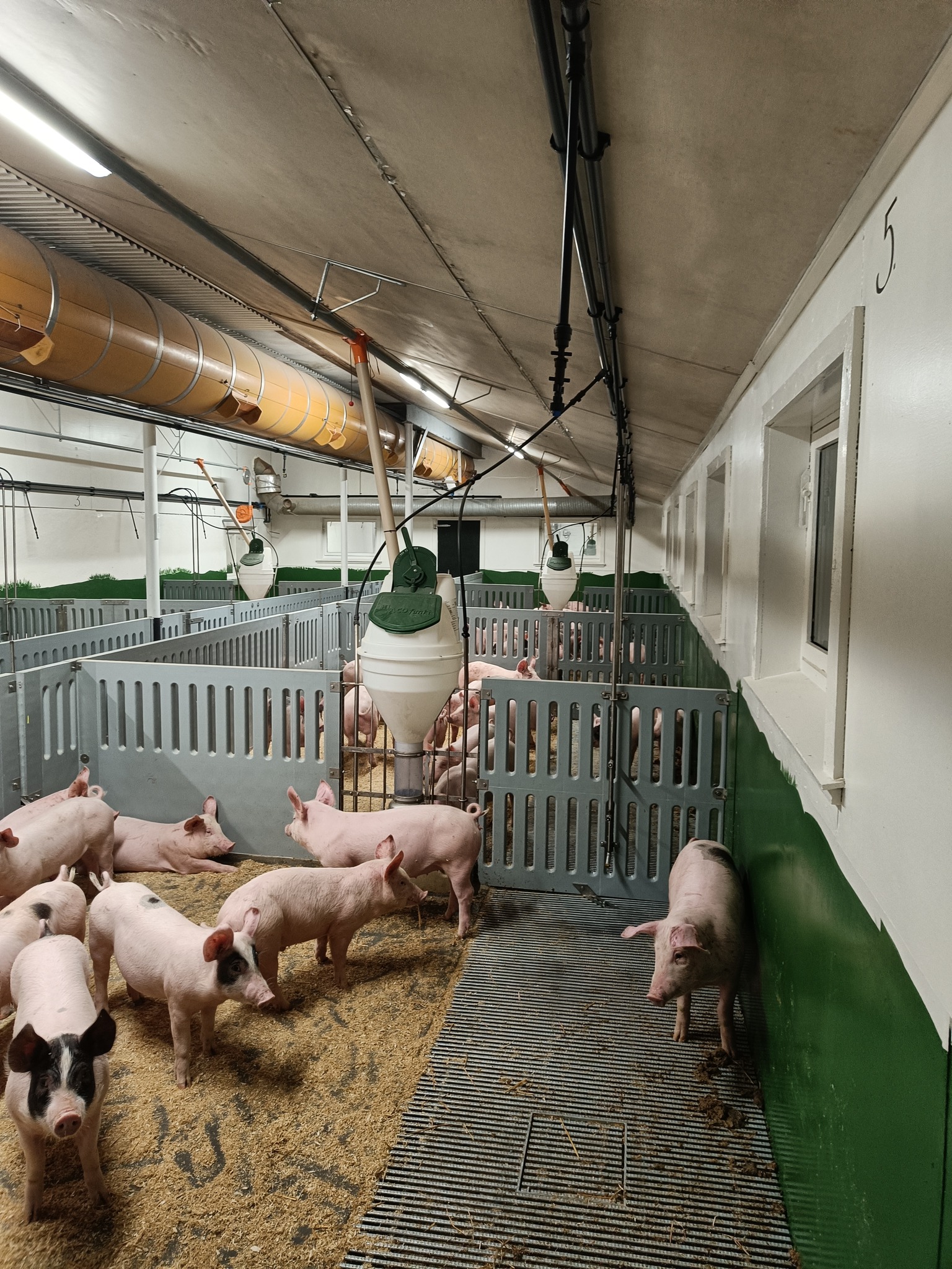 Vi i Fjøssystemer har fått bidratt med tegning, planlegging og levering av innredning. Foruten innredningen så har vi levert Tribar gjødselrister, BigDutchman fôringsanlegg, Århus Gjødseltrekk, maling, betong-impregnering og vannopplegg samt noe utstyr for å få ventilasjons anlegget i gang.