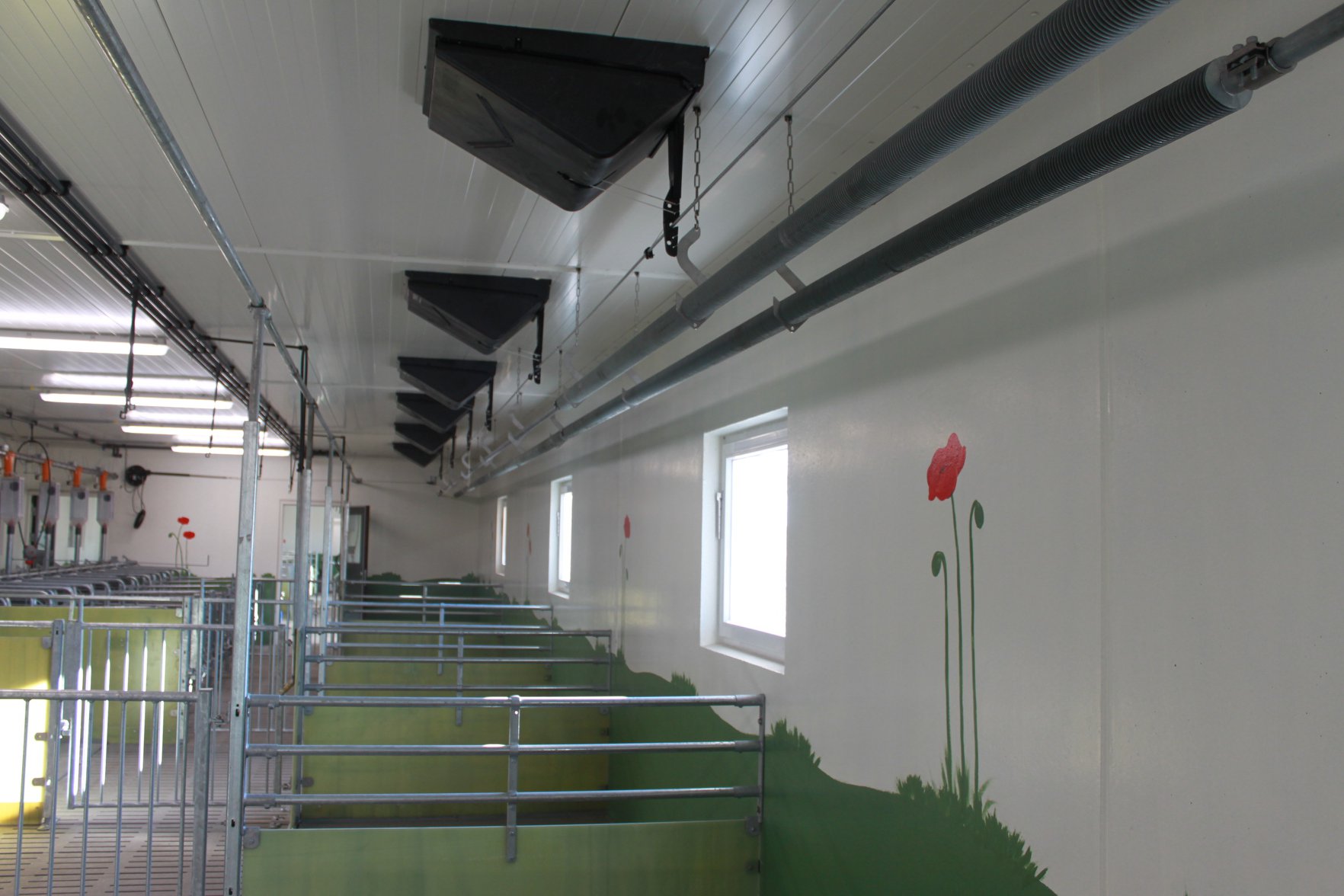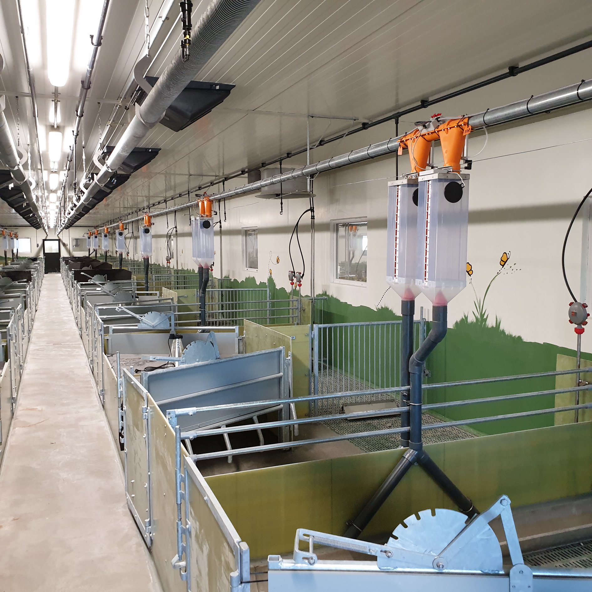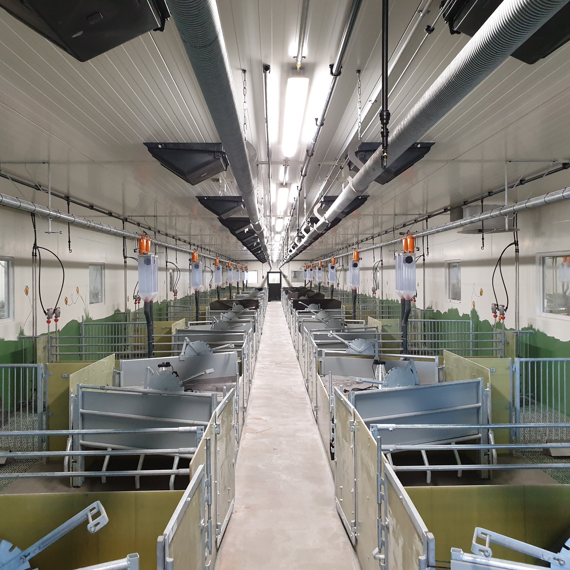 Vi har blant annet levert Jyden glassfiber innredning med nedstøpte stolper, MIK plastrister, betongspalt, DryExact fôringsanlegg, ventilasjon og spiraflex fra Big Dutchman. I tillegg har vi levert Århus gjødseltrekk, hydraulisk gjødseltrekk fra LR-System, pumpe og omrører fra Landia. Bygget er levert av Gardsbygg.