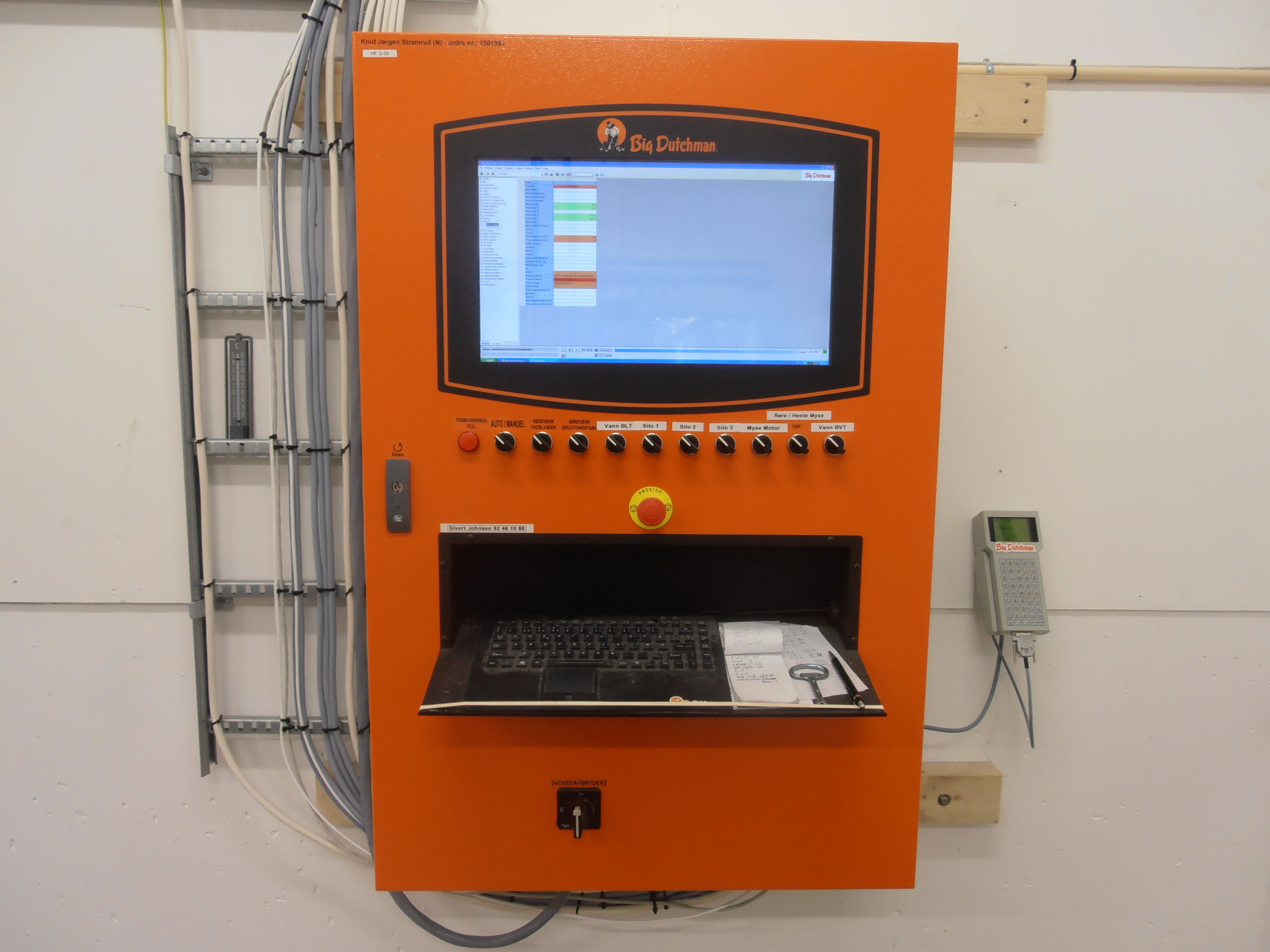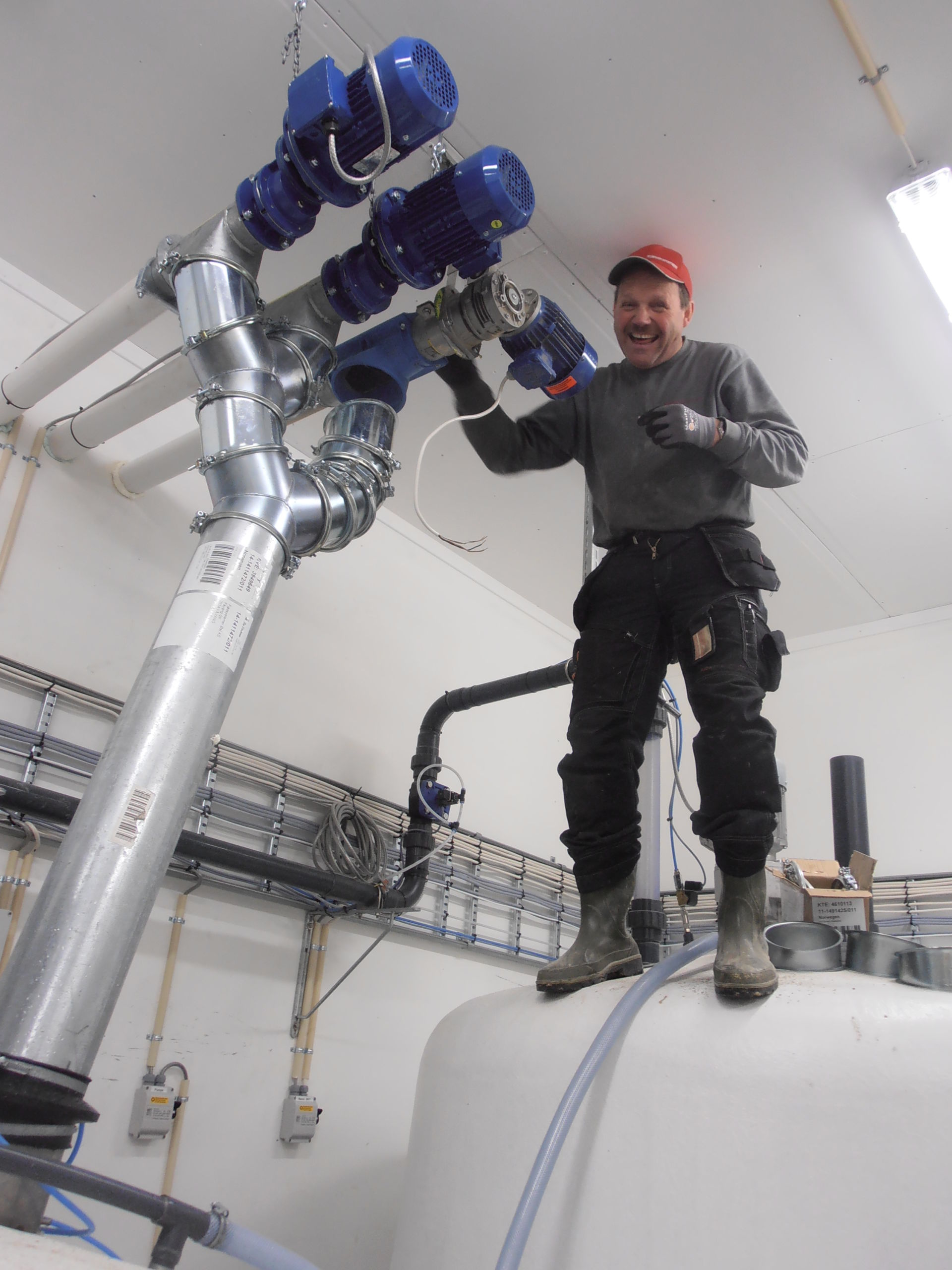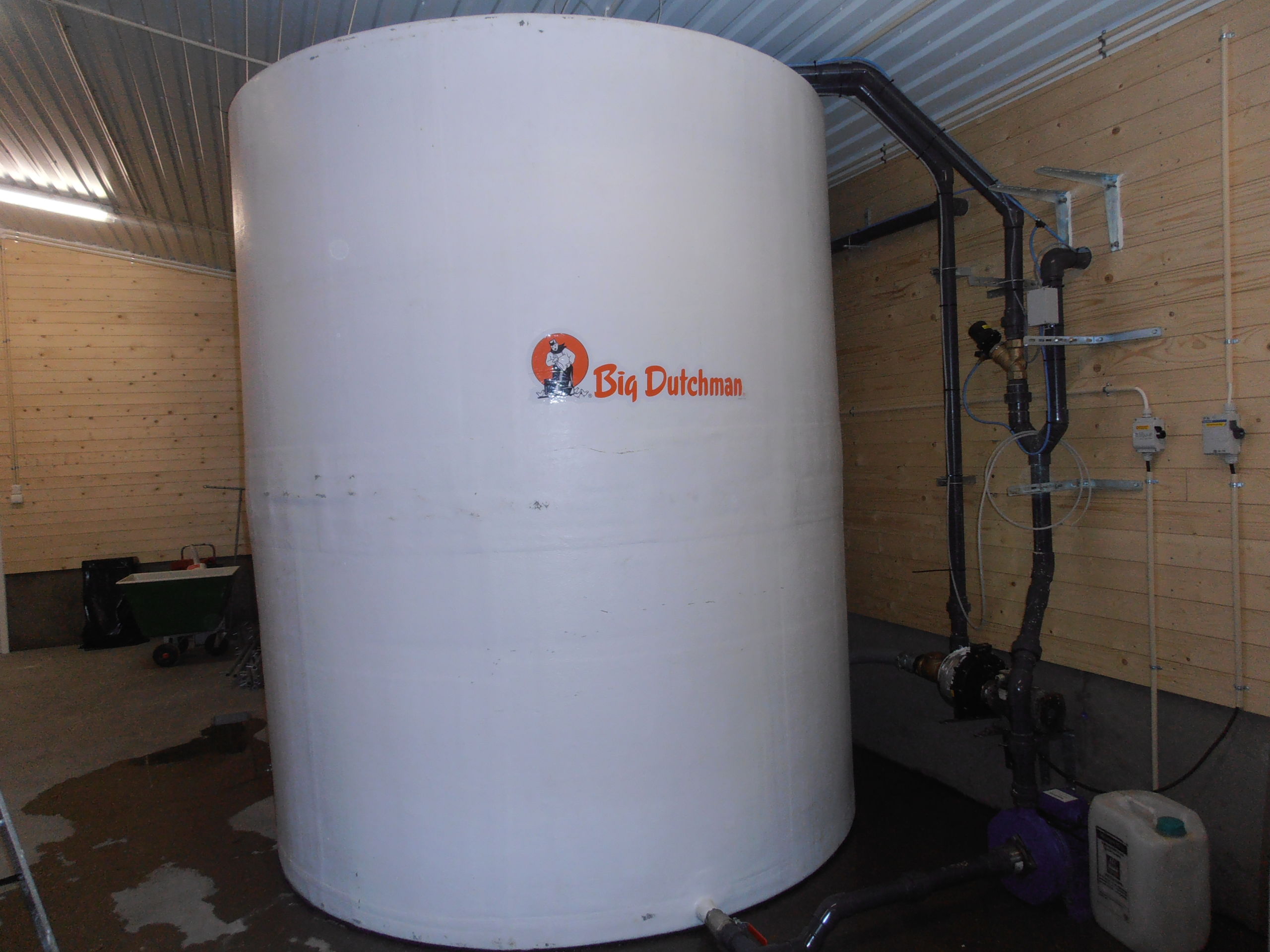 Han har 7ukers smågris produksjon med 54 pr pulje. Påbygget er 54 x 2 Ft 30 binger og ny bedekkings avdeling med JB 6000 inseminasjonsbåser. Big Dutchman ventilasjonsanlegg med loftsventiler i alle avd. Her er det også levert restløs foringsanlegg fra Big Dutchman i nybygg og eksisterende fjøs med blandetank, bruktvannstank, friskvannstank og i tillegg er det levert en mysetank av glassfiber (15 kubikk).