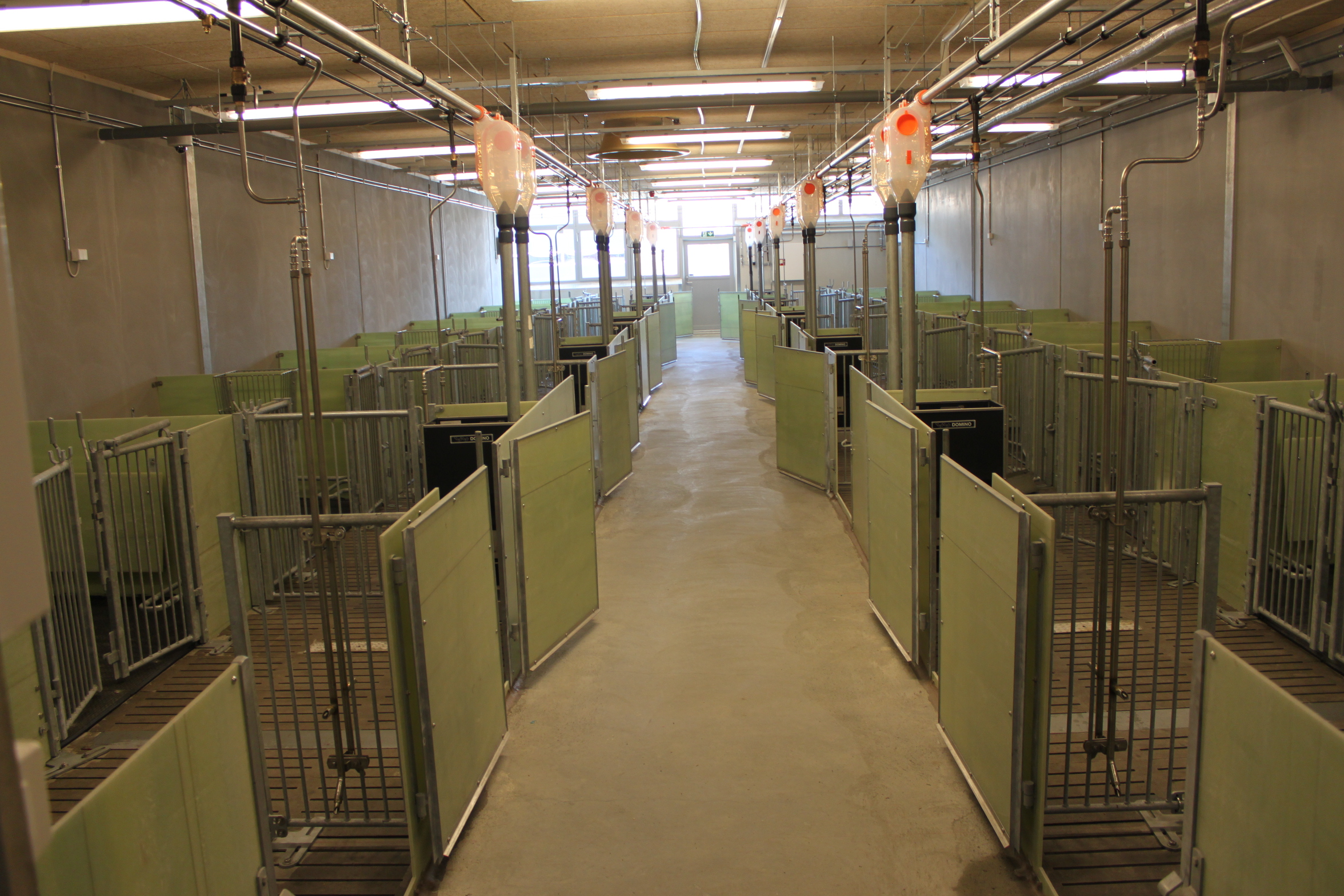 På Ås har vi levert innredning til grisehuset. Det består av utlastingsrom, mottaksavdeling, 2stk fødeavdelinger, slaktegrisavdeling med mulighet for individuell fôring, bedekningsavdeling inkludert ungpurker og råner binger og en smågrisavdeling. Alt inventar er levert i Glassfiber fra Jyden. Utover innredning har vi levert tørrfôringsanlegg fra Big Dutchman, kraftfôrsiloer bestående av 3stk glassfiber siloer ute og 4stk BM siloer inne. Videre har vi levert betongspalt, vakuum utgjødslingsanlegg, hydraulikk gjødselskraper fra LR- system, Landia gjødselpumper og gjødselpropeller.