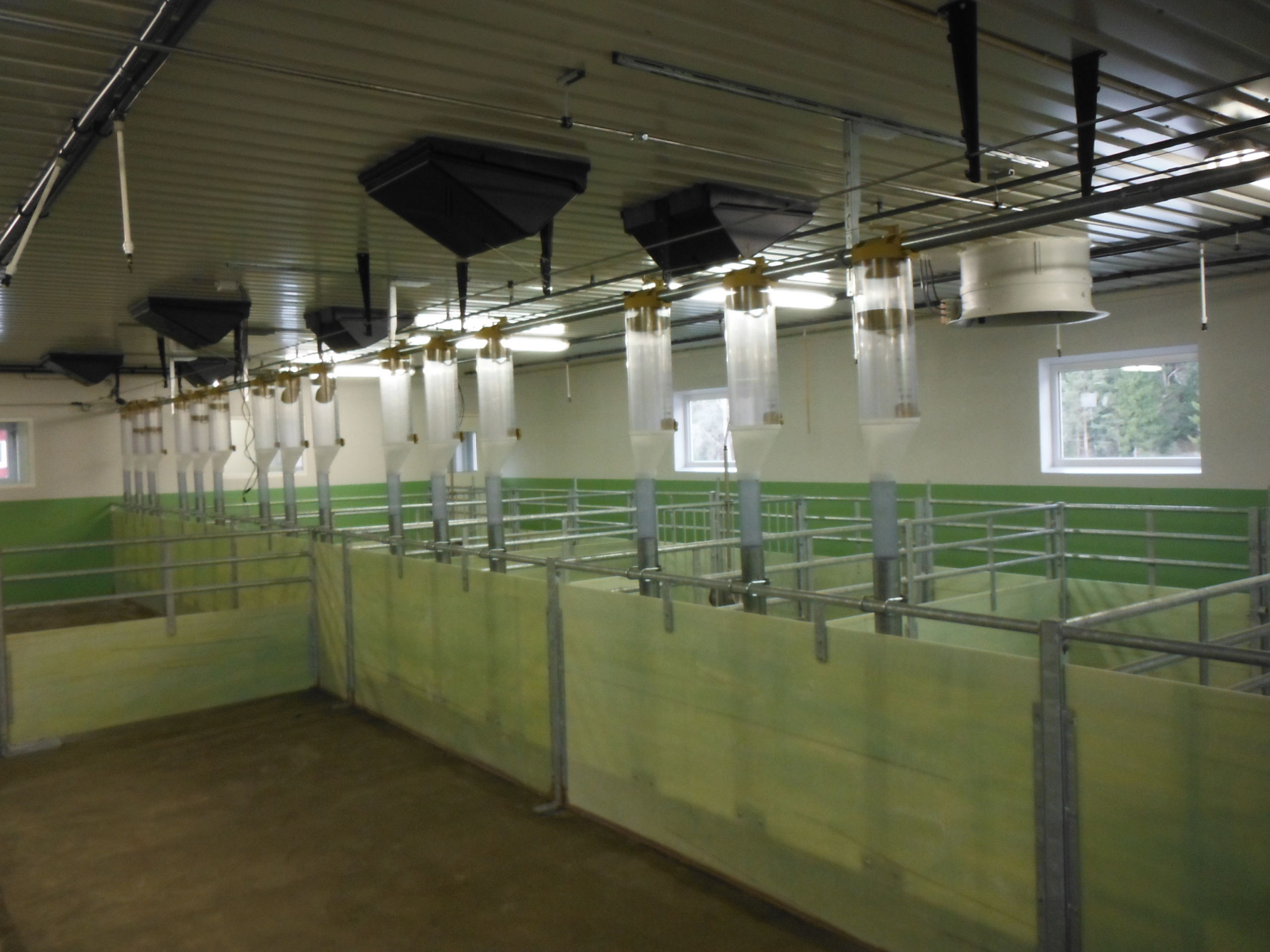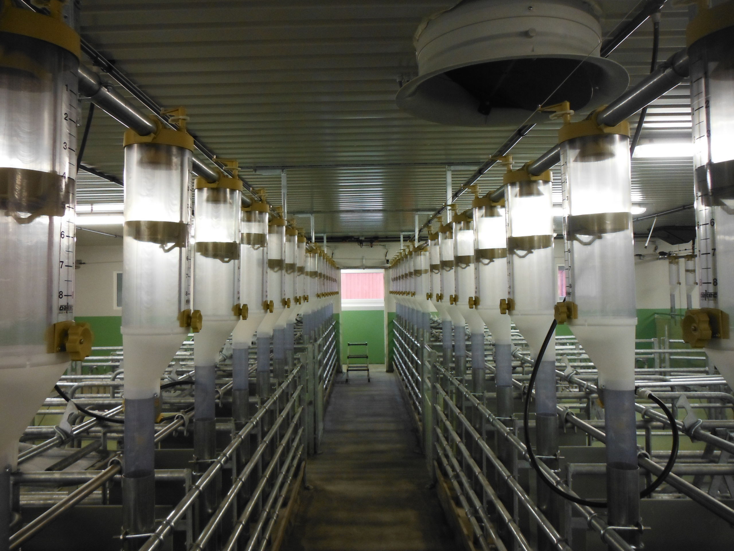 Det er glassfiberinventar i alle avdelinger, Big Dutchman ventilasjon og kraftfôrsiloer samt tørrfôringsanlegg fra Daltec. Alt levert av Fjøssystemer Midt Norge.