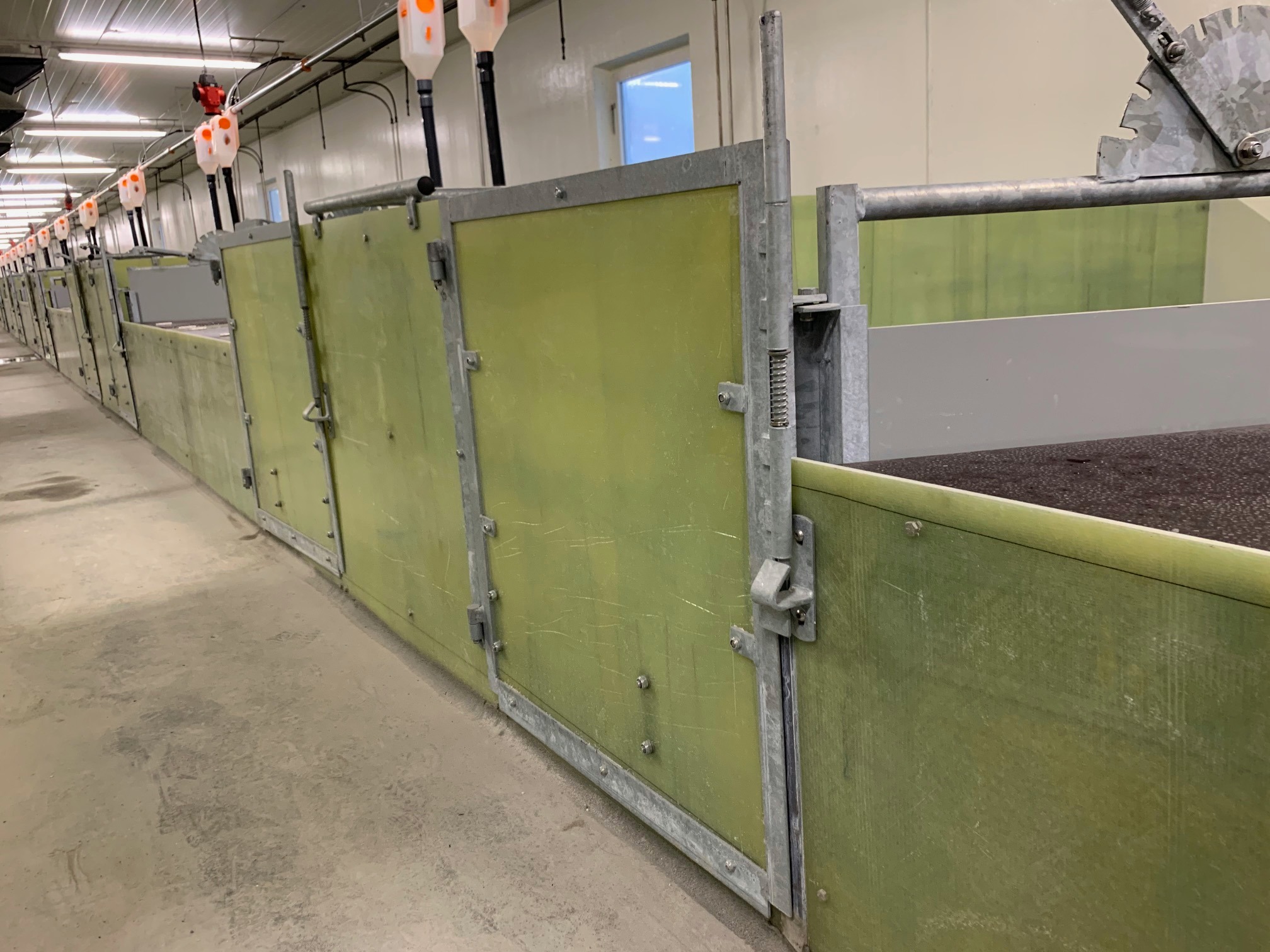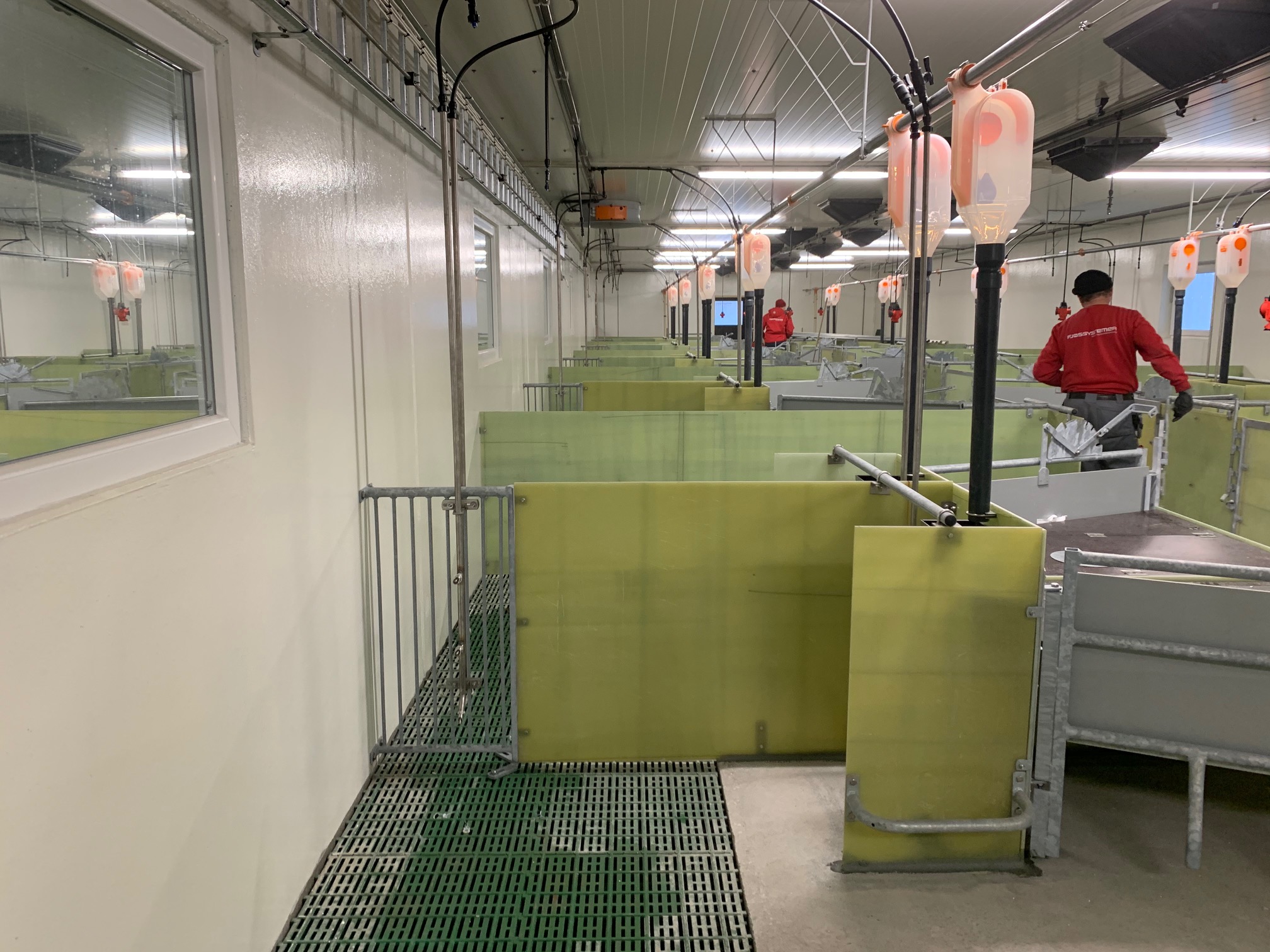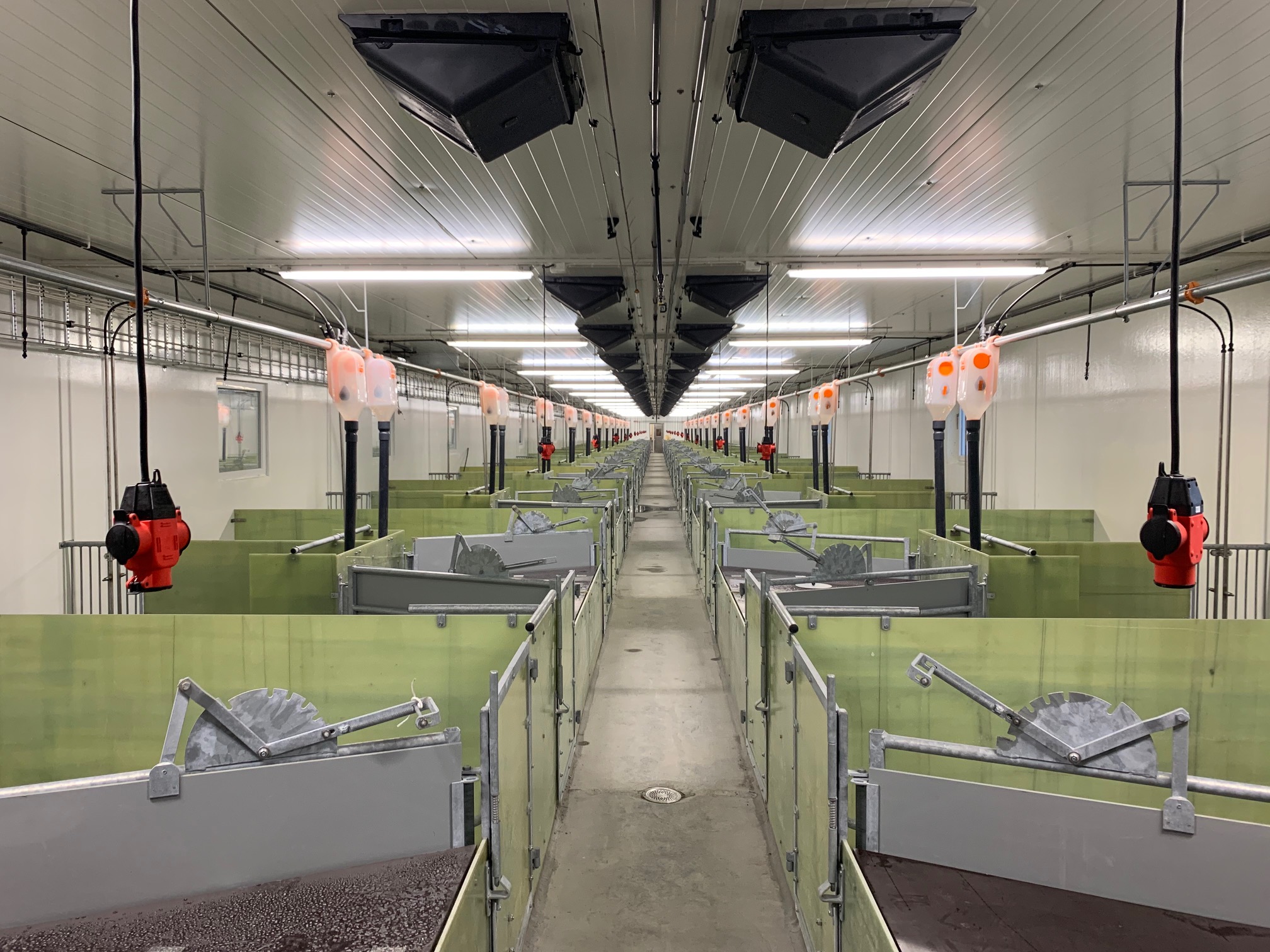 Inventar av beste sort med glassfiber inventar, Mik plastikk rister, Big Dutchman ventilasjon og fôringssystem.