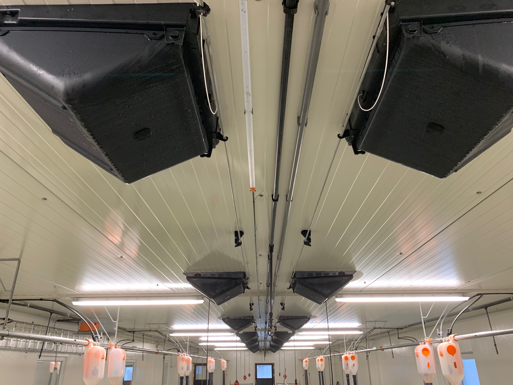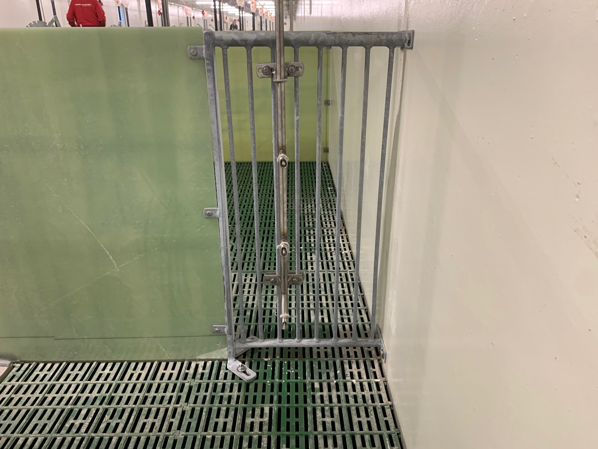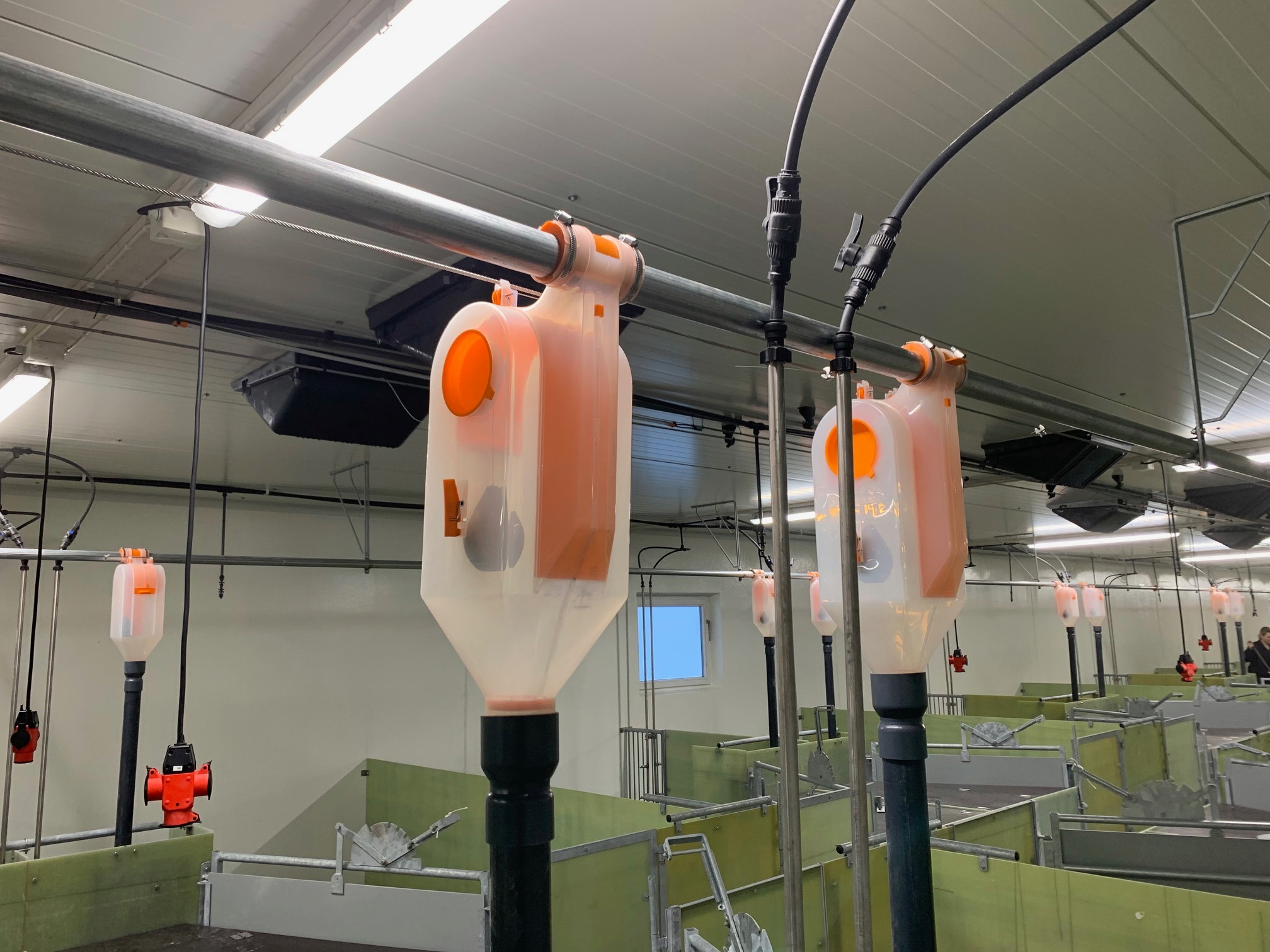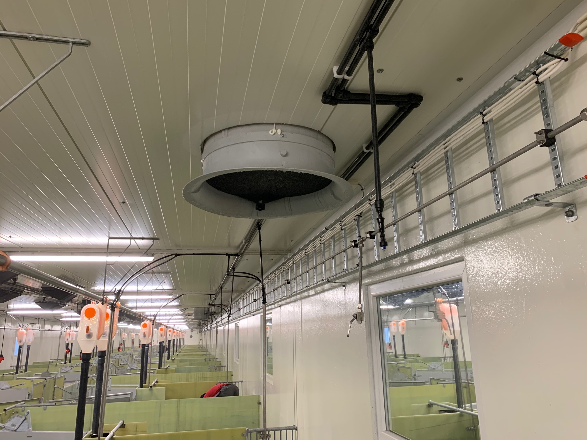 Inventar av beste sort med glassfiber inventar, Mik plastikk rister, Big Dutchman ventilasjon og fôringssystem.