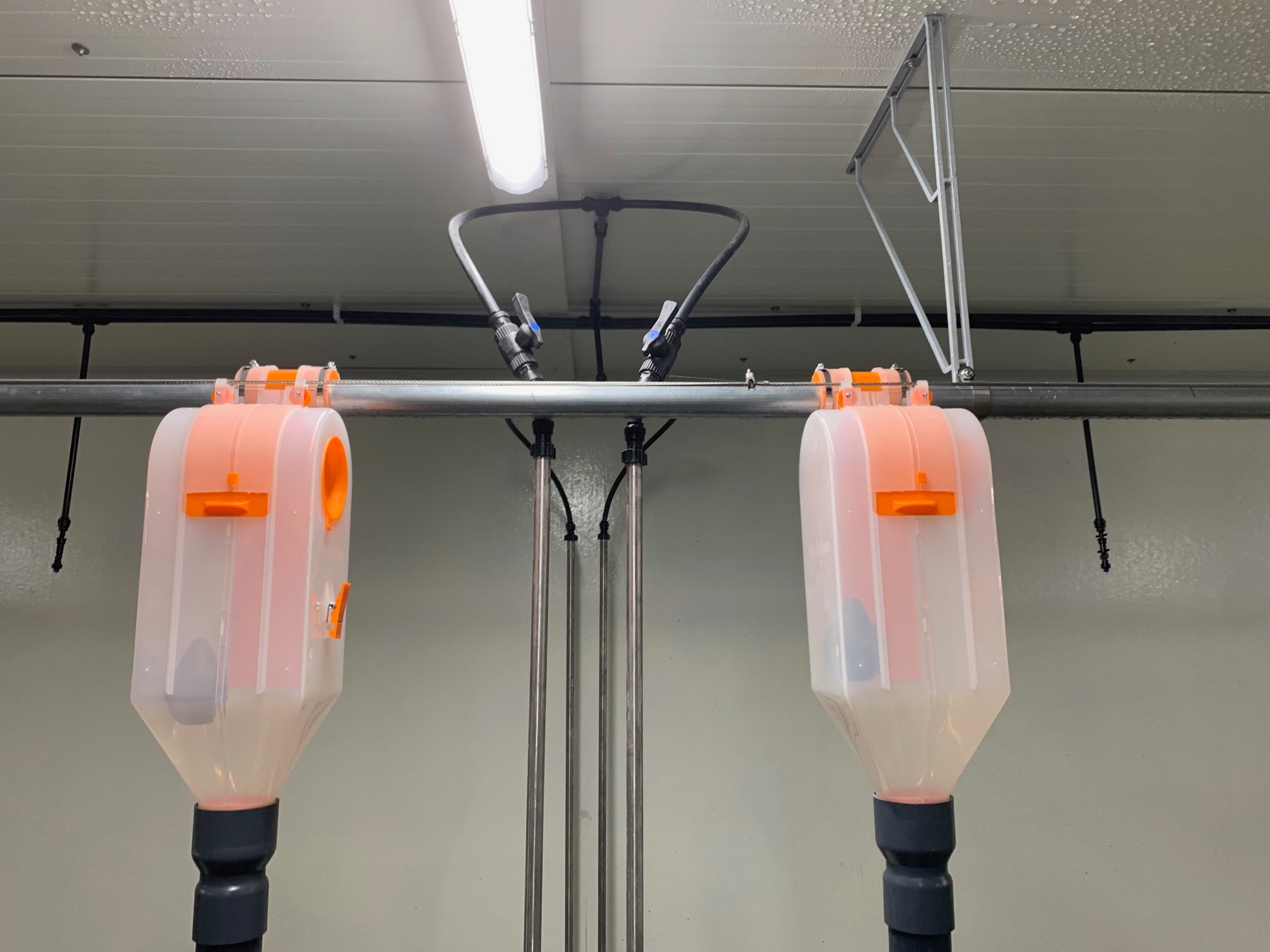 Overbrusing, bløtlegging for vask samt Nilfisk stasjonært vaskeanlegg gir de nye svineprodusentene en effektiv arbeidshverdag.