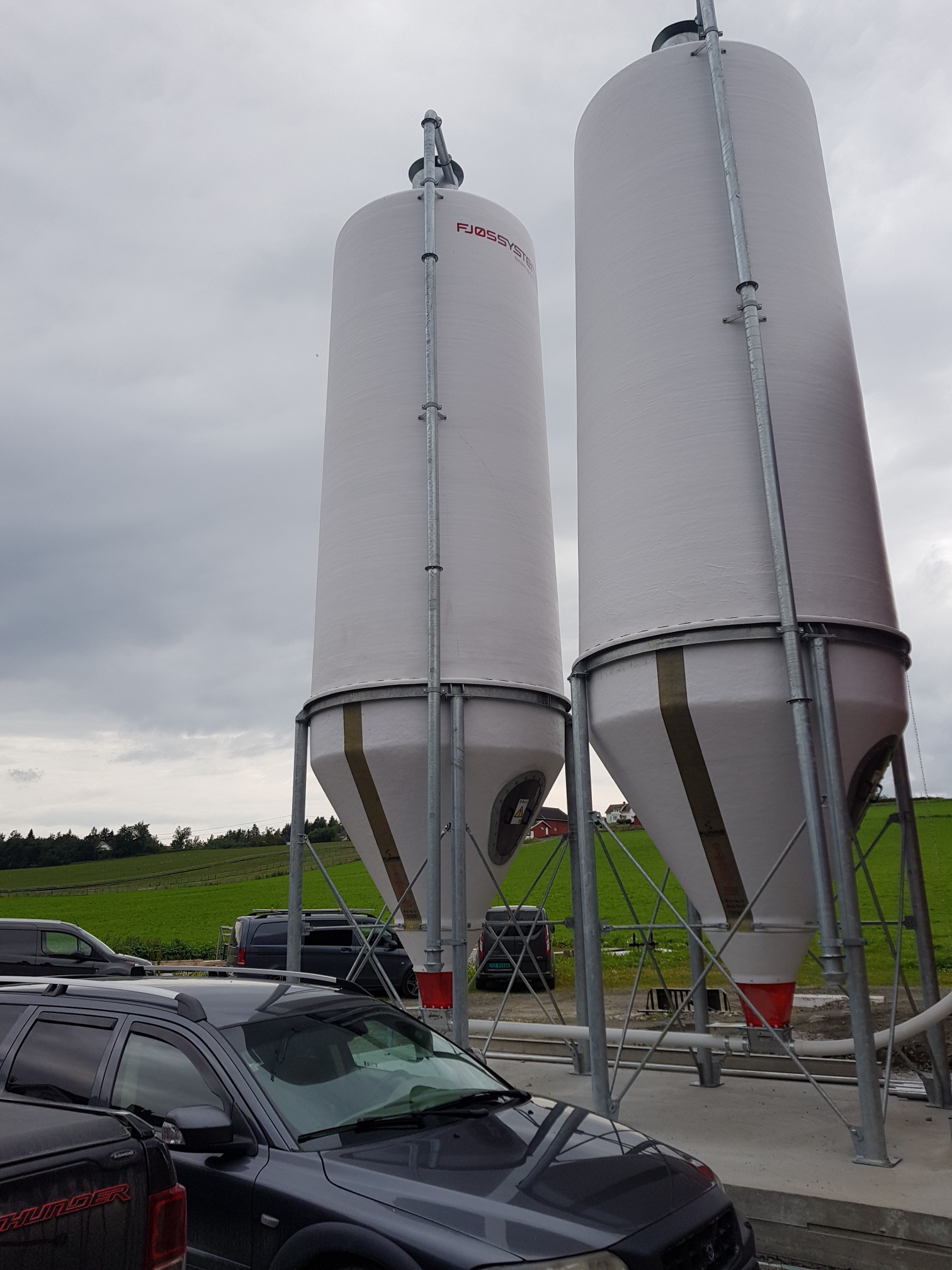 - 2 stk 26 m3 FURAB glassfibersiloer med Big Dutchman flex 90 fòrskrue