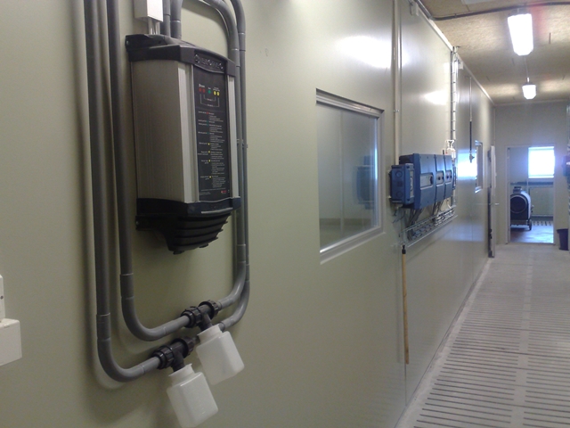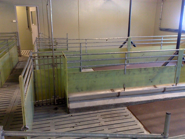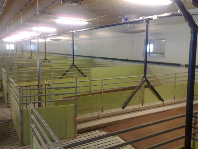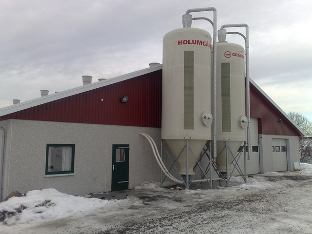 Slaktegrishuset er med glassfiber innredning og langtro, Big Dutchman våtfôringsanlegg for miljøfôr, og pustende himling. Stort fôrrom og utlastningsrom. Det er lagt epoxy på gulv. Vakuumutgjødsling med pumpe.